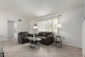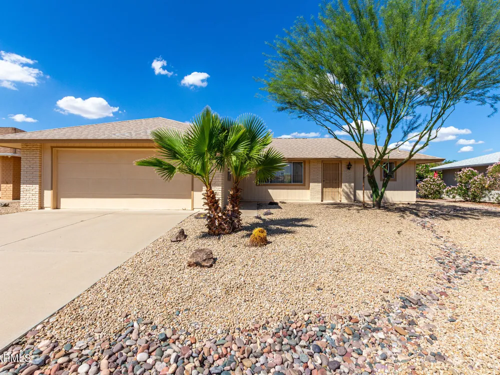 Charming 2-bedroom, 2-bath fully furnished home with No HOA, perfect for full-time living or a part-time retreat. From the moment you arrive, you'll love the beautiful curb appeal with easy-care desert landscaping. Inside, the split floor plan provides both comfort and privacy, while vaulted ceilings and diagonal tile flooring create a light, bright, and airy feel throughout the home. Numerous updates include a modern kitchen with newer cabinets, appliances, and stylish finishes, fresh interior and exterior paint, new A/C unit 2022, & a new roof (2016). The garage offers a versatile space for a workshop or extra storage. Outdoors, the spacious back patio is the perfect spot to relax and enjoy Arizona's stunning sunsets. Ideally located just a short walk from rec centers, shopping, & more.