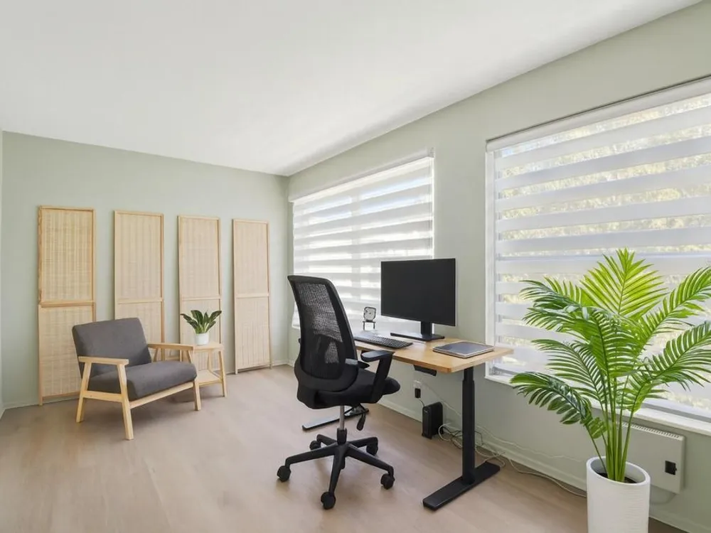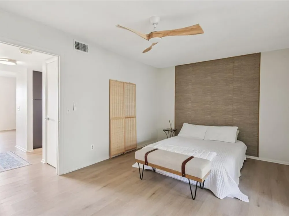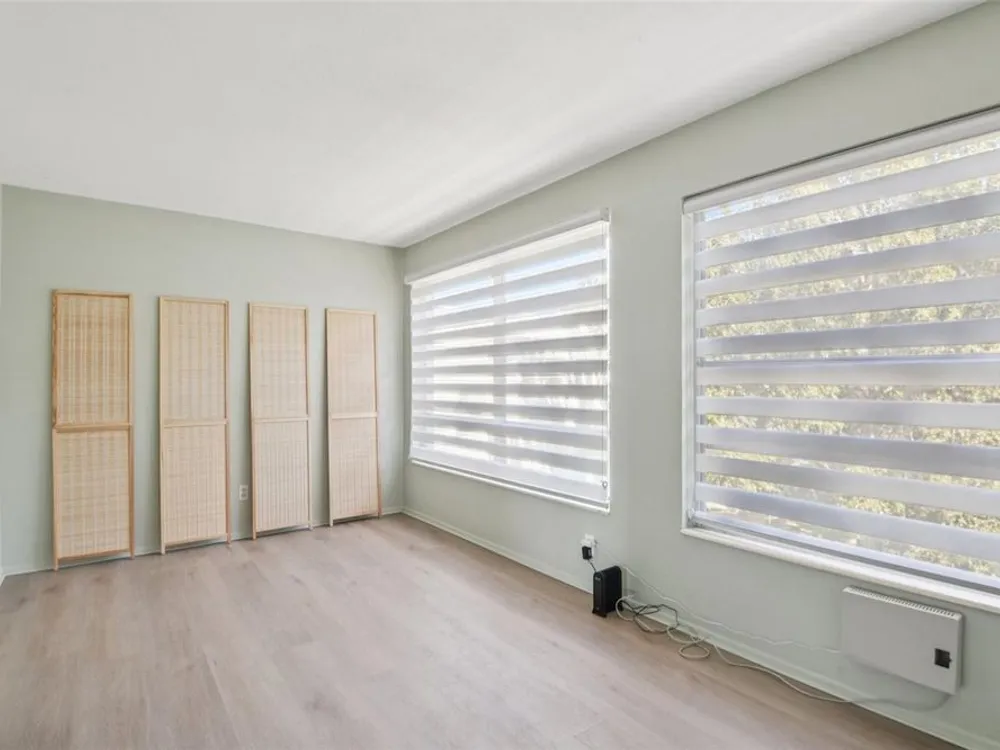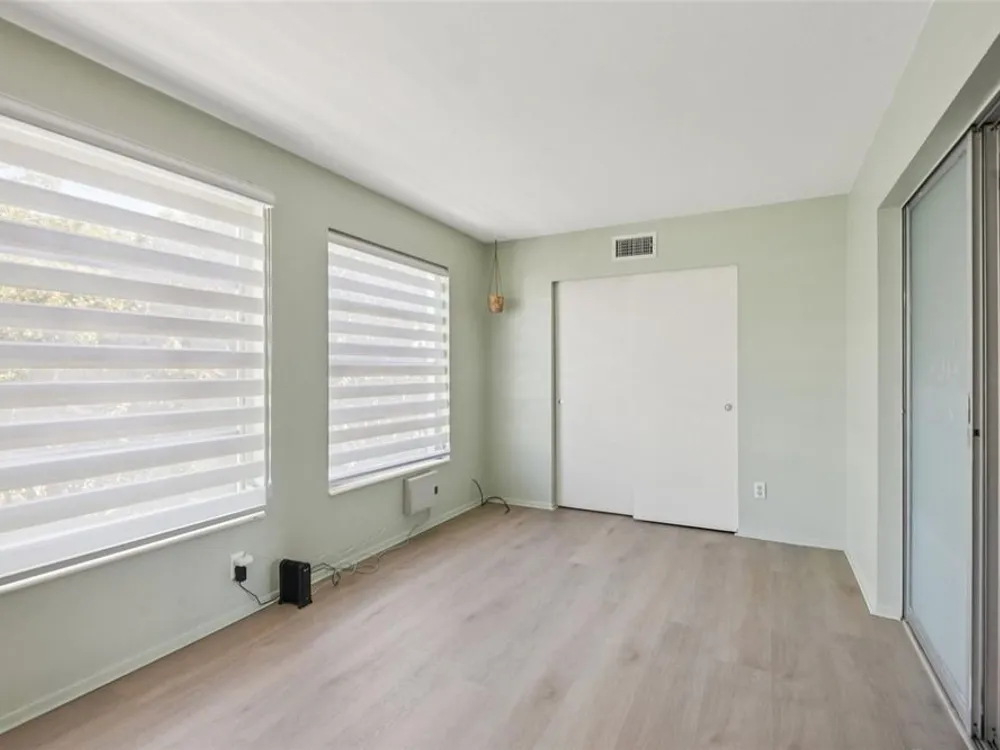 - Ceiling Fan(s), Kitchen/Family Room Combo, Living/Dining Room, Main Level Primary, Solid Surface Counters, Thermostat, Window Treatments