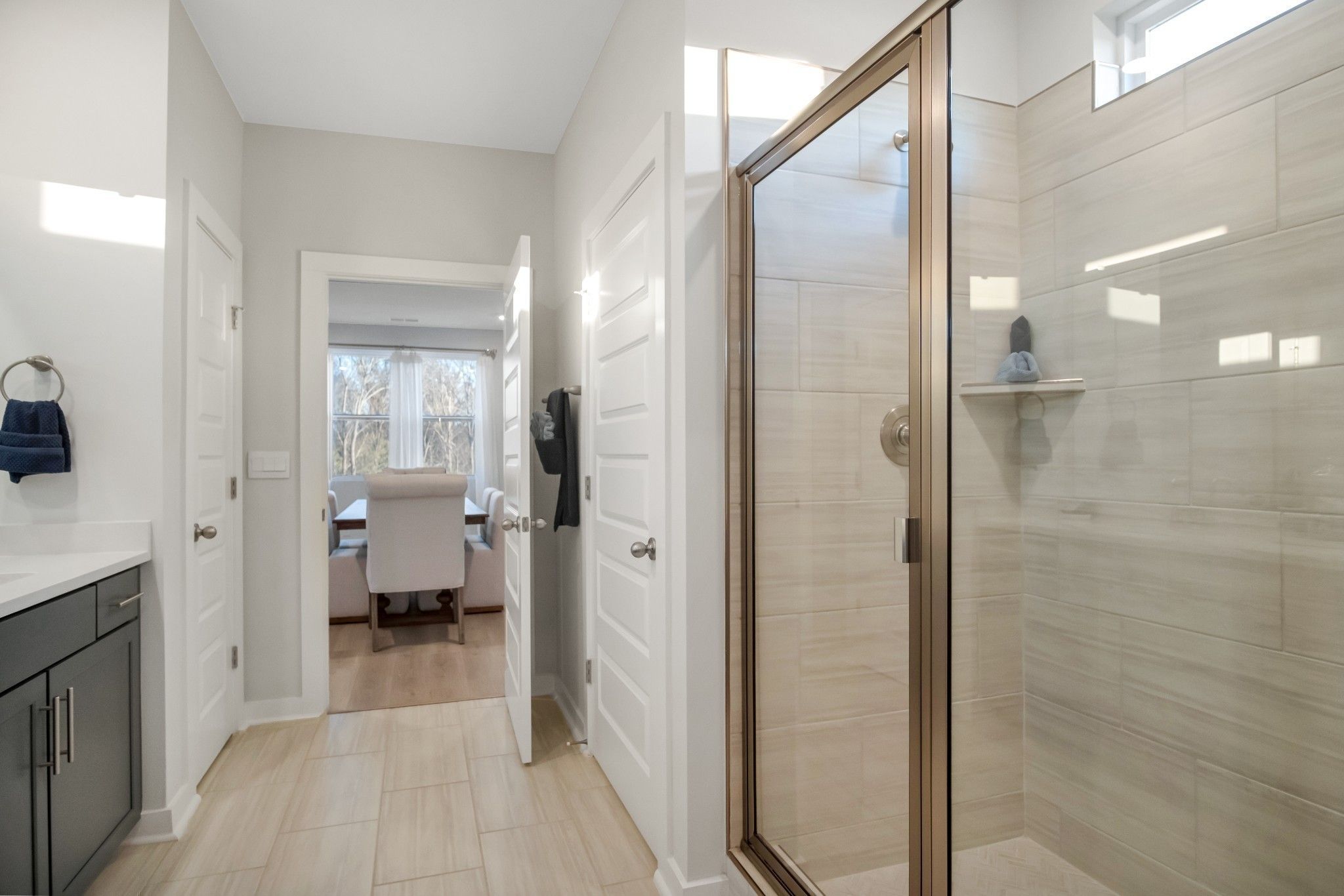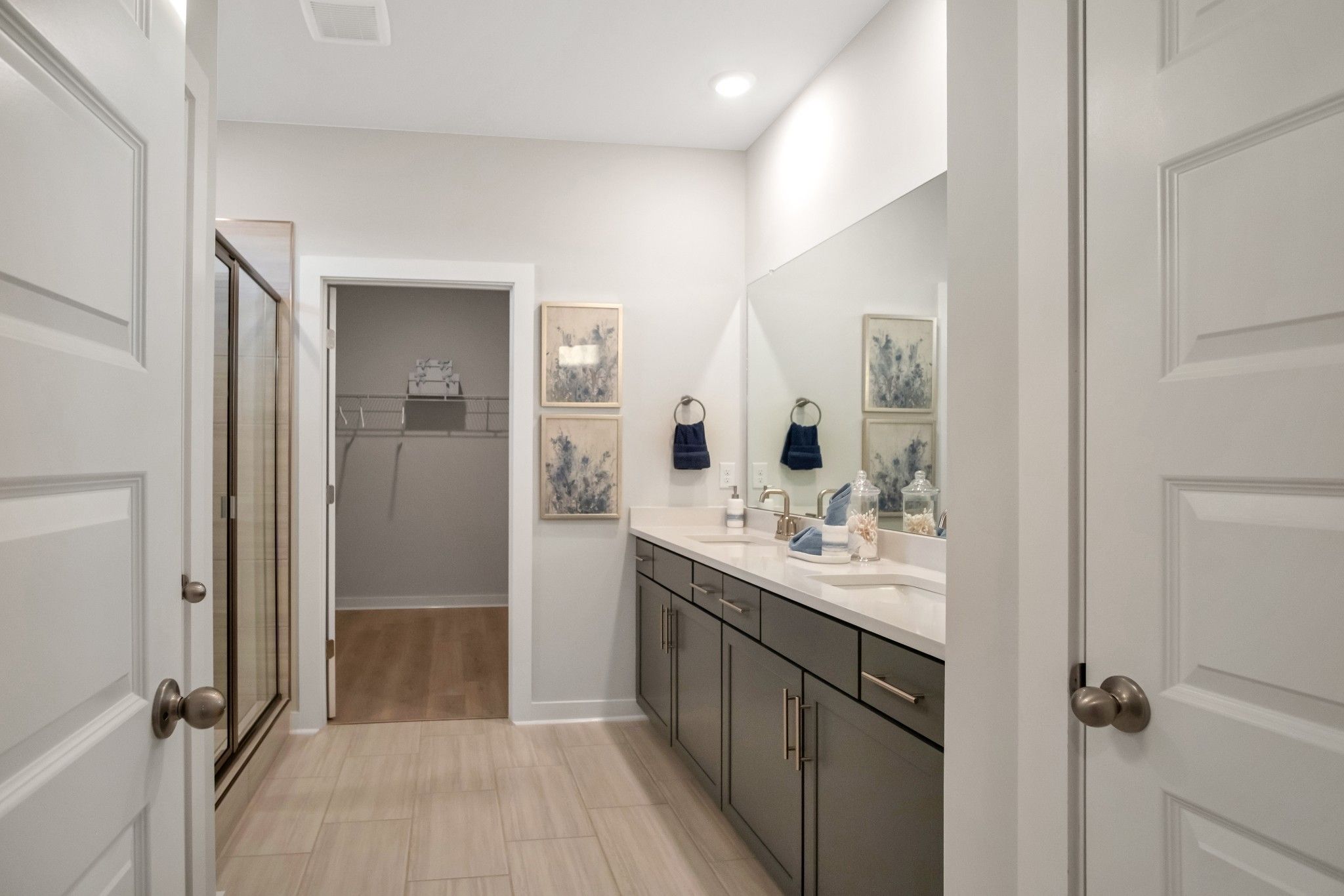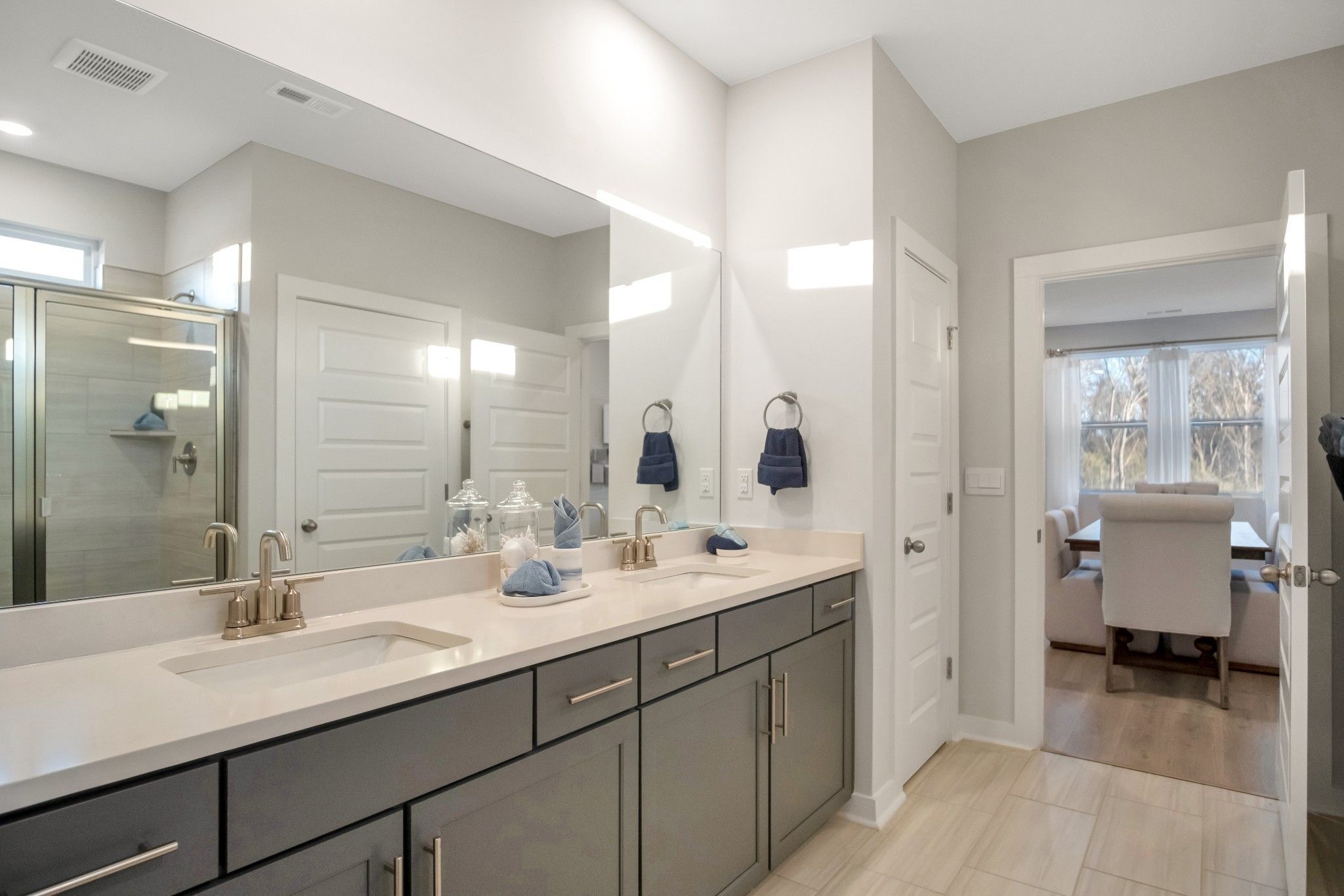 Welcome to Nexus South 55+ Active Adult "The Clifton" floorplan is a beautifully crafted single-story home offering 1,796 sq ft of comfortable living, perfect for families or individuals seeking convenience and style. Featuring 3 bedrooms and 2 bathrooms, it balances private retreats with shared spaces. The spacious primary bedroom includes a large walk-in closet and a modern en-suite bathroom, creating a relaxing oasis. At the heart of the home is the open-concept kitchen, boasting elegant quartz countertops that combine sophistication with everyday functionality. The kitchen flows seamlessly into the dining area and great room, ideal for family gatherings or entertaining. With ample cabinet space and modern appliances, this kitchen is both practical and beautiful. Two additional bedrooms are generously sized, perfect for guests, a home office, or hobbies. A 2-car garage offers plenty of storage and easy home access. Equipped with smart home technology, the Clifton lets you control lighting, security, and climate effortlessly. Designed for today’s lifestyle, it combines style, functionality, and advanced tech, making it the perfect home in Nexus South, Gallatin, TN.