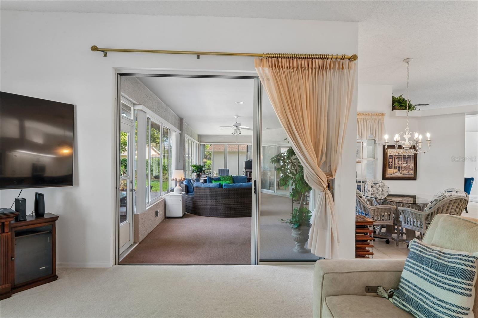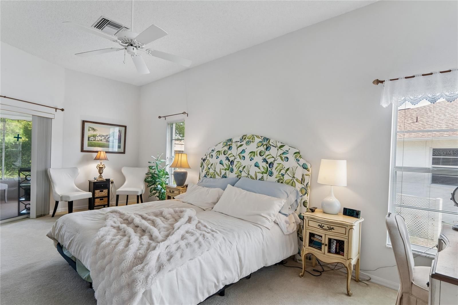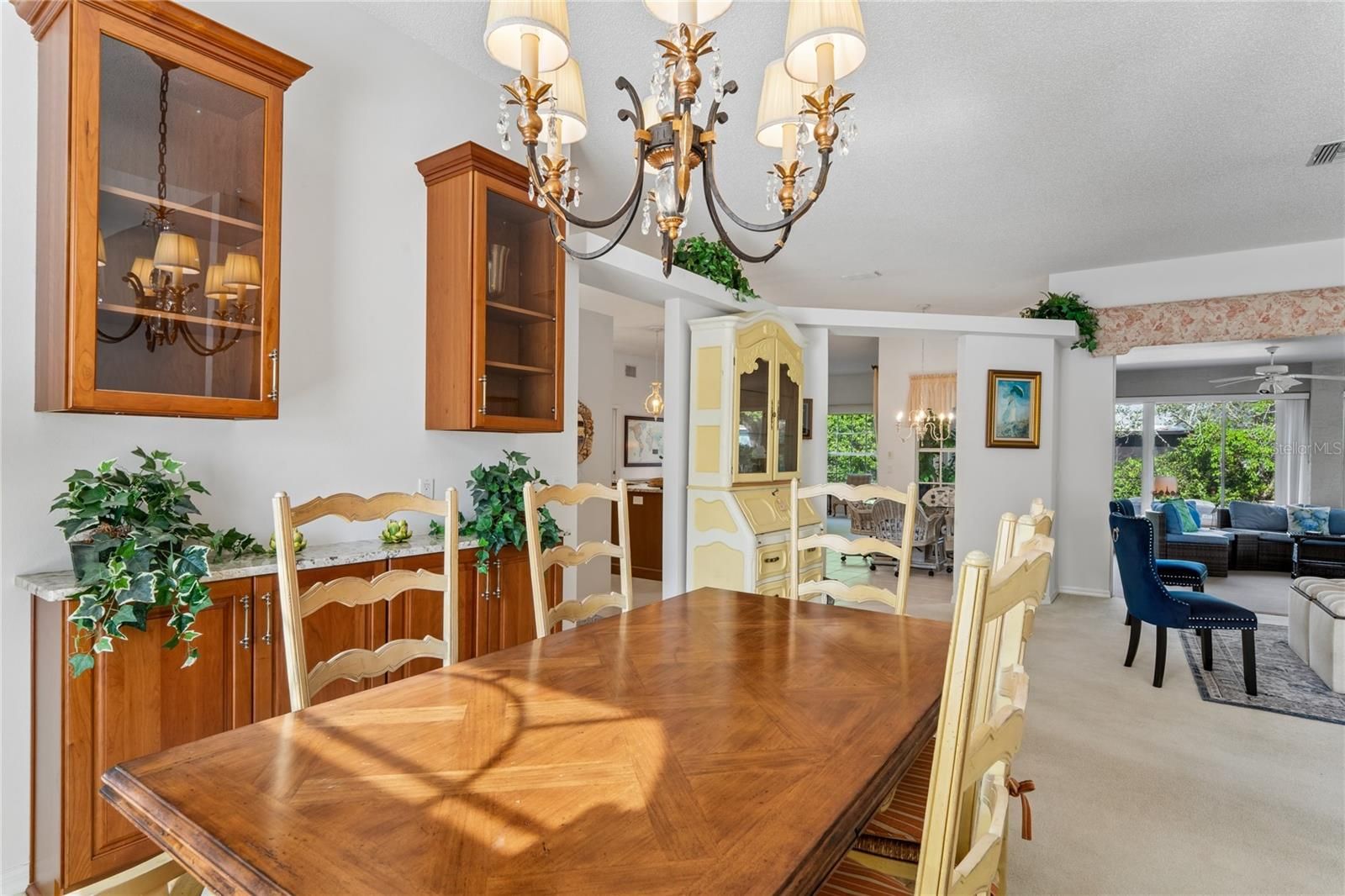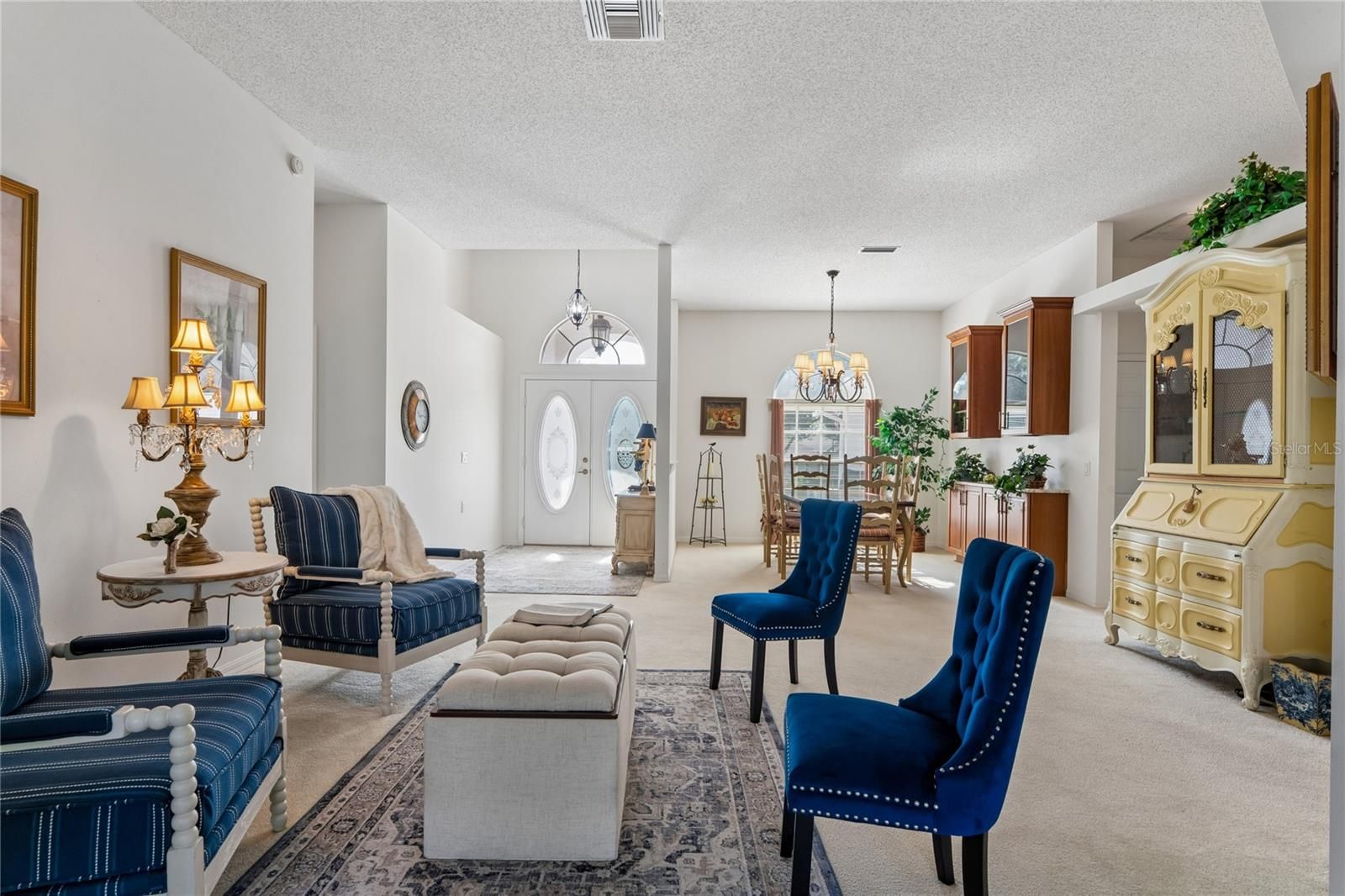 Step into this beautifully maintained 2,700 sq ft home offering a light, bright, and spacious layout designed for both comfort and entertaining. Featuring 3 bedrooms, 2 bathrooms, and a 3-car garage, this residence welcomes you with formal living and dining areas right as you enter—perfect for hosting family and friends. The heart of the home is a gorgeous gourmet kitchen, complete with a breakfast bar and cozy kitchen nook, all overlooking the main living space. Soaring cathedral ceilings enhance the open feel, filling the home with natural light. The expansive primary suite provides a true retreat, with ample space and a luxurious ensuite bathroom featuring a relaxing garden tub, separate shower, and dual vanities. Guest bedrooms are generously sized, offering comfort and privacy for visitors. A convenient inside laundry room adds everyday ease. Enjoy additional living space in the large, air-conditioned Florida room—ideal for year-round relaxation or entertaining. Step outside to a beautifully paved, private back patio, complete with a retractable awning so you can comfortably enjoy the outdoors in any weather. Located in a magnificent gated, golfing 55+ community, residents enjoy an array of amenities including a clubhouse, pickleball courts, fitness center, woodshop, and a performing arts center featuring entertainment throughout the year. If space, comfort, and lifestyle are what you’re looking for, this home has it all. Well-appointed and move-in ready, with furnishings and a golf cart available separately. Schedule your private showing today and experience everything this fantastic home has to enjoy!
