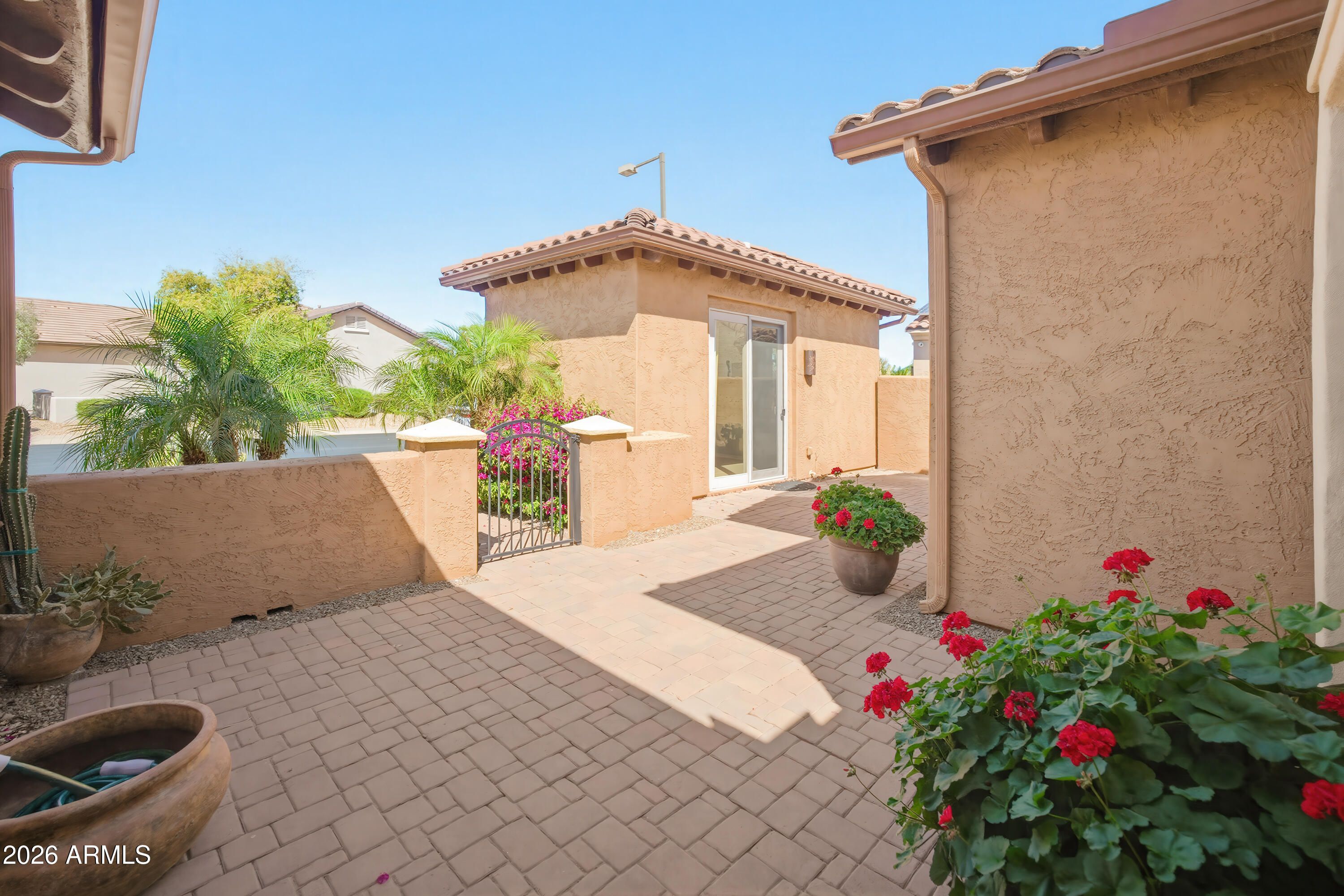 Fabulous Jubilee plan on a premium golf course lot & tucked on a quiet private street near the Sage Center in Sun City Festival. This highly desirable layout offers 2 bedrooms & 2 baths, plus a versatile flex room & a detached Casita w/ its own bath-ideal for guests, office or hobby space. A charming private front courtyard sets the tone for relaxed Arizona living. Inside, enjoy an open-concept design with spacious living areas anchored by a warm fireplace, along with a revised kitchen & dining layout that enhances flow & functionality. The kitchen opens seamlessly to the great room-perfect for entertaining. Out back, take in sweeping golf course views & serene desert surroundings. A rare blend of comfort, privacy & flexibility with resort-style amenities, golf, dining & activities!