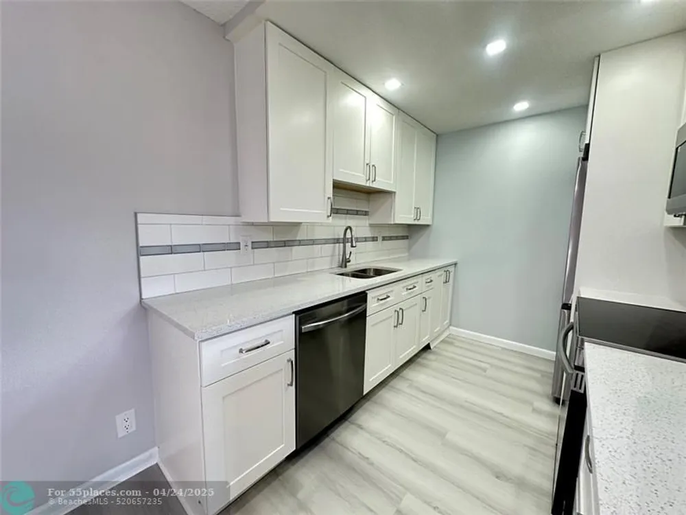 FULLY REMODELED WATER VIEW, 1 bedroom, 1.5 bath, 2nd floor condo. Located in active adult community in the heart of Deerfield Beach. Walk to pool & tennis. Kitchen features stainless steel appliances, recessed lighting, white shaker cabinets, subway tile & double sink. New electrical panel. Luxury vinyl flooring throughout. Screened patio with ceramic tile and extra storage space. HWH - 2019, A/C - 2020. Community BBQ area for building residents. CVE offers resort style amenities galore including a lavish clubhouse, 1,500 seat theater, premier performances, shuttle buses, state of the art gym, pickleball, putting greens, tennis, indoor & outdoor pools, movies, classes of every type & more! Close to shopping, restaurants & beach. Non-Rental. Assoc claims 55+