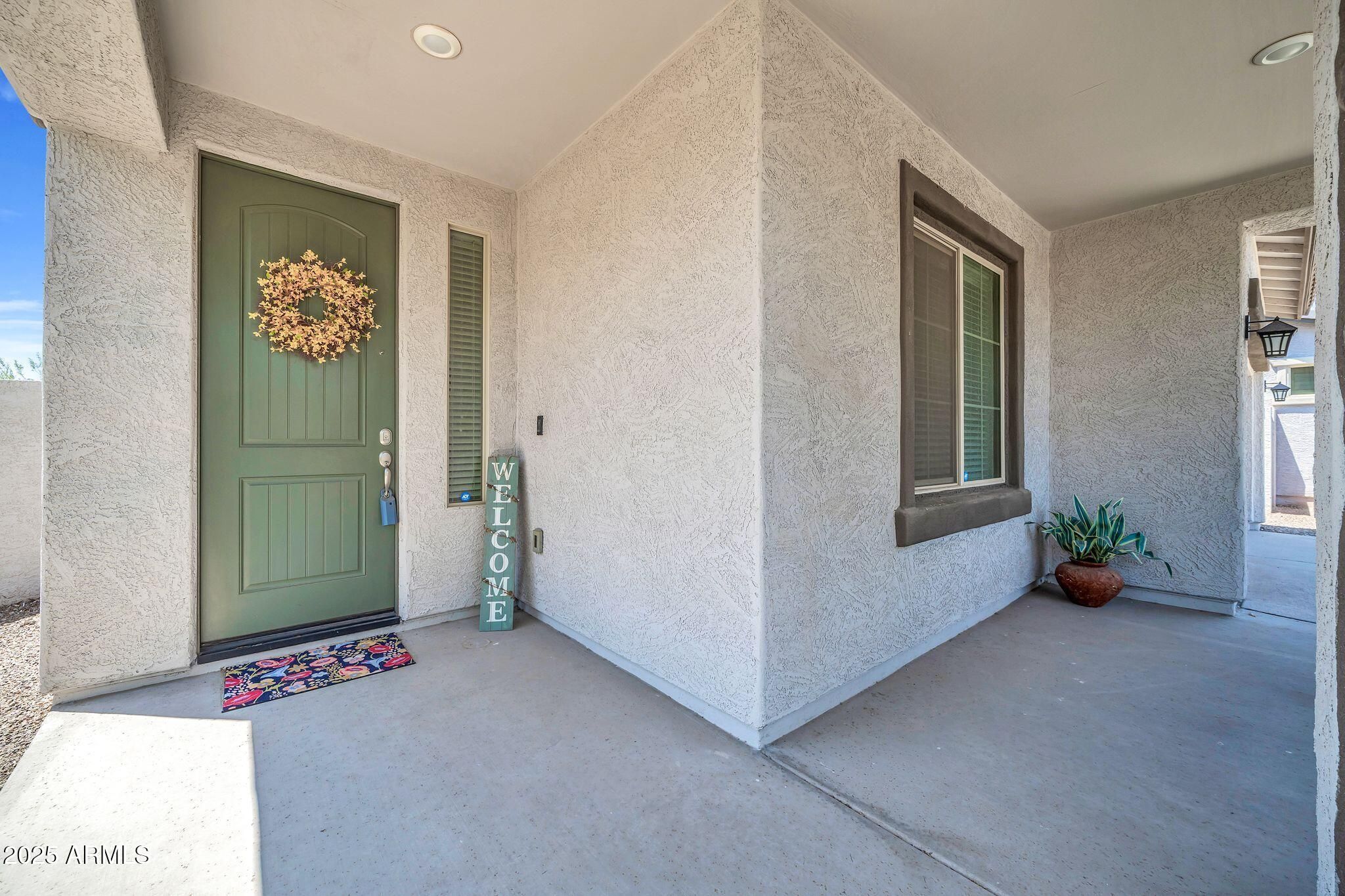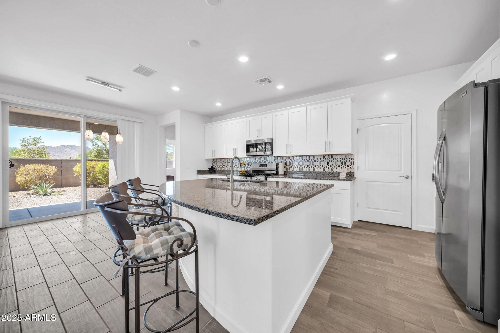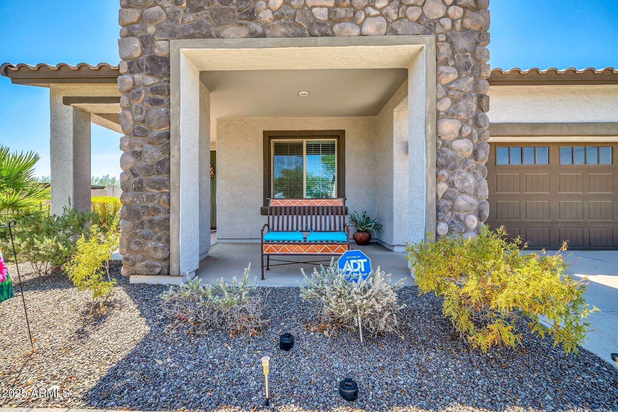 Beautiful backyard Mountain View lot at Verrado, a 55+ active community. This well maintained Armstrong model is move in ready with Situated in a quiet little niche of Victory, this 2 bedroom, 2 bath has a wonderful open floorplan. The gourmet kitchen features a very large island, granite countertops, beautiful backsplash, pull-out shelves and stainless steel appliances. The spacious primary suite includes a private entrance to the backyard patio. Primary suite has dual sinks, walk-in tile shower and a large closet that connects to the laundry room. Other upgrades are wood plank tile floors, custom lighting, high ceilings, epoxy garage floors and so much more. Seller will consider owner financing with acceptable term