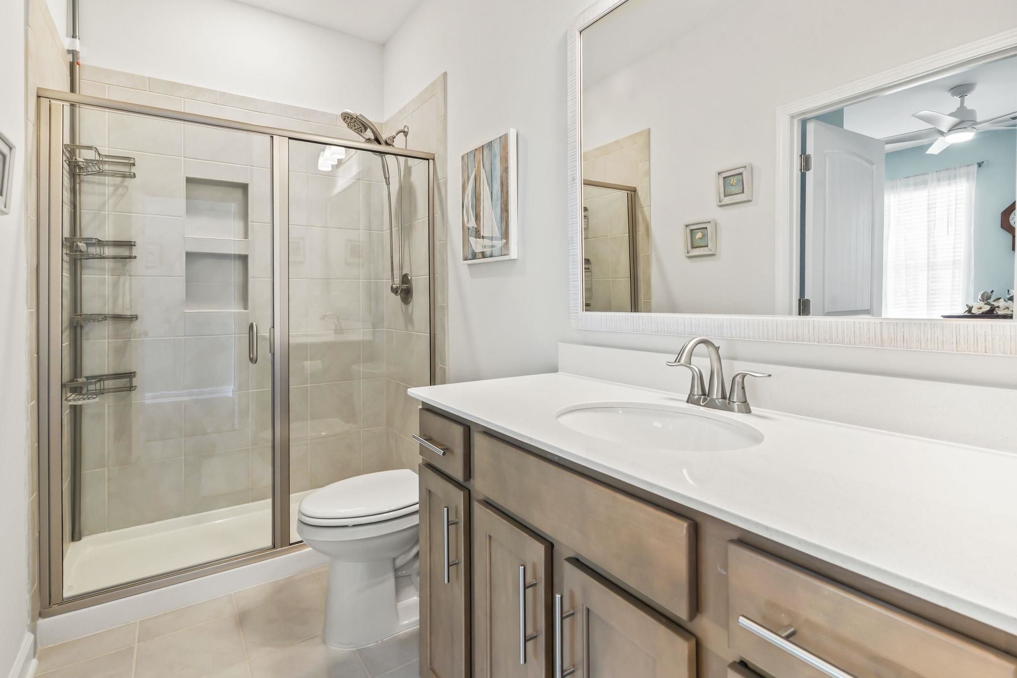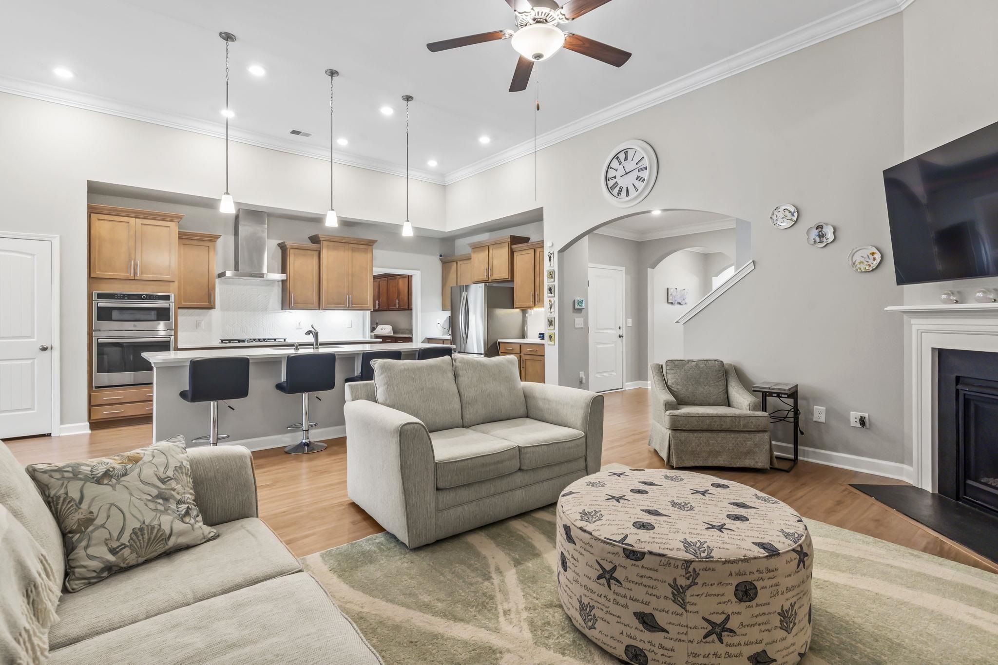 Located in the desirable Cypress Village community in Little River, SC, this beautifully designed 3-bedroom, 3-bathroom Craftsman-style home offers a tremendous blend of style, comfort, and functionality with a layout that perfectly fits everyday living and entertaining. As you arrive, the inviting front porch sets the tone for the home's welcoming character. Step inside the foyer, where elegant wainscoting, crown moldings, and a graceful archway create a striking first impression leading into the open-concept living area. High ceilings, recessed lighting, and a cozy gas fireplace make the living room warm and inviting. The space flows effortlessly into the dining and kitchen areas, ideal for hosting gatherings with guests. The kitchen is both stylish and practical, featuring quartz countertops, decorative backsplash, stainless steel appliances, a natural gas range, and a large center island with bar seating - perfect for casual breakfasts or social evenings. Just beyond the living room, enjoy a bright sunroom that opens onto an enclosed patio, offering a tranquil space to relax while overlooking the beautifully landscaped backyard with stone accents. The primary suite on the main floor serves as a private retreat, enhanced by a tray ceiling, plush carpeting, and abundant natural light. The ensuite bathroom features dual sinks with granite countertops, a spacious walk-in shower, linen storage, and an oversized walk-in closet. A secondary bedroom and full bathroom on the main level provide flexibility for guests or a home office, while a dedicated oversized laundry room and two-car garage add convenience and storage. Upstairs, a third bedroom with a full bath offers privacy - perfect for guests, a media room, or a creative workspace. An unfinished attic provides valuable storage or future expansion potential. Living in Cypress Village means enjoying resort-style amenities, including a lakeside pool, clubhouse, fitness center, pickleball and bocce ball courts, BBQ area, and outdoor fireplace, all maintained by a friendly and active HOA. The HOA also includes front and side lawn care, annual home power washing, and trash pickup for a truly low-maintenance lifestyle. Just minutes from Cherry Grove Beach, Sunset Beach, and the historic Little River waterfront, this home offers easy access to coastal dining, golf courses, shopping, and local events like the Blue Crab and Shrimp Festivals. With its tremendous craftsmanship, open layout, and exceptional community features, this Cypress Village home delivers the relaxed coastal lifestyle you've been looking for. Measurements are not guaranteed. Buyer is responsible for verification.
