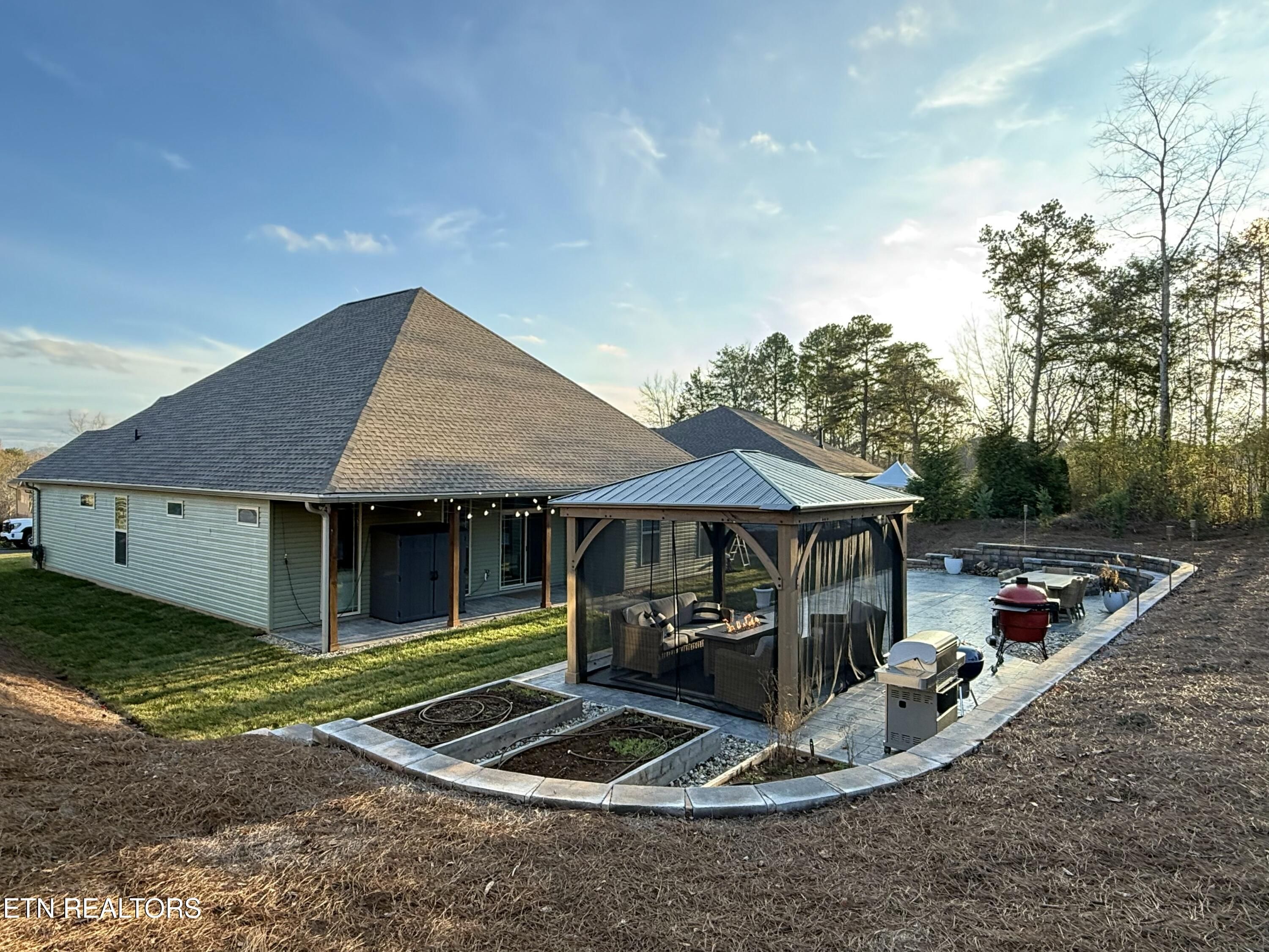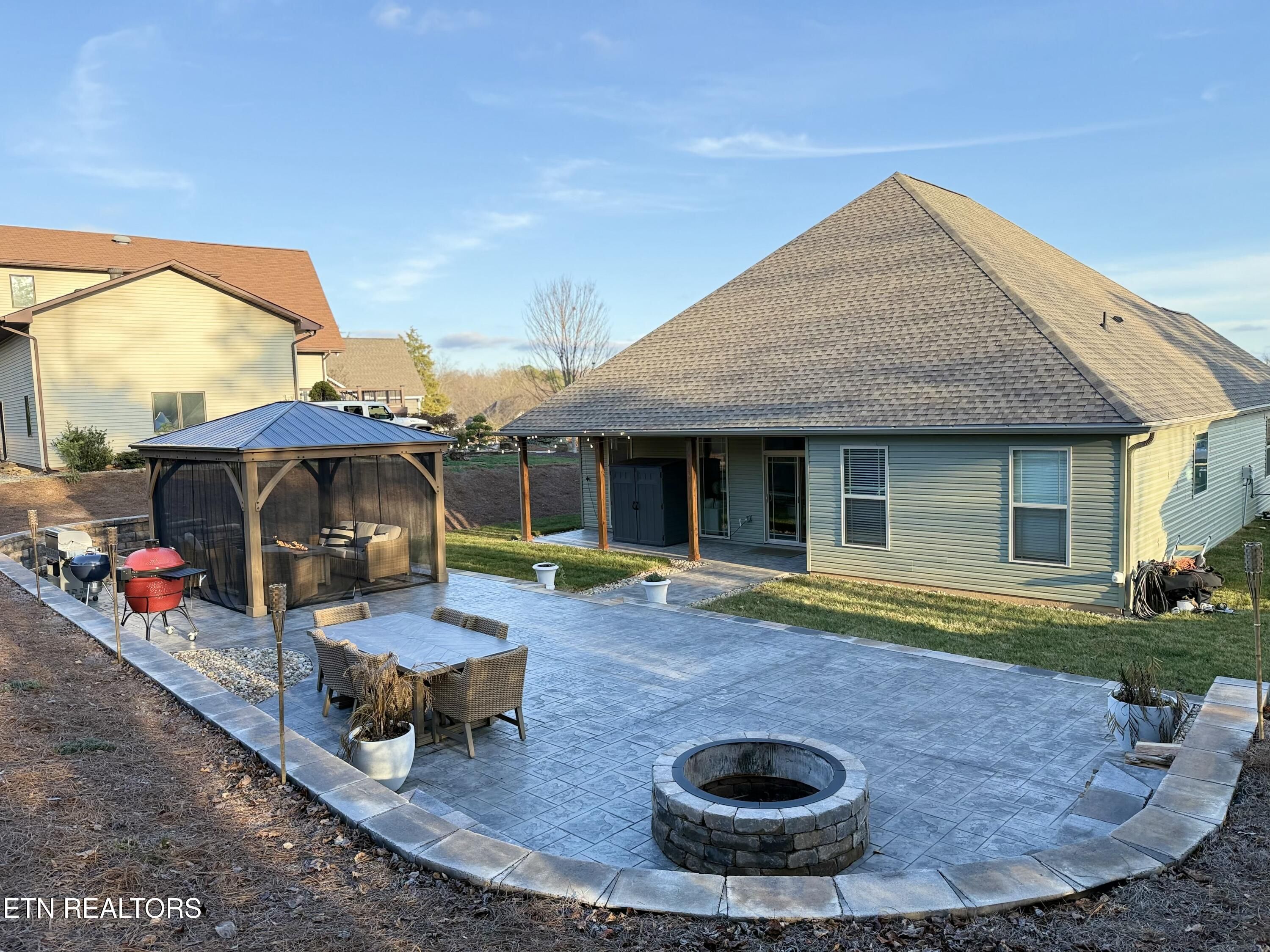 WELCOME TO YOUR NEW HOME! Featuring 3 bedrooms, an office, 2 bathrooms, and a custom designed patio area, this home is truly a standout! This home features an open-concept layout filled with natural light and stylish finishes throughout. The spacious living room serves as the heart of the home, featuring elegant cabinetry and countertops, a floor-to-ceiling brick electric fireplace, along with a 12 foot ceilings that create an open and inviting layout. The gourmet kitchen showcases full-height cabinetry, a beautiful quartz island, stainless steel appliances, pot filler, and pantry. The master bedroom showcases a coffered ceiling design and a large walk-in closet. The master bathroom is a true retreat, featuring a soaking tub, frameless glass shower, and private water closet. Each closet is equipped with custom built-in shelving. The laundry room features generous shelf space and a convenient sink. Luxury (LVP) flooring flows seamlessly throughout the home, providing both durability and style. Enjoy year-round outdoor living on the covered porch area and the one-of-a-kind beautiful patio space that includes a bonfire pit with built-in seating. The professional landscaping includes 5-zone irrigation and garden beds with irrigation as well. Don't miss your opportunity to make this home yours! Schedule your showing today!