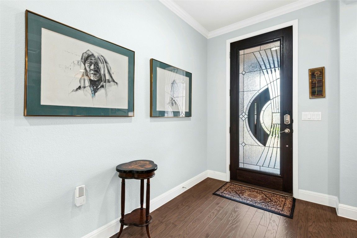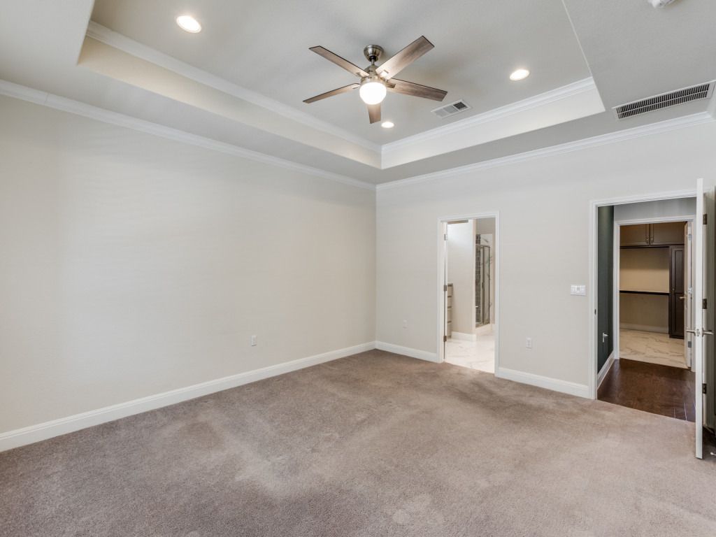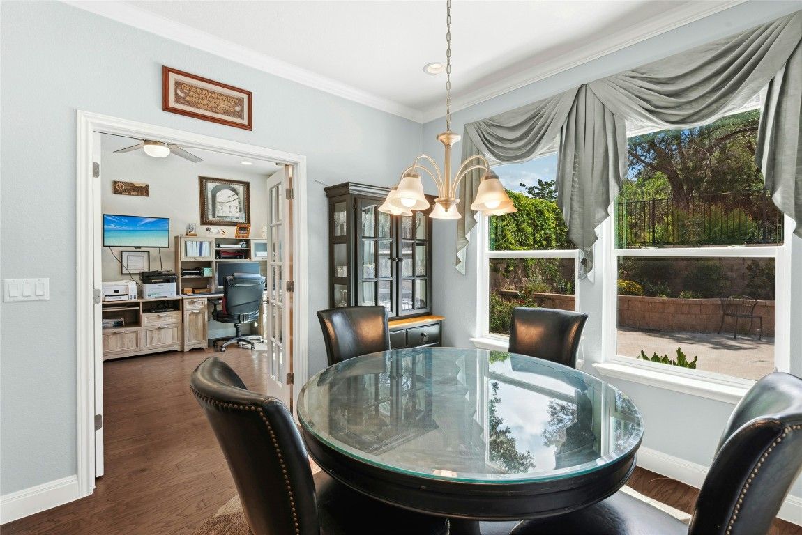 - Beamed Ceilings, Breakfast Bar, Built-in Features, Open Beams/Beamed Ceilings, Tray Ceiling(s), Chandelier, Crown Molding, Separate/Formal Dining Room, Double Vanity, Granite Counters, Multiple Living Areas, Multiple Dining Areas, Main Level Primary, MurphyBed, NoInteriorSteps, Open Floorplan, Pantry, Recessed Lighting, Storage, Walk-In Closet(s)