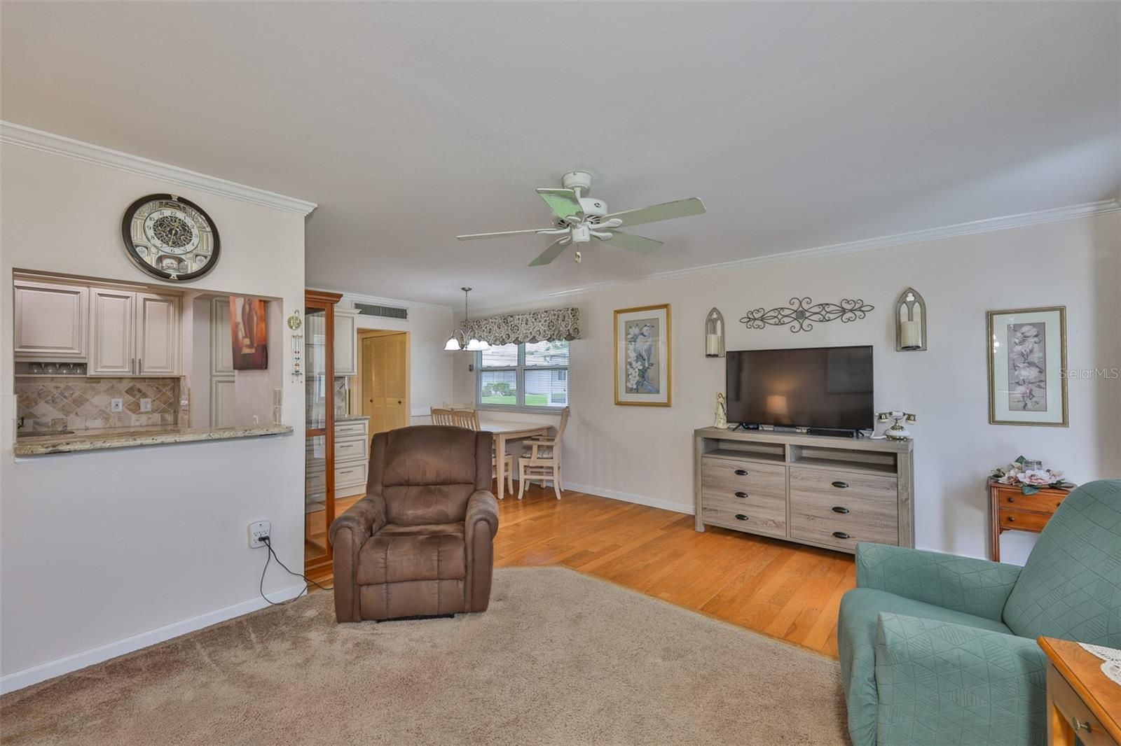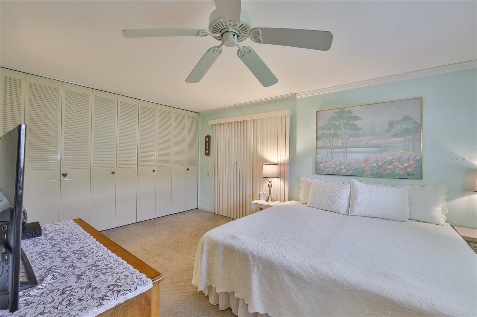 - Ceiling Fan(s), Crown Molding, Stone Counters, Thermostat, Window Treatments