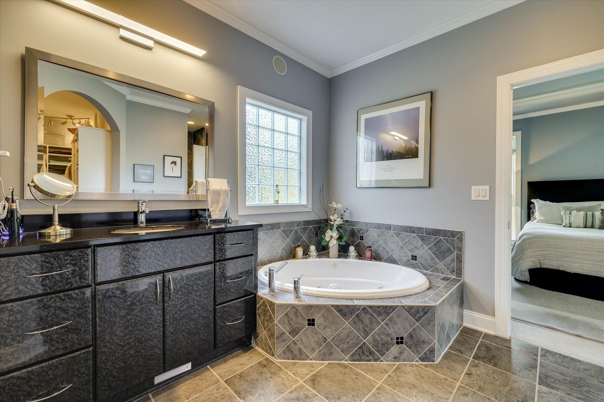 - Blinds, Cable TV Hookup, Eat-in Kitchen, Entrance Foyer, Garden Tub, Kitchen Island, Smoke Detector, Split Bedrooms, Walk-In Closet(s), Washer Hookup, Electric Dryer Hookup, Main Level Primary