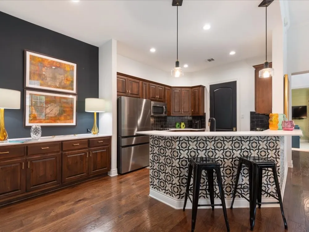 - Breakfast Bar, Built-in Features, Ceiling Fan(s), Chandelier, Double Vanity, Eat-in Kitchen, High Ceilings, Main Level Primary, NoInteriorSteps, Quartz Countertops, Walk-In Closet(s), High Speed Internet