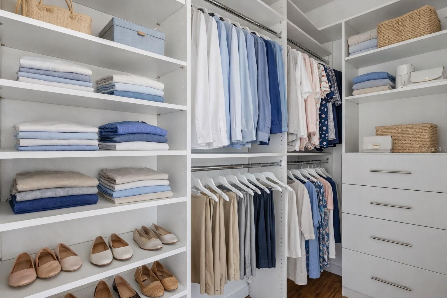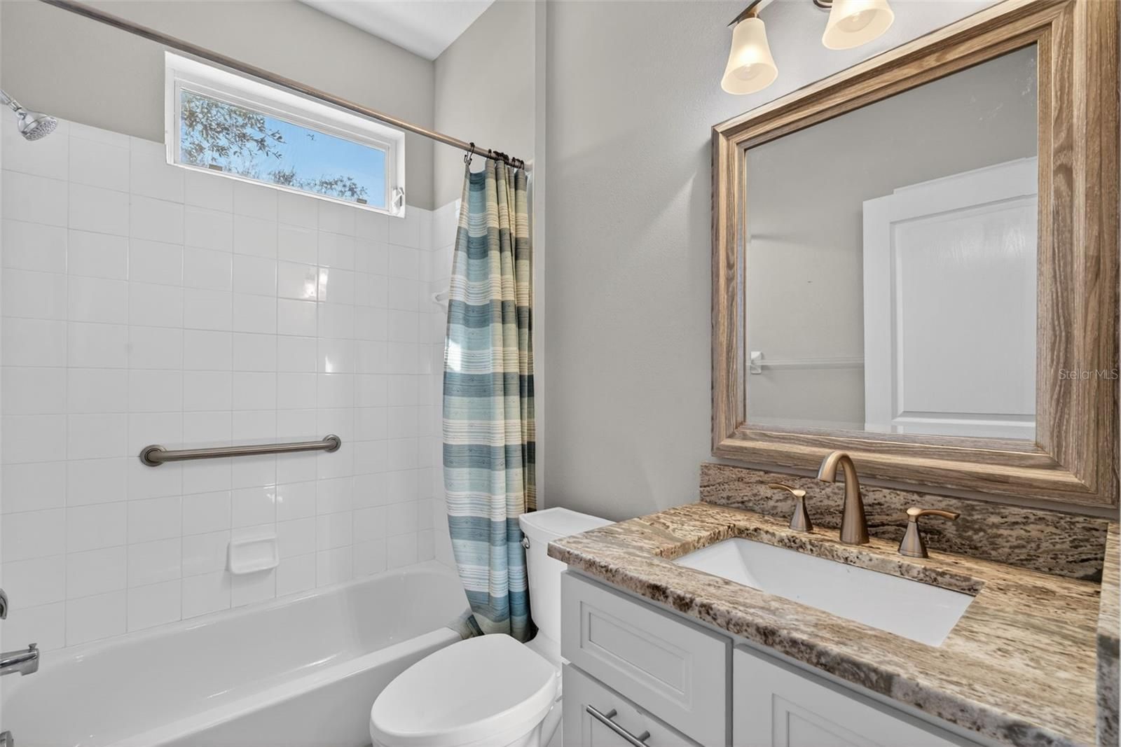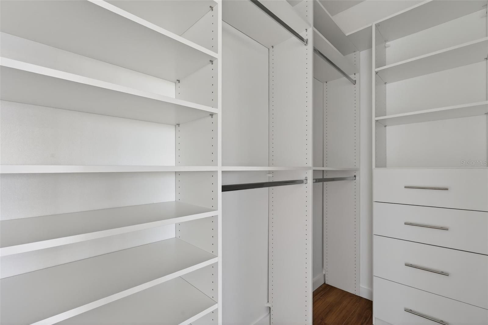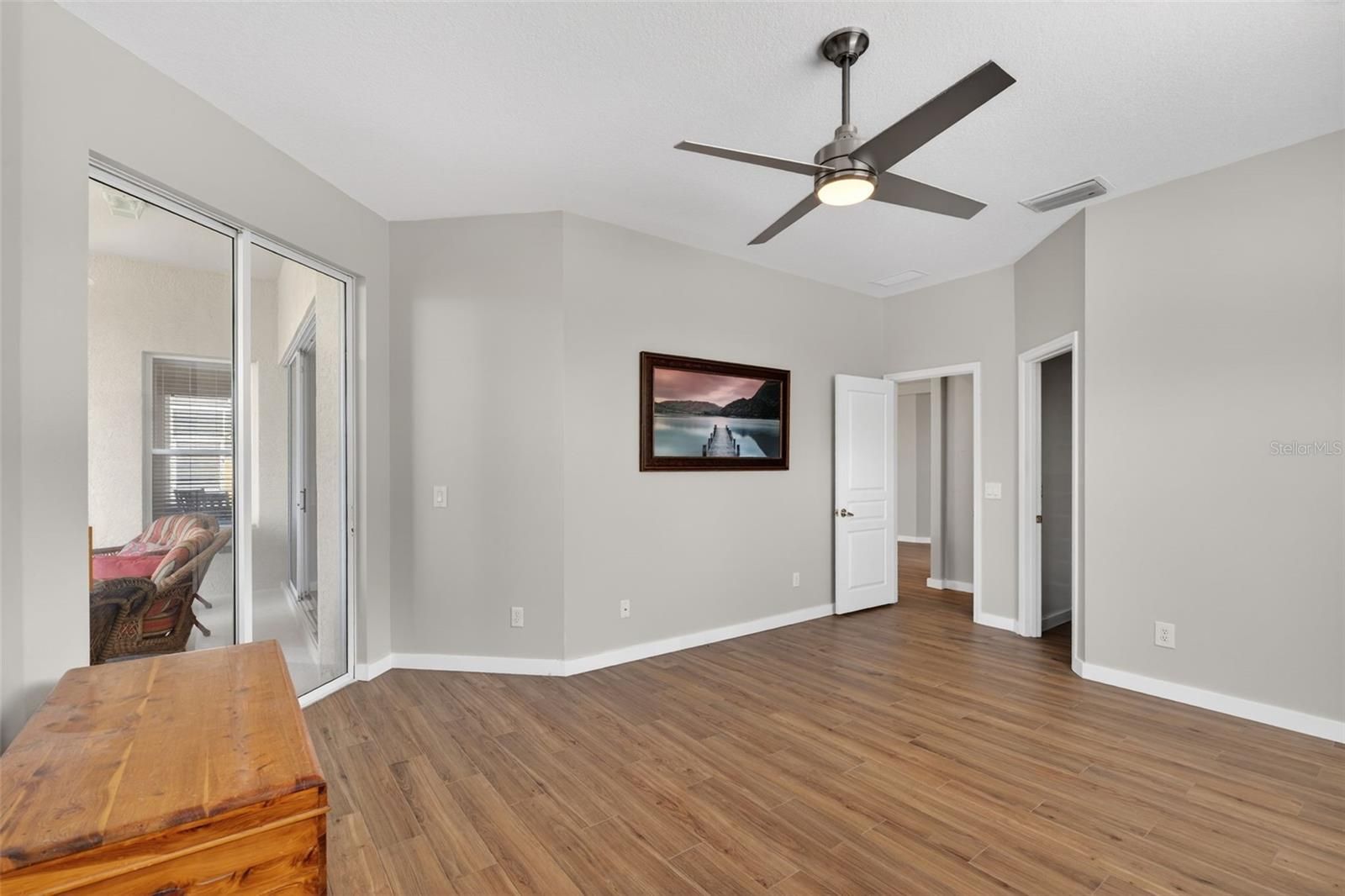 - Ceiling Fan(s), Living/Dining Room, Main Level Primary, Solid Surface Counters, Split Bedrooms, Stone Counters, Thermostat, Vaulted Ceiling(s), Walk-In Closet(s), Window Treatments