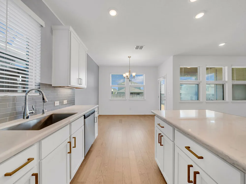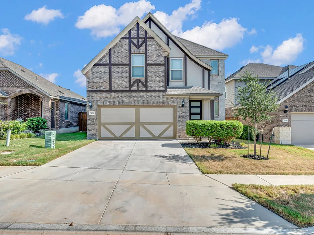 Bring your golfcarts! Drive them to the pool! Please reach out for a video walkthrough! Tudor style home, 2 car garage + watersoftener + backyard grill. Downstairs has gas powered stove, kitchen island, large living area & dining area + a desk office area & half bathroom. All bedrooms upstairs, Primary has a large walk-in closet, two sinks, private bathroom & linens closet. 2 guest bedrooms with good sunlight & closets. Spacious upstairs play area & a high ceiling opportunity for an art piece along the stairs. Just a few minutes from HEB, swimming holes, Schlitterbahn, Gruene Hall & local New Braunfels restaurants. 2050 Egret Ave New Braunfels, Veramendi Neighborhood, built in 2022. Available now! Potential seller financing available. Please reach out for video walk-through, showings and applications!