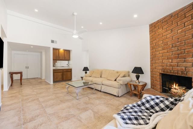 Priced to Sell! Adorable Home in the Desirable 55+ Seven Hills Community - HemetThis beautifully remodeled charmer features 3 bedrooms and 2 bathrooms in an ideal single-level floor plan, perfectly situated in a quiet and welcoming neighborhood. With its inviting brickwork exterior and ultimate curb appeal, this home is sure to impress from the moment you arrive.Step through the grand entryway into bright and open living spaces designed for both comfort and convenience. The chef's kitchen offers plenty of room to cook and entertain, complete with an additional living area just off the kitchen that's perfect for casual gatherings or seamless indoor-outdoor living. All three bedrooms are comfortable proportionally sized.The spacious living room with fireplace and wet bar is ideal for relaxing or hosting with ease. The open-concept layout provides a modern flow, creating an inviting environment for today's lifestyle.Recent upgrades include:-New recessed LED lighting-Uniform tile flooring throughout-Smooth ceilings-Modern fixtures and ceiling fans-Fresh interior paintThe affordable HOA fee is just $45 per year, and the low-maintenance exterior hardscape makes upkeep a breeze. As a resident, you'll enjoy access to a community pool, spa, and nearby golf course, giving you endless opportunities to enjoy the Southern California lifestyle.This home is priced to sell--don't miss the chance to make it yours and start living your best life at Seven Hills!