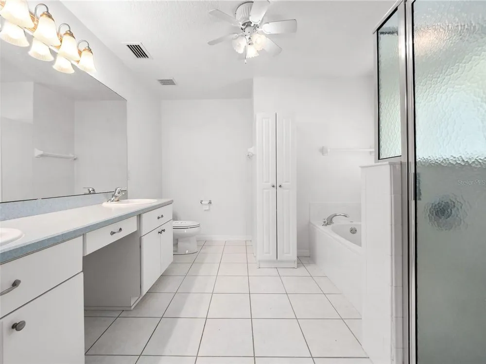 - Ceiling Fan(s), Eat-in Kitchen, High Ceilings, Open Floorplan, Main Level Primary, Split Bedrooms, Thermostat, Walk-In Closet(s)