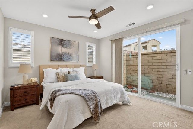 Welcome to this stunning 3 Bedroom, 3 Bathroom plus Loft home on a corner lot in the Galloway Gated 55+ Community! 2 bedrooms on the main floor and upstairs you will find a large loft plus additional bed and full bath, just perfect for guests! This perfect floor plan features a luxurious atmosphere for entertaining with a spacious living and dining room that open to the gourmet kitchen featuring beautiful stainless steel appliances, beautiful granite countertops, white kitchen cabinets and a spacious center island with seating. The indoor laundry room is conveniently located on the first floor near the bedrooms. The light and bright living room has been tastefully upgraded with luxury tile flooring and recessed lighting! The downstairs primary suite is spacious, complete with a large walk-in shower, dual sinks, huge walk-in closet with gorgeous and functional built-in storage features. In addition, there is a second bedroom and an additional bath on the main floor as well as a large bedroom and another bathroom plus a loft on the second floor! Upstairs, enjoy a spacious loft that is incredibly light and bright, all windows have custom plantation shutter and the flooring is upgraded laminate flooring. As a bonus, included in the sale is washer, dryer and refrigerator. Enjoy resort-style living with access to a fabulous clubhouse overlooking the Santa Clarita Valley! Enjoy the community gym, sparkling pool, and spa! Explore the adjacent Santa Clarita Senior Center or take advantage of nearby Golden Valley Park and dog park, basketball court and picnic areas! This truly turnkey home.