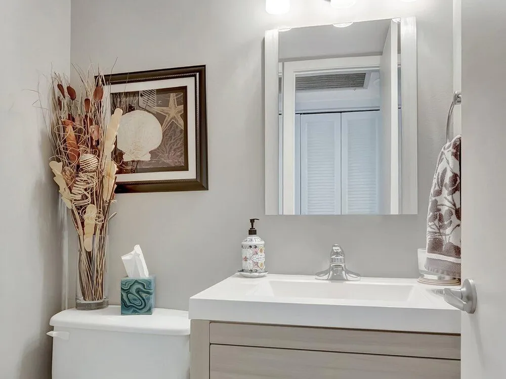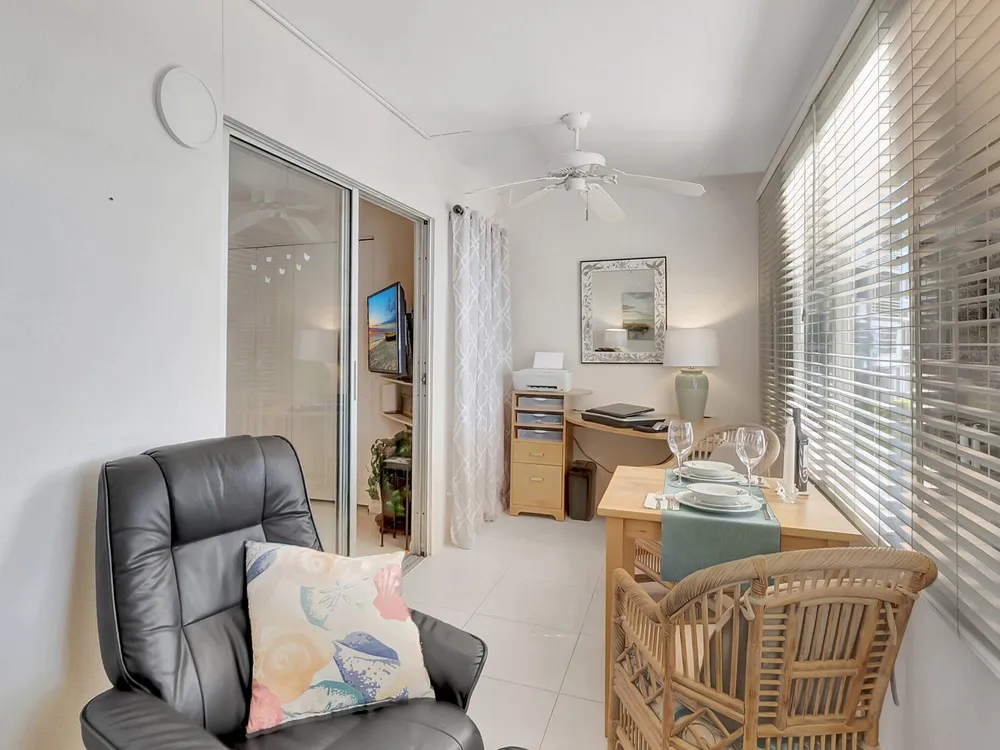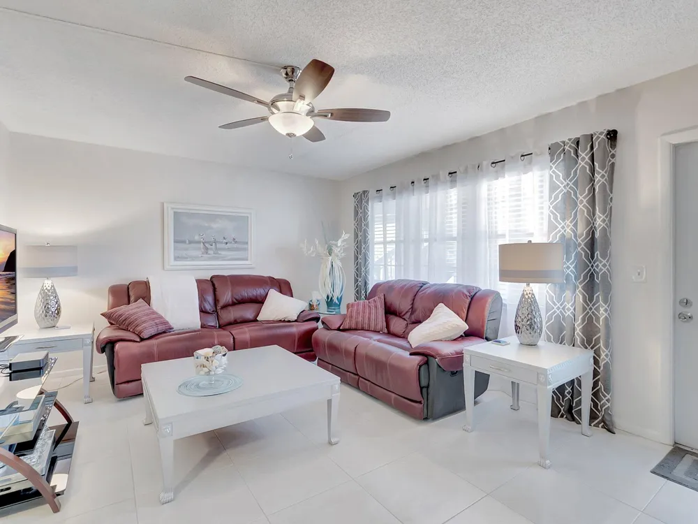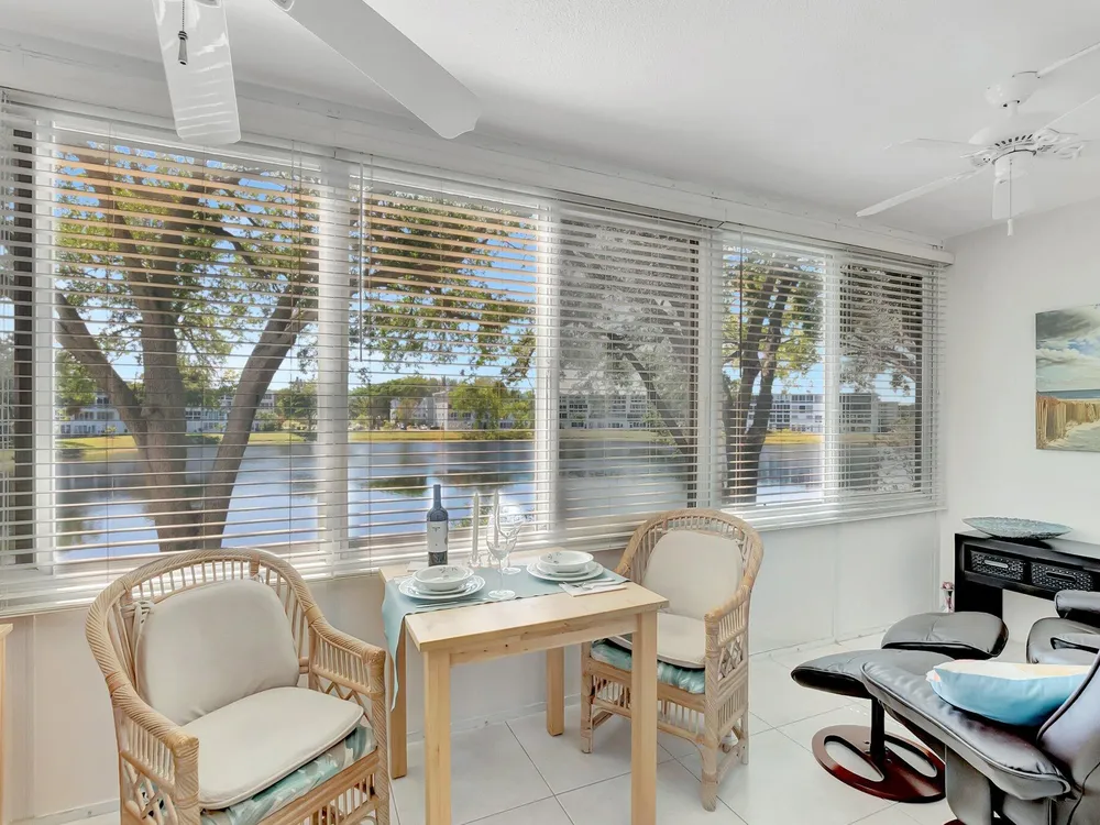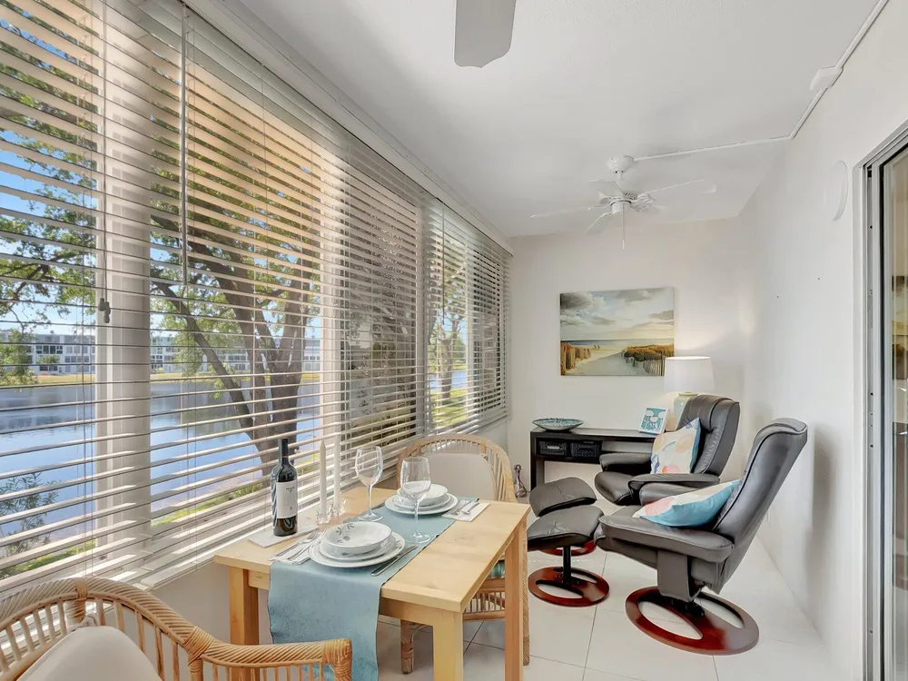 Step into this beautifully furnished 1-bedroom, 1.5-bathroom second-floor unit, offering an open-concept floor plan perfect for entertaining family and friends. The modern kitchen features sleek white cabinets and appliances, and everything is included--from furniture to dishes and all cooking utensils--making this a truly move-in-ready home.The updated half bath boasts stylish finishes, while a spacious pantry provides ample storage. The primary bedroom is generously sized, comfortably fitting a king-size bed with plenty of walking space. Enjoy three double-door closets for exceptional storage, and relax in the updated ensuite bathroom, featuring an elevated walk-in shower.Unwind in the enclosed Florida Room, where breathtaking lake views create a serene retreat.