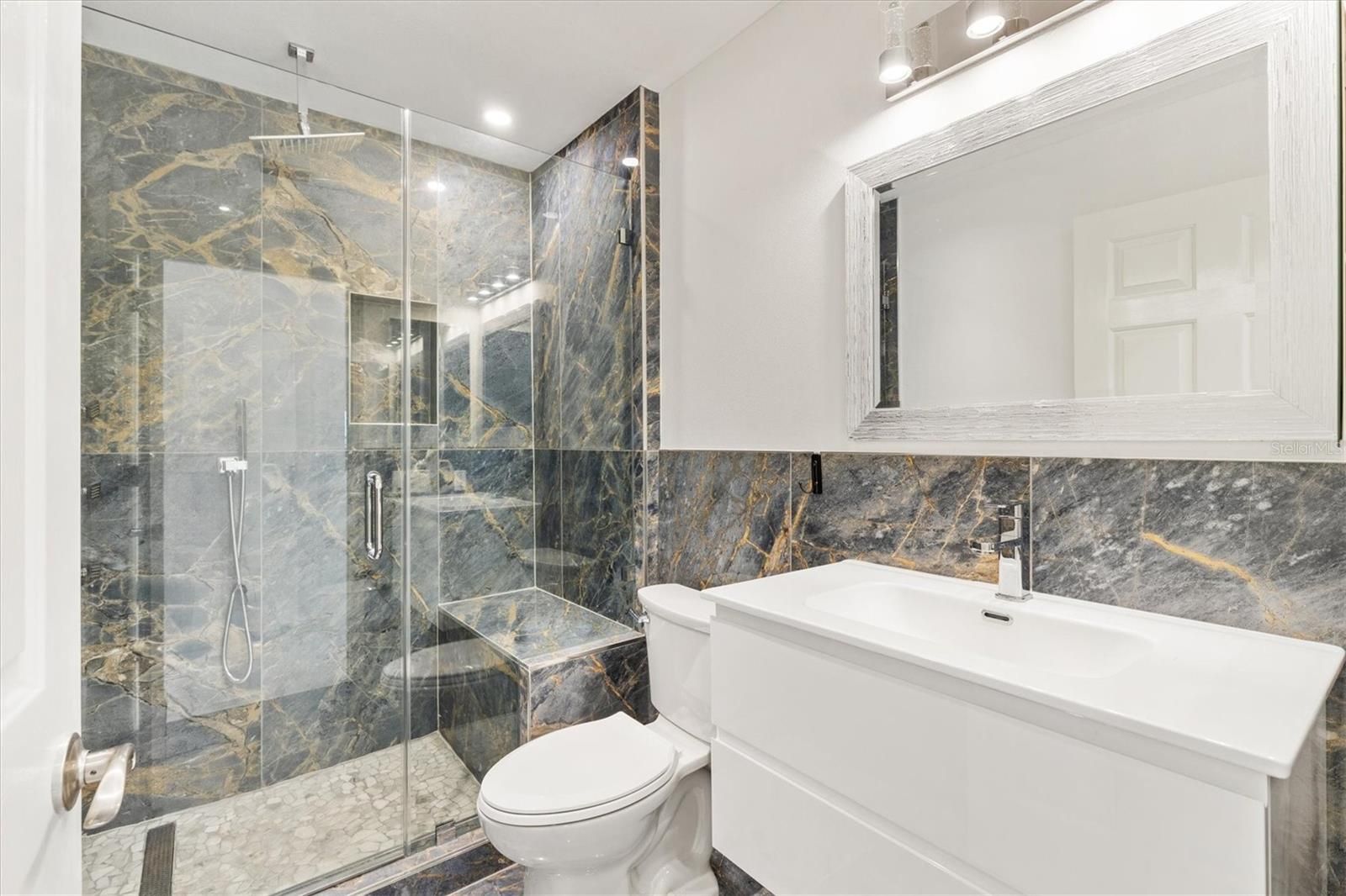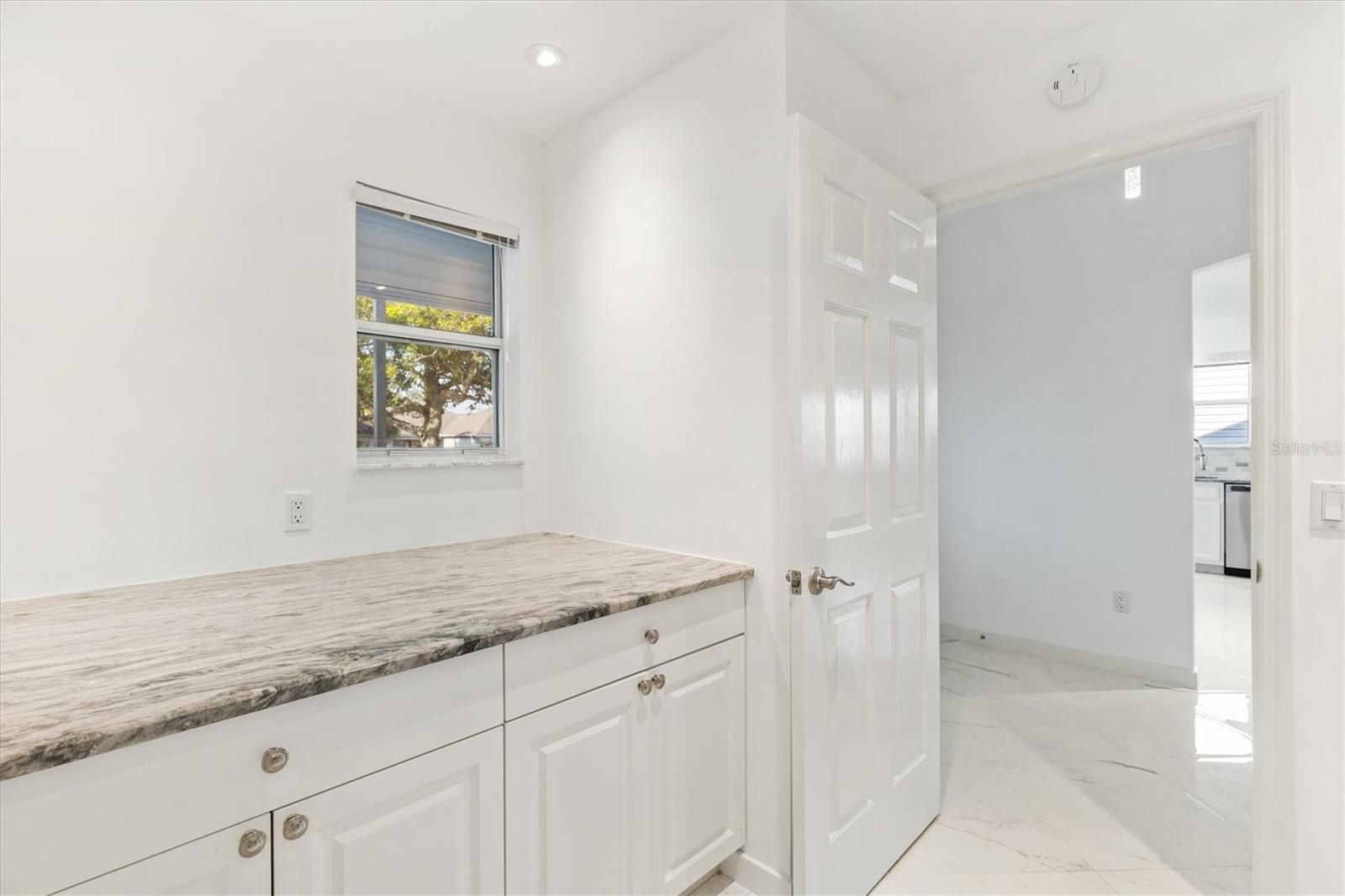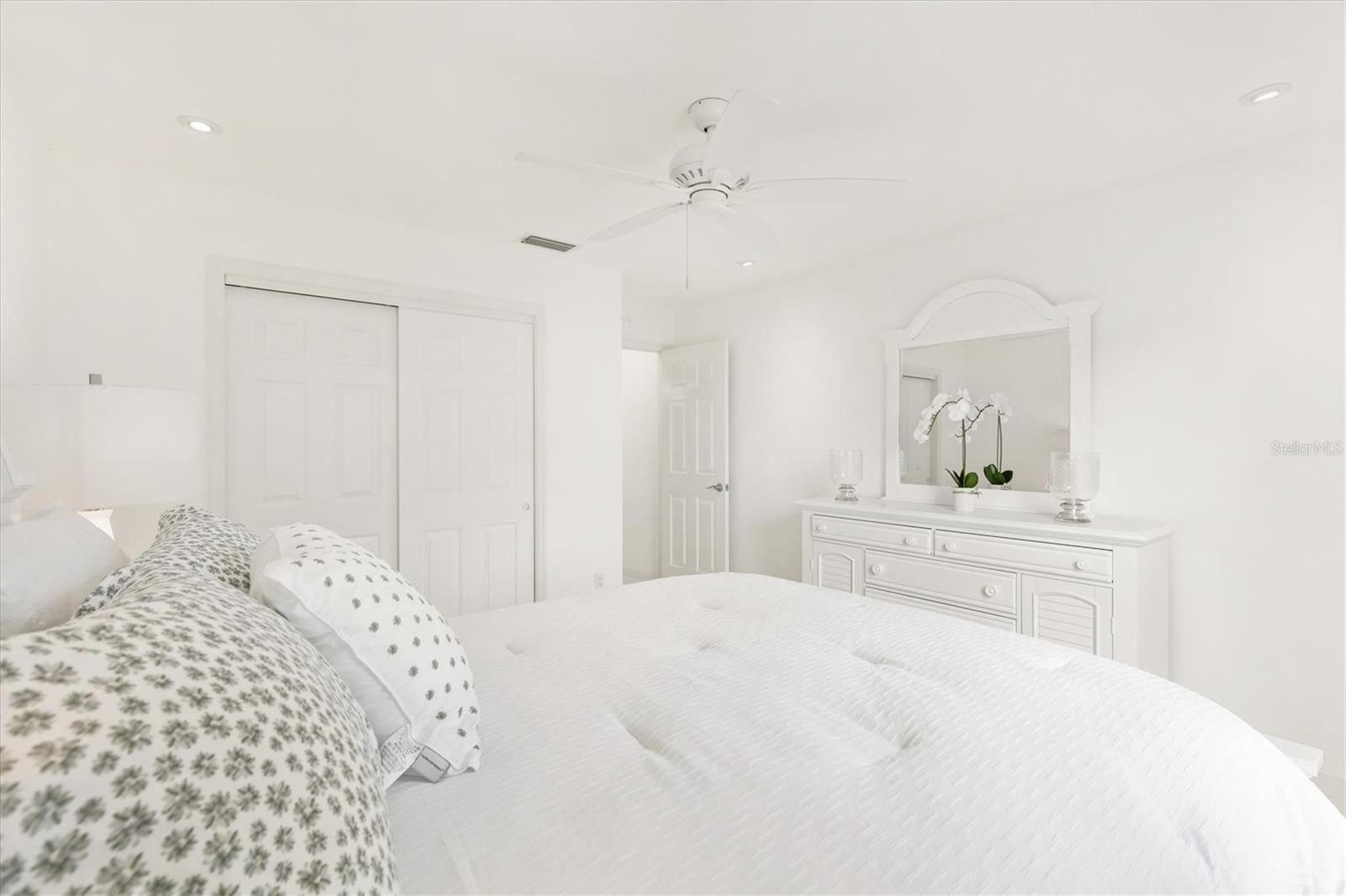 - Ceiling Fan(s), High Ceilings, Living/Dining Room, Open Floorplan, Main Level Primary, Solid Surface Counters, Stone Counters, Walk-In Closet(s)
