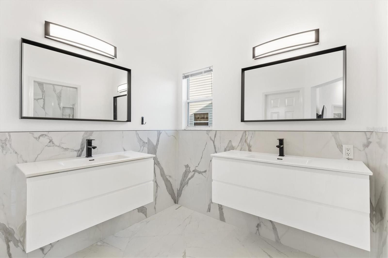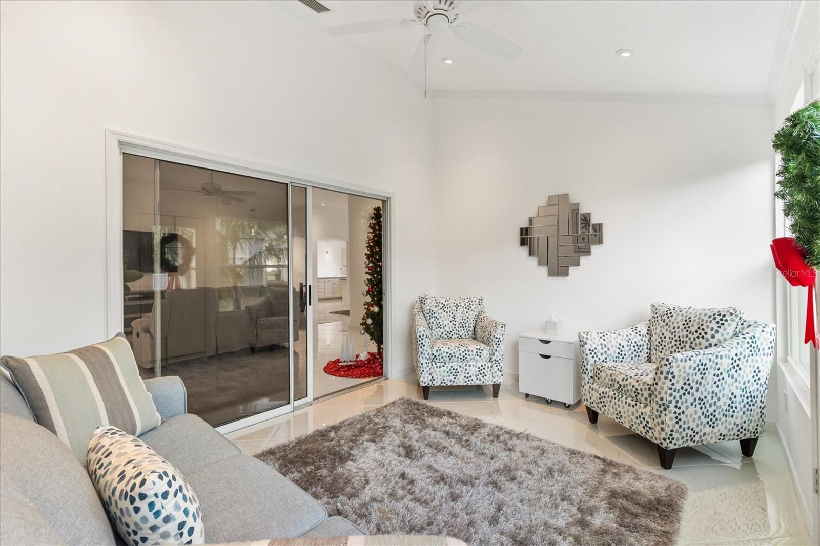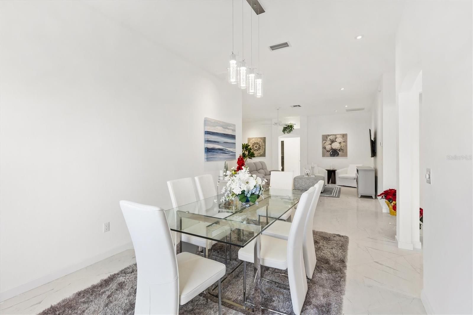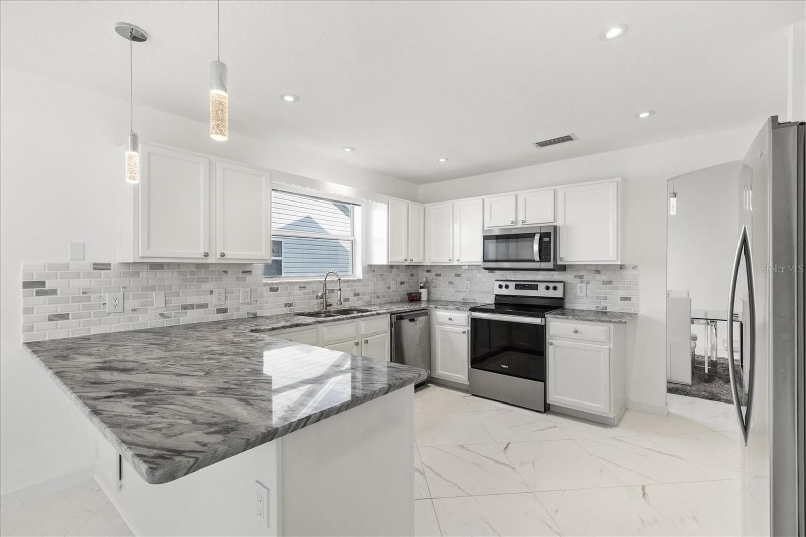 This completely remodeled 1,908 sqft Vera Cruz Model featuring 3 bedrooms and 2 baths is a MUST SEE! This home has been updated from top to bottom with nothing spared. Opening the front door is like stepping into heaven with Large Luxury Porcelain Tile flooring installed on an angle throughout the entire home — no carpet. Cloud tone walls, trim, and cabinetry at every turn. Modern LED flush mounted lighting adds ambiance to every room with dimmers that can adjust to match the mood. The kitchen features newer stainless steel appliances and granite counter tops with plenty of room for a dinette table overlooking the bay windows. The living and dining areas provide ample space for entertaining and relaxation. The large master bedroom and ensuite bath provides the perfect getaway with floating vanity cabinets, a custom luxury shower featuring a true rainforest shower head, hand wand and a 6-jet body shower panel. The master bedroom features two walk-in closets with plenty of room for clothing and additional storage. The Vera Cruz is a split floor plan. On the opposite side of the home there are two spacious bedrooms and a guest bathroom which also features a floating vanity and a custom luxury shower. But wait, there's more! The finished 13’ x 10’ Florida Room that's just off the living room is a perfect place for an office, craft room or an additional room for TV entertainment. The home is located less than 1/2 mile from the Tierra del Sol Country Club — featuring a Rec Center, Tennis Courts, Pool, Bocce Lanes, and a Studio Theater. This central location is the heart of The Villages — you'll enjoy travelling less than 10 minutes by golf cart to either Sumter Landing and Spanish Springs Town Squares, plus plenty of retail shopping and restaurants nearby. The Bond is Paid. The HVAC and Water Heater were replaced in 2022, and the Roof was replaced in 2016. Reach out and schedule your private tour of this beautifully remodelled home today!
