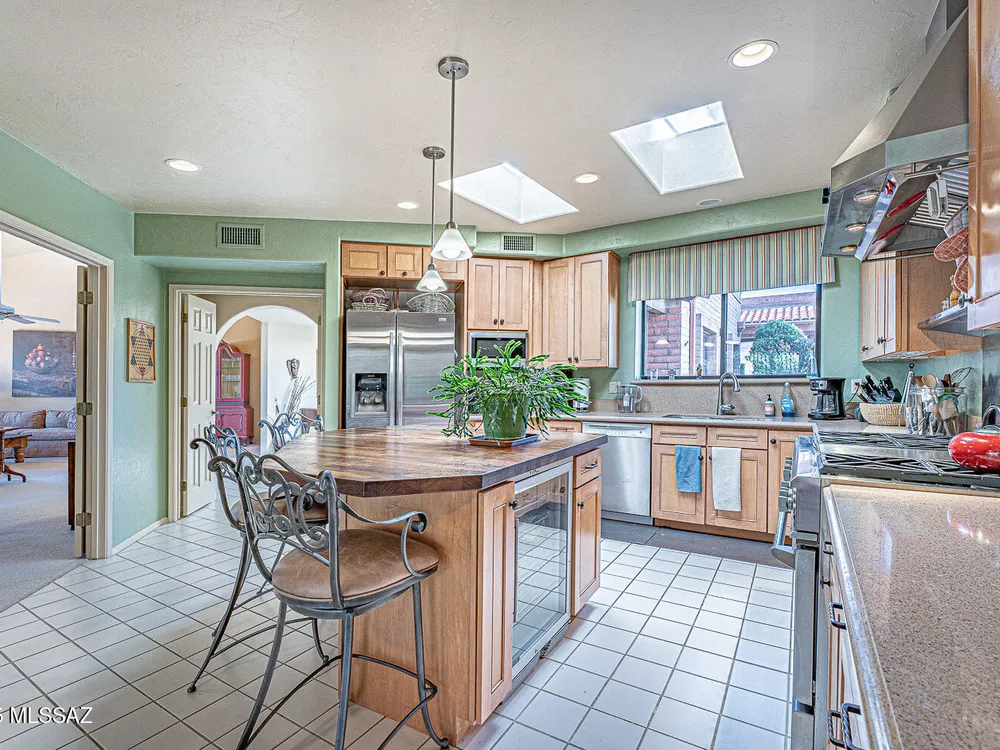 - Dishwasher, Exhaust Fan, Gas Range, Microwave, Refrigerator, Wine Cooler