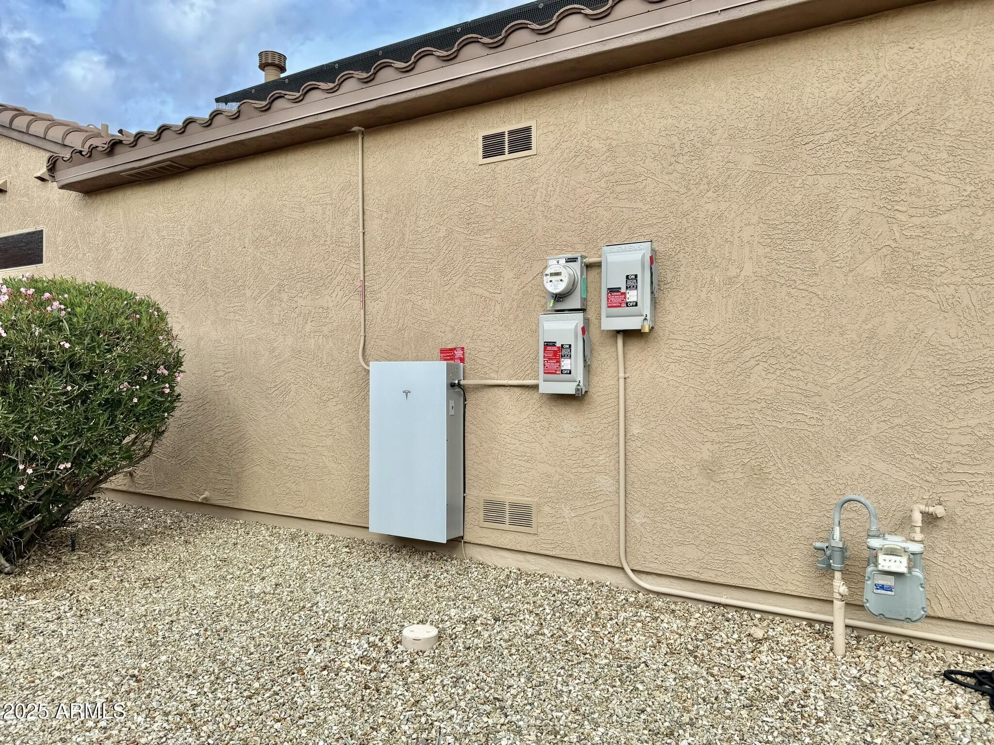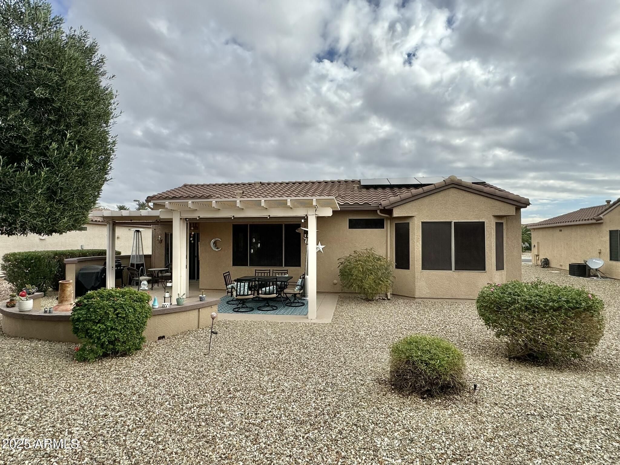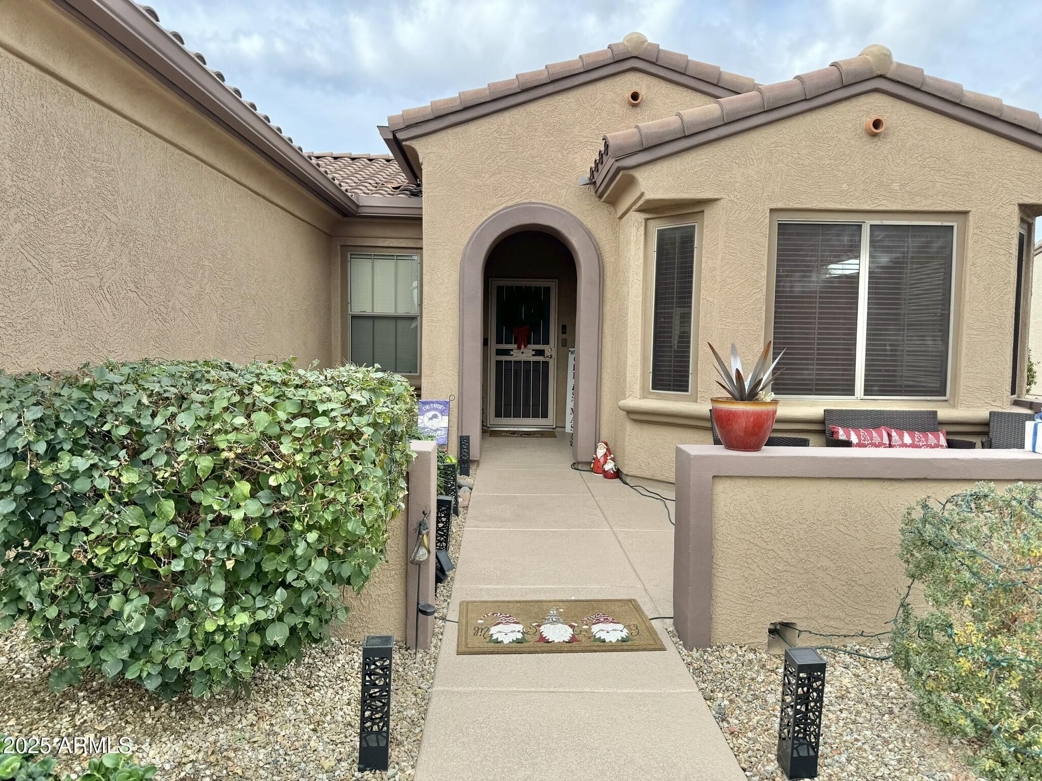 Feel right at home the moment you walk in. This light-filled great room is perfect for everyday living and easy entertaining, with clean neutral finishes throughout. The kitchen truly shines with updated stainless appliances, granite countertops, a glass-tile backsplash, and sink. The spacious primary suite is a relaxing retreat with a bay window, walk-in closet, and updated bath. You'll love these updates: faux fireplace, newer vinyl wood flooring, 16'' tile, baseboards, and fresh interior/exterior paint. 2022 HVAC and hot water heater. Enjoy morning coffee in the front courtyard or unwind under the covered back patio with new cool decking and sealer (Dec 2025). Extended garage with custom cabinets. 2025 new Solar with Tesla backup battery—many months show APS credit. Save MONEY!!!