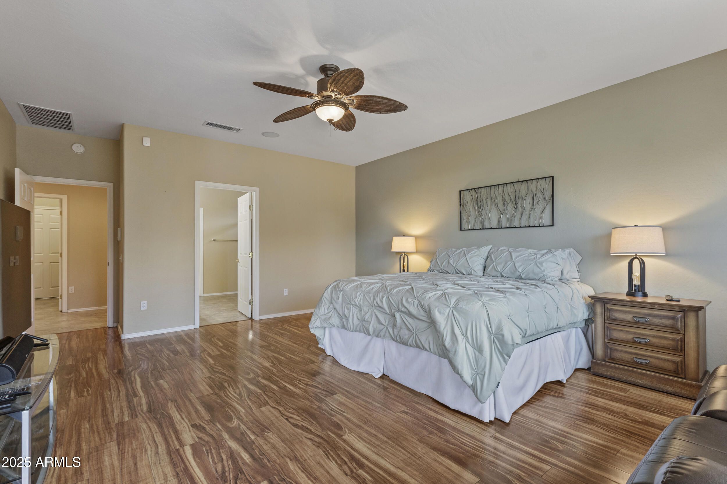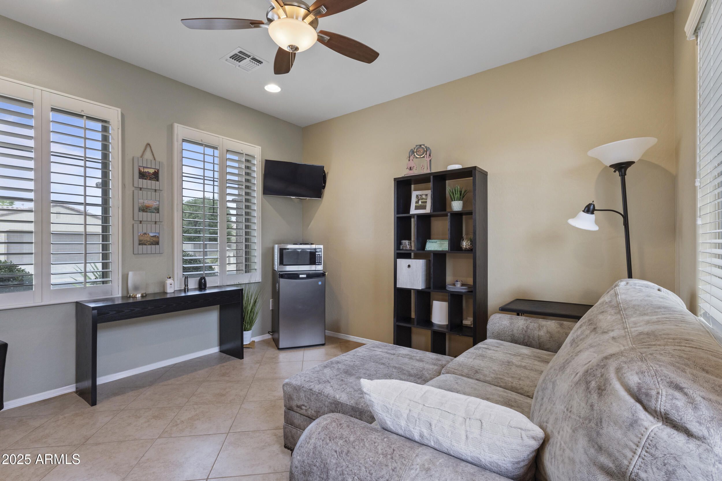 Nestled in the vibrant resort-style community of The Grand, this 3-bedroom, 2-bath home with casita on a quiet corner lot in a cul-de-sac offers the ideal mix of comfort and convenience. Highlights include owned solar panels—a smart choice for energy efficiency, A/C in garage, flat screen TVs in every room. Plus, the luxury of you own casita with a full restroom and closet. With the community's extensive amenities such as two fitness centers, four pools, golf courses and more, lifestyle meets leisure right at your doorstep. Don't miss this exceptional opportunity in a welcoming, active community.
