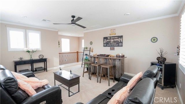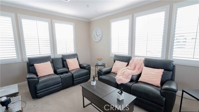 Welcome to this gorgeous senior gated community home (55+ years old) in Santa Clarita. This stunning three-bedroom, three-bathroom residence offers a perfect blend of elegance, comfort and modern amenities. The interior has been recently painted. Crown molding and plantation shutters throughout the residence. This home is the epitome of luxury senior living. The kitchen boasts plenty of cabinet space, a large island with granite countertops and a walk-in pantry. It's a chief's paradise, offering both style and functionality. Attached double car garage with ample of room. The generous master suite is your private sanctuary, featuring a walk-in closet and an en-suite bathroom with a double vanity, soaking tub, and separate shower. Step into your private backyard from your master suite. additionally, the first floor features a guest bedroom and full bathroom. Enjoy your evenings in your private backyard with new turf, fruit trees and newer cement. The second floor features a bedroom, bathroom and a large loft. Appliances included: dishwasher, microwave and washer and dryer. Central AC/heater, ring doorbell, solar and tank-less water heater. Amenities: clubhouse, outdoor BBQ, entertaining area, pool, spa, and fitness center. It also has guest parking. The home is close to SVC Senior center, shopping, restaurants, and park. Schedule a viewing today.