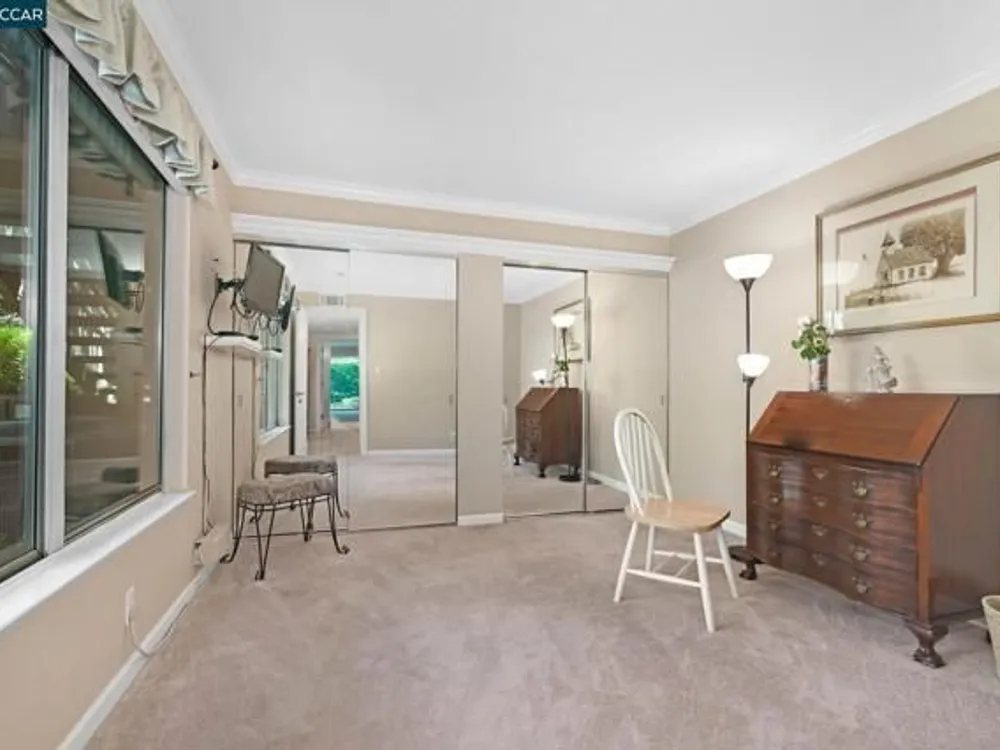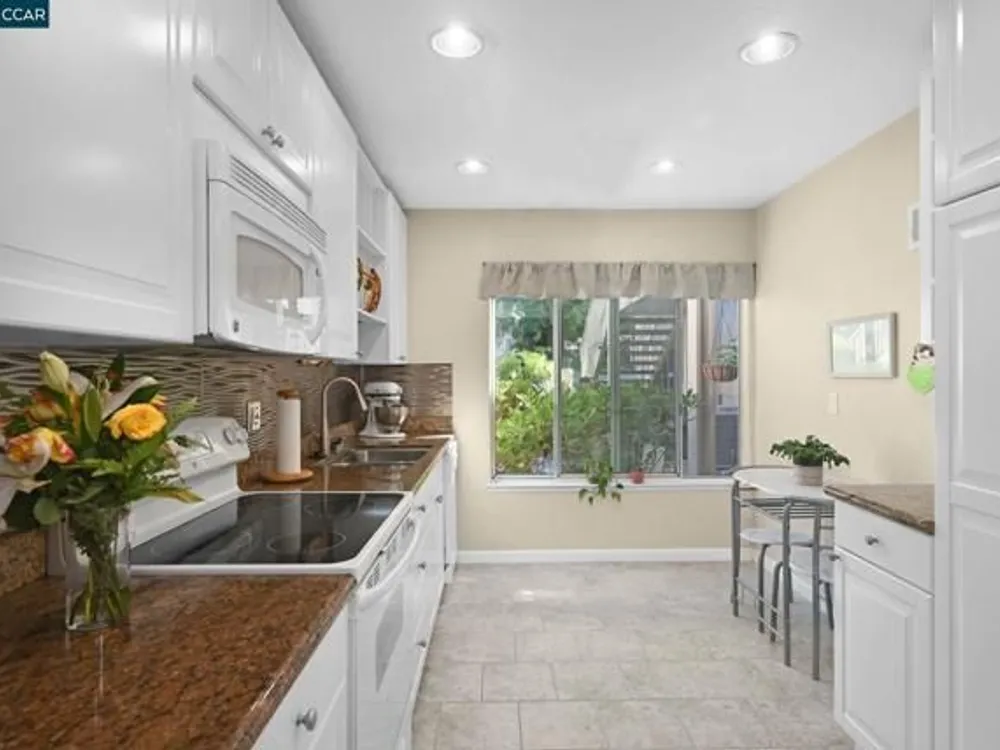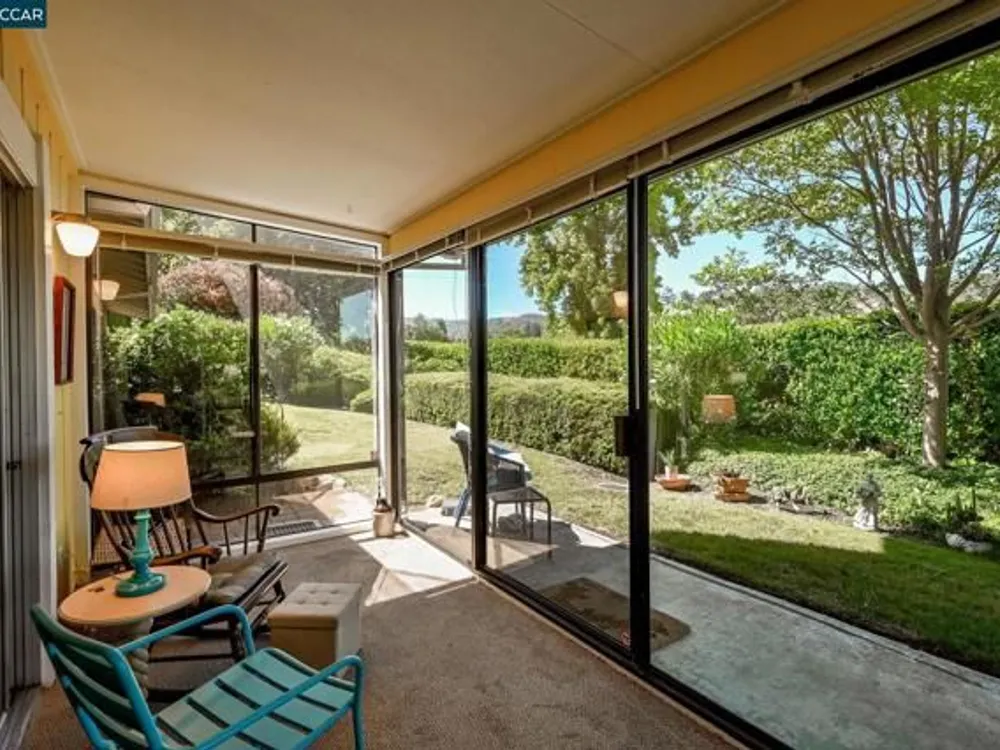 Great Price! Great Opportunity! Gated Community! WOW - Mariposa model -Level Entry - No stairs! 1 Level floor Plan. 1 Car Garage. Beautiful views of the surrounding hillside. Enclosed Sun Porch/Patio w/sliding glass door and screen, Access to backyard common lawn area. Great location in Rossmoor, 2-3 min to entry. Updated w/new carpet, lots of natural light, open concept floor plan, Large Kitchen & Eating Area, Lg Living Room, Dining Room, and Master Suite! Updated Master Bathroom. Master has entry to sun porch. Living room also has entry to sun porch. Nice size Master suite and 2nd Bedroom! Beautiful Oak Tree in front of unit in sitting area.
