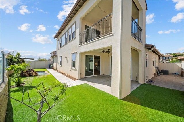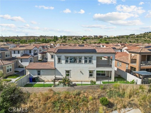 Stunning View Home in Premier 55+ Gated Community! Tucked away on a private corner lot, this beautifully upgraded residence offers the perfect blend of comfort, elegance, and low-maintenance living with low HOA and NO Mello-Roos. Step inside to soaring ceilings and a bright, open-concept layout designed for both everyday living and effortless entertaining. The expansive great room flows seamlessly between the dining and family areas, enhanced by rich hardwood flooring, custom shutters, and energy-efficient LED recessed lighting throughout. The gourmet kitchen is a true standout featuring a large granite island, full decorative tile backsplash, shaker-style cabinetry, and upgraded stainless steel appliances and sink. It opens directly to a covered California patio, creating the ideal indoor-outdoor living experience. The main-level primary suite offers privacy and convenience, complete with hardwood floors, a spa-inspired bathroom with soaking tub, separate walk-in shower, and a spacious walk-in closet. A secondary bedroom and full bath are also located on the main floor-perfect for guests or flexible use. Upstairs, enjoy an oversized loft ideal for a media room, office, or hobby space, along with a large private balcony showcasing breathtaking panoramic views your own elevated retreat. Step outside to a tranquil backyard oasis featuring sweeping views and a peaceful koi pond-perfect for relaxing mornings or evening gatherings. Additional highlights include fully paid-off solar, adding long-term value and efficiency. Enjoy resort-style community amenities including a pool, spa, gym, and clubhouse with recreation room all in a prime Santa Clarita location close to shopping, dining, and freeway access. This is a rare opportunity to own a move-in ready view home in one of the area's most desirable 55+ communities-schedule your showing today.