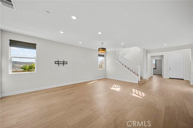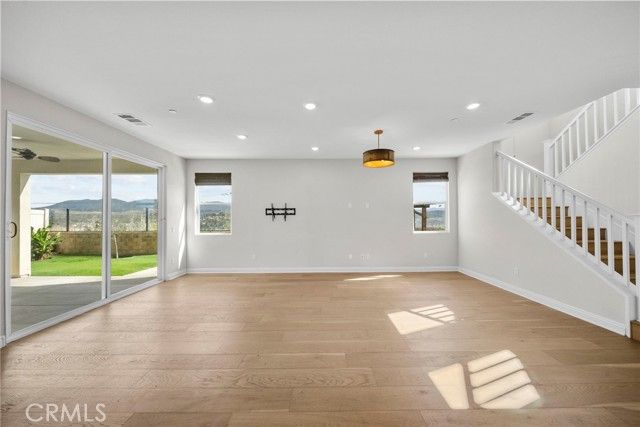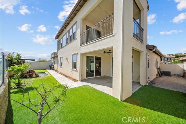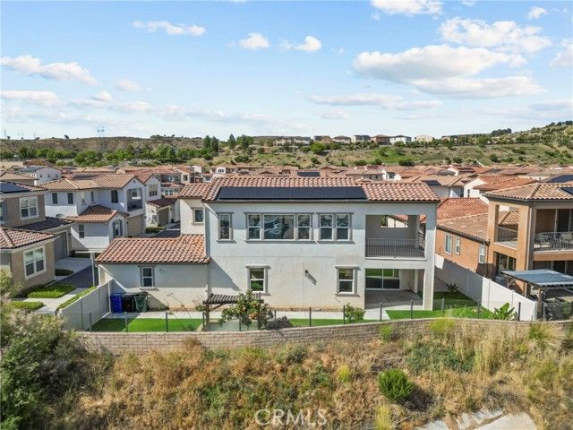 Stunning View Home in Premier 55+ Gated Community! Tucked away on a private corner lot, this beautifully upgraded residence offers the perfect blend of comfort, elegance, and low-maintenance living with low HOA and NO Mello-Roos. Step inside to soaring ceilings and a bright, open-concept layout designed for both everyday living and effortless entertaining. The expansive great room flows seamlessly between the dining and family areas, enhanced by rich hardwood flooring, custom shutters, and energy-efficient LED recessed lighting throughout. The gourmet kitchen is a true standout featuring a large granite island, full decorative tile backsplash, shaker-style cabinetry, and upgraded stainless steel appliances and sink. It opens directly to a covered California patio, creating the ideal indoor-outdoor living experience. The main-level primary suite offers privacy and convenience, complete with hardwood floors, a spa-inspired bathroom with soaking tub, separate walk-in shower, and a spacious walk-in closet. A secondary bedroom and full bath are also located on the main floor—perfect for guests or flexible use. Upstairs, enjoy an oversized loft ideal for a media room, office, or hobby space, along with a large private balcony showcasing breathtaking panoramic views your own elevated retreat. Step outside to a tranquil backyard oasis featuring sweeping views and a peaceful koi pond—perfect for relaxing mornings or evening gatherings. Additional highlights include fully paid-off solar, adding long-term value and efficiency. Enjoy resort-style community amenities including a pool, spa, gym, and clubhouse with recreation room all in a prime Santa Clarita location close to shopping, dining, and freeway access. This is a rare opportunity to own a move-in ready view home in one of the area’s most desirable 55+ communities—schedule your showing today.