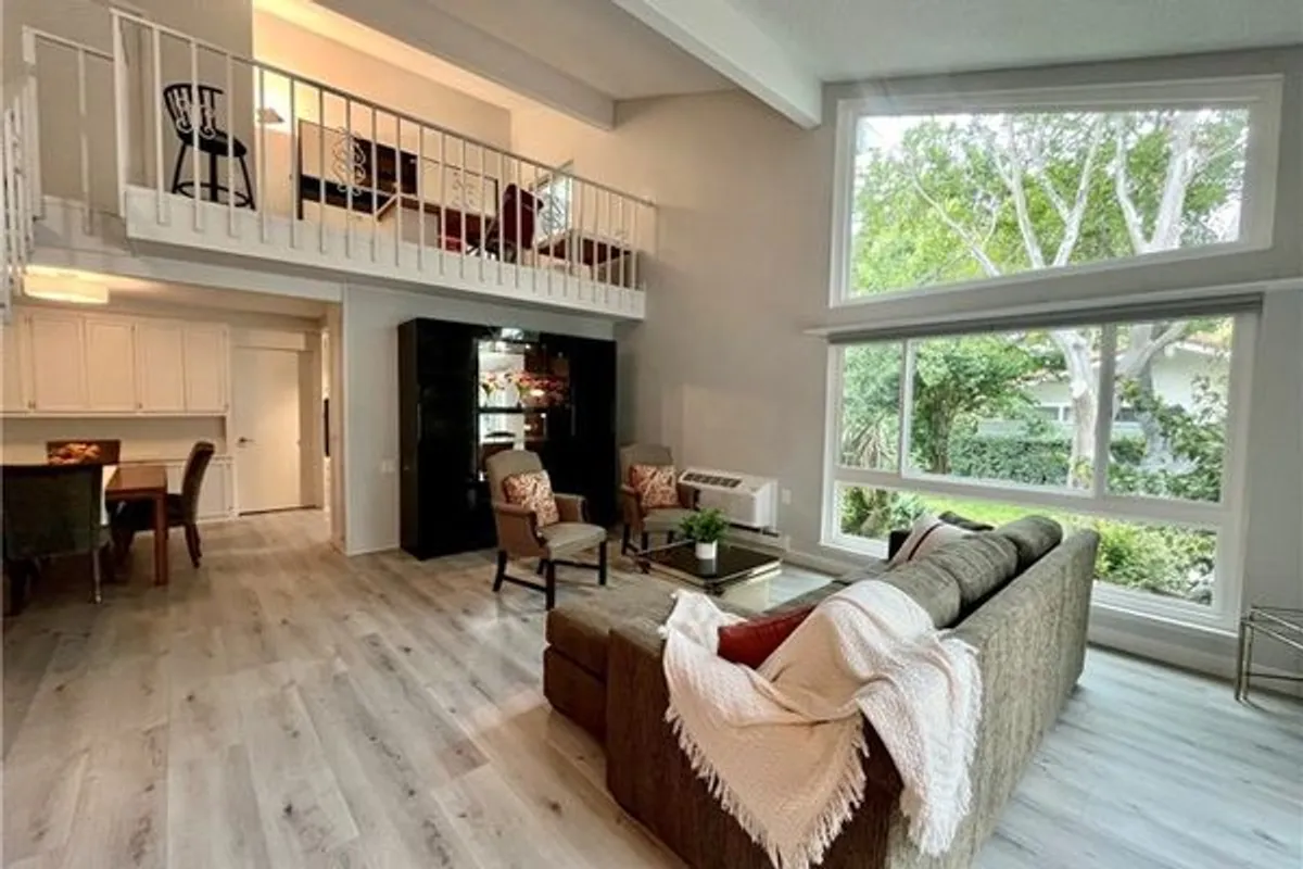 Renovated Seville 2 Model -- Live your best life in this fresh, spacious condo located in the renowned 55+ active adult community of Laguna Woods. Featuring luxury vinyl plank flooring and newer carpet, new windows & window shades, fresh paint and new lighting and mini split A/C & heat downstairs, you will appreciate this home for being clean, efficient, allergy-free and having less trip hazards. On the first level, enjoy living room with vaulted ceiling, tons of windows that let in plenty of natural light and a private enclosed patio with lemon tree. Main level bedroom and bathroom has new shower doors and fixtures. Kitchen includes newer electric cook top, dishwasher, refrigerator, and new Formica counter tops. Upstairs there is a loft set up as an office space overlooking the living room. Primary suite has a private balcony, en suite bathroom and wardrobe mirrored closets. There is ample storage throughout, plus additional store locker in carport. Laundry room is just a few steps away from the unit. The community offers a variety of amenities, including golf, pickleball, fitness center, swimming pools, library, 7 clubhouses, and over 250 social clubs. Convenient to dining, shops and medical services, Laguna Woods is a great place to call home. The community is known for its beautiful scenery and landscape, its friendly residents, and its active lifestyle. You'll love living here!