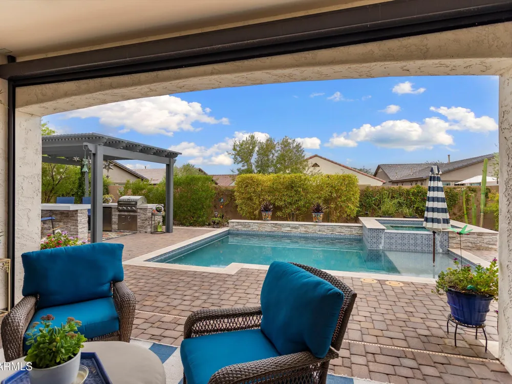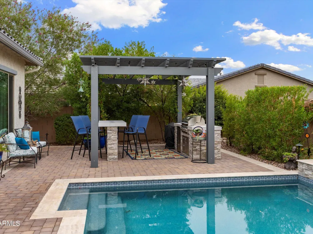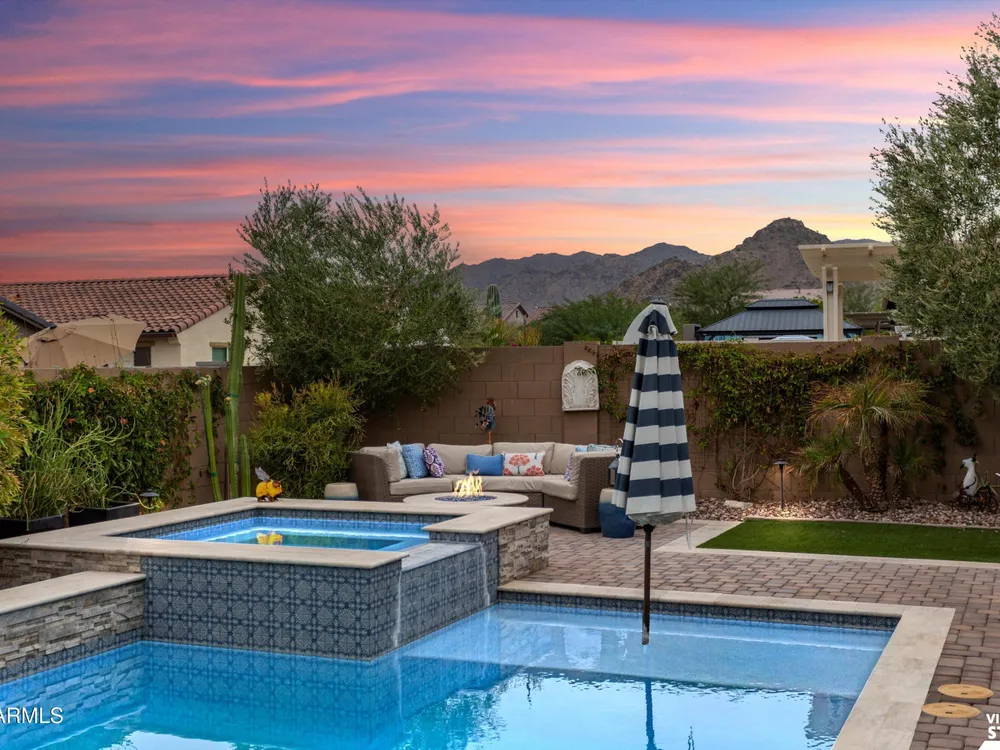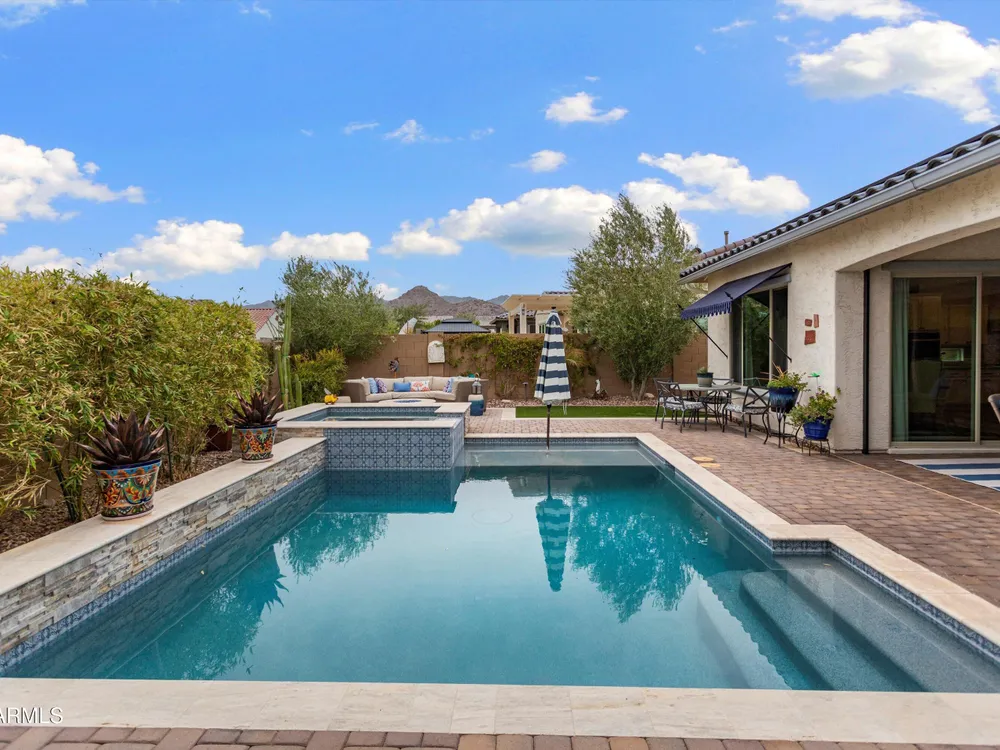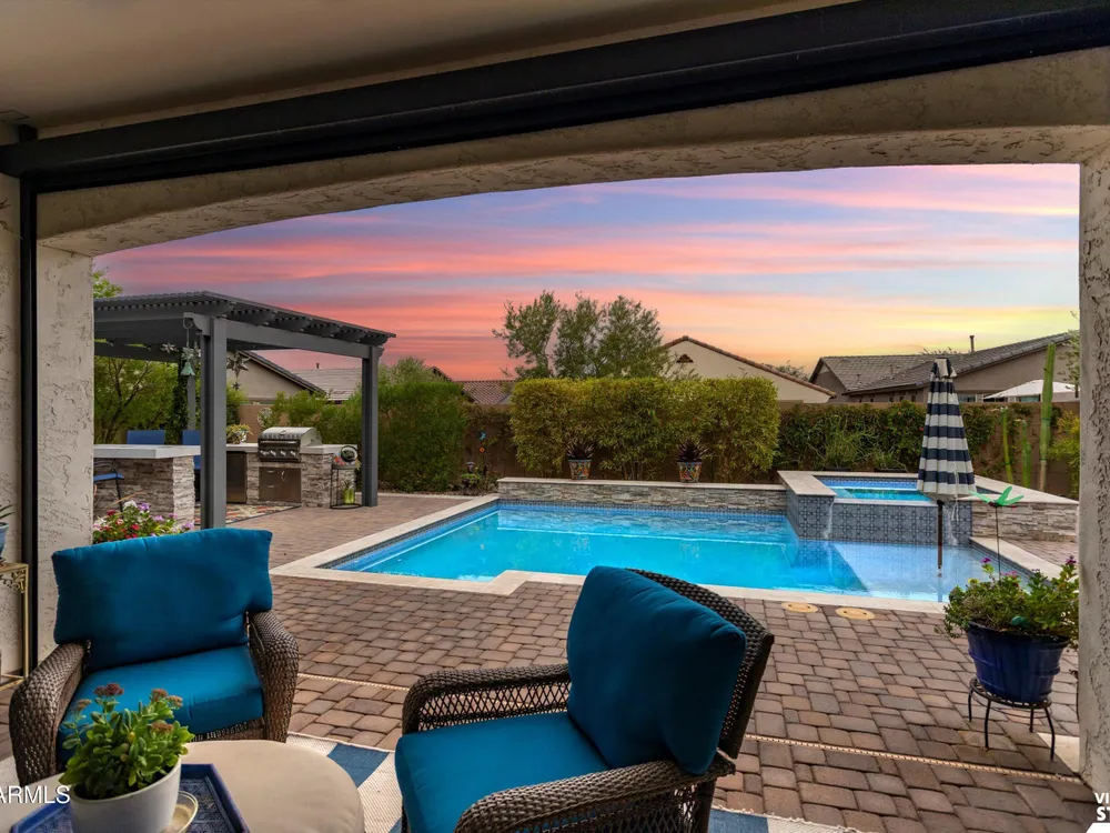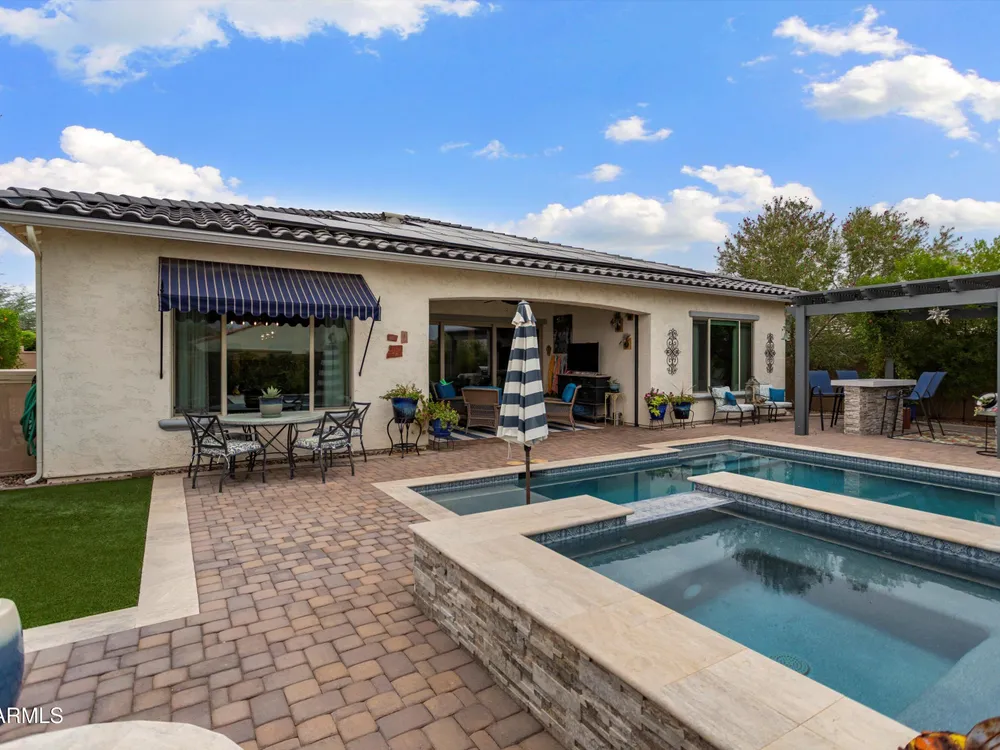 4 Car Garage! - Check // Solar - Check! // Beautiful Spa & Pool: Check!! This SHIRE plan by Taylor Morrison checks all of the boxes and then some! With $300,000 in options/upgrades/updates, this home brings together thoughtful design, open space, and natural light in a way that feels luxurious, but cozy. Having 3 bedrooms and 2,870 sqft of interior space, it's great for company. However, it's also hard to be bored when it's just you whether you're lounging by your pool, relaxing in your spa, walking around the Victory at Verrado 26 miles of walking trails, or playing at one of Victory's 8 pickleball courts. Built in 2020 and well maintained, this is the perfect blend of modern ease and community charm. Don't just live - live well.