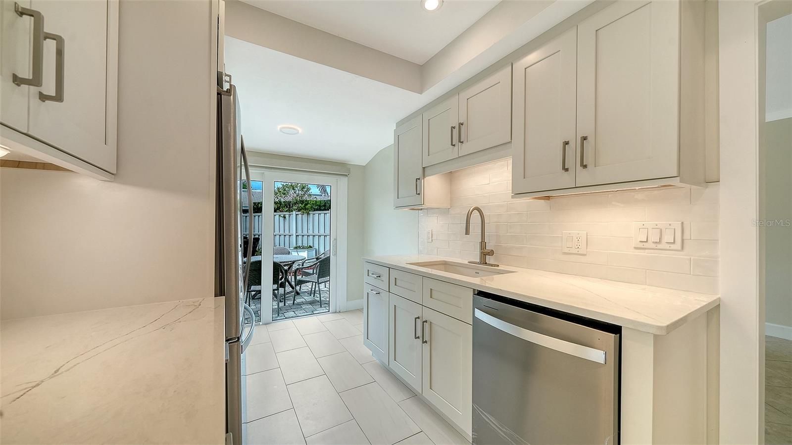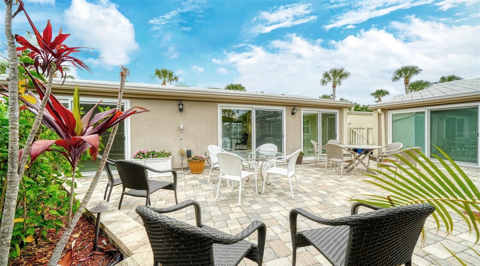 Welcome to your coastal retreat in the form of this secluded 2 bed/2 bath freestanding villa with one car garage in the premiere GULF FRONT property of Whispering Sands! This surprisingly large, 1,462 square foot property has been UPDATED in 2025 with fresh paint, new crown molding & baseboards, and new kitchen and baths. The exceptionally spacious living room provides space for multiple seating groups, while a wall of floor to ceiling sliders with southern exposure provides an abundance of natural light. Meal prep is easy in your NEW bright kitchen featuring white cabinetry & subway tile backsplash, granite counters, stainless Whirlpool appliances, recessed lighting, and luxury vinyl plank flooring. Sets of new hurricane impact sliders conveniently open from the kitchen – as well as from your dining room and 2nd bedroom – into the large brick paver patio which offers valuable private outdoor space for sunny relaxation and effortless entertaining. The seller is willing to re-install the fence between villas for added privacy. Both newly carpeted bedrooms feature extended living space to accommodate a small seating group, desk, or exercise equipment. The bathrooms have been refreshed with new granite countertops, cabinets, vanities & fixtures. The dining room, primary bedroom, and patio FURNISHINGS are being offered with the sale of the property. Community enhancements include scheduled exterior pressure washing and villa painting in January 2026, with beautiful new landscaping to follow. Whispering Sands is a premiere 55+ condominium complex ideally located within walking distance to the colorful boutiques and myriad of dining options of Siesta Key Village, offering 800’ of PRIVATE beach, two heated pools, beachside Tiki Hut, gas grills, canoe/kayak storage, and onsite manager and maintenance staff. The main clubhouse is in the beginning stages of being completely remodeled and when completed will include fitness rooms, catering kitchen, and an elegant and comfortable space for social gatherings. Your coastal retreat awaits!