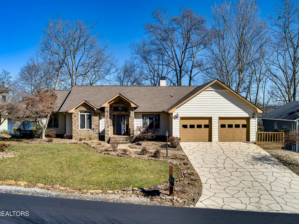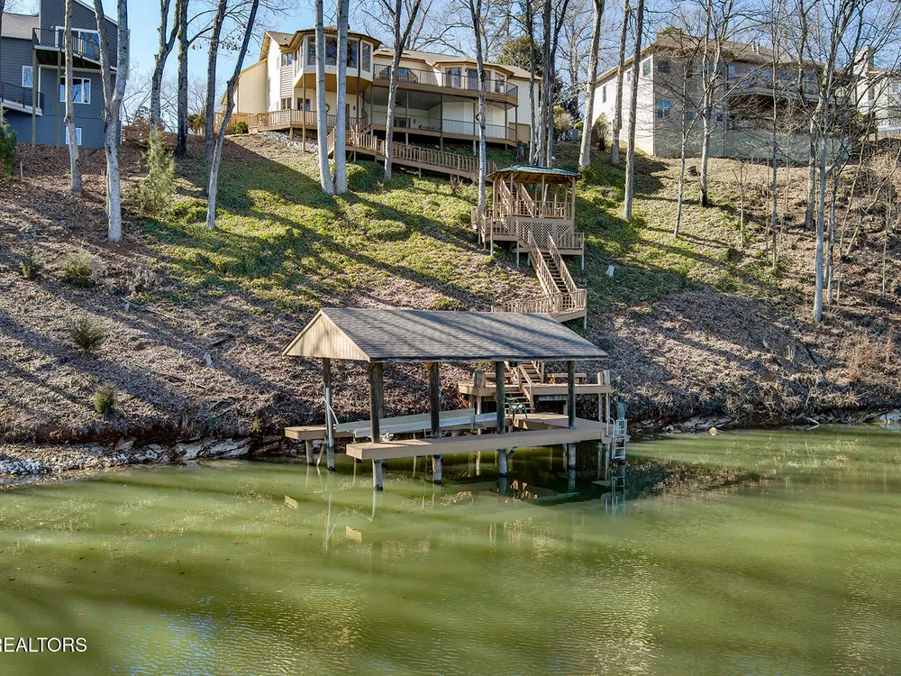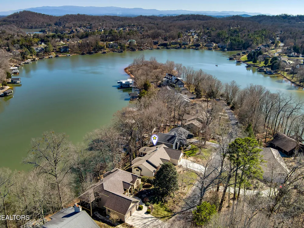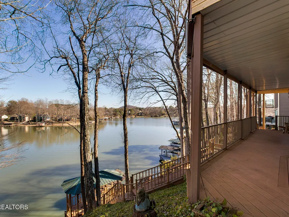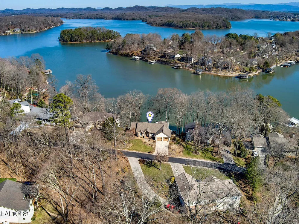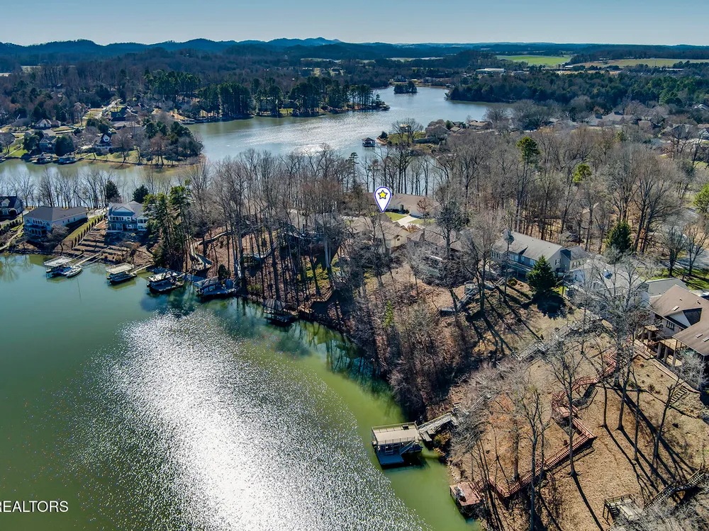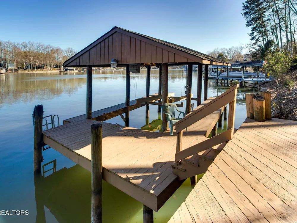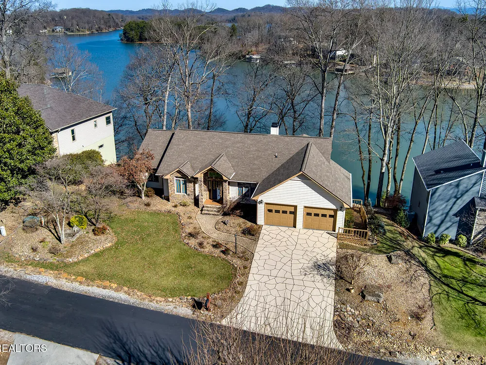 Discover a warm custom-built lake home in Tellico Village, boasting year-round deep water access, a lift, and a boat dock. The exterior features stack-stone and cedar siding, complemented by two levels of Trex decking and a picturesque stone walkway with steps leading to the entrance. Enjoy breathtaking sunrises from this east-facing residence. Inside, soaring cathedral ceilings grace the kitchen and living room, where a thoughtfully placed fireplace enhances the ambiance without obstructing the magnificent views. The kitchen offers scenic water vistas in multiple directions, granite countertops, and top-tier KitchenAid, Jet/Air, and Maytag appliances. The main level hosts a spacious master suite, a guest bedroom, and an office that can double as an additional bedroom. Hardwood floors flow through the kitchen, living room, dining room, entry, and hallway, while tray ceilings elevate the master bedroom's sophistication. The master bathroom features double sinks and a wheelchair-accessible shower, paired with a generous master closet. Step into the sunroom—a cozy haven heated by a gas stove and cooled by a fan—overlooking stunning views (note: this room is not included in the square footage). The oversized two-car garage provides ample storage. Downstairs, the lower level offers a spacious family room with a wet bar, a full bathroom, and a versatile all-purpose room previously used as a bedroom by the sellers. The home is equipped with an Aqua Clear water system, ensuring pristine water quality throughout. There is an irrigation system but it does not pull from the lake. A little TLC could make this your Forever Dream Lakefront home! Square Footage is approximate, buyers to verify.