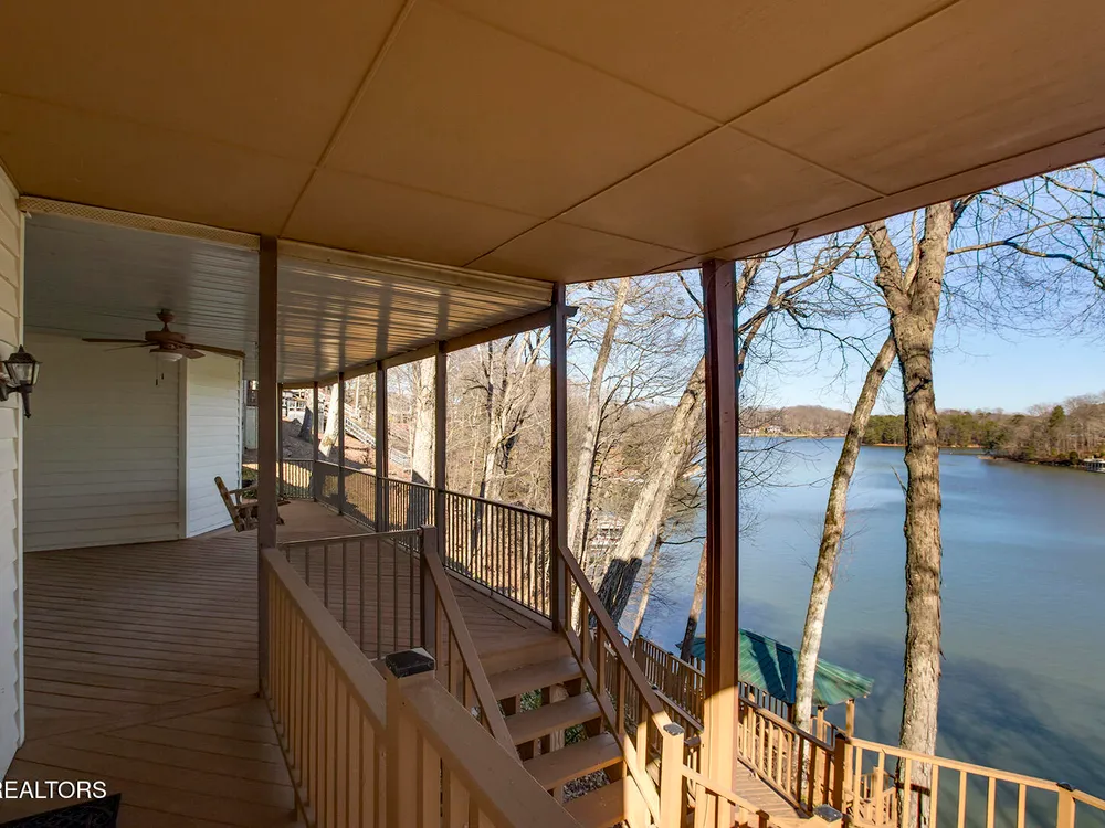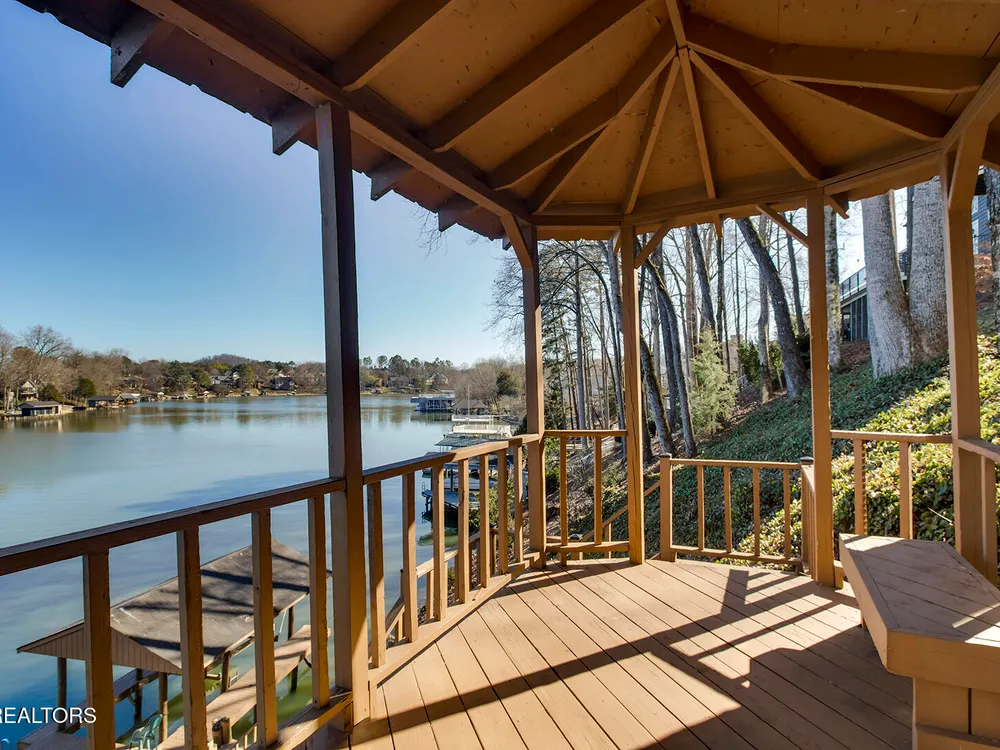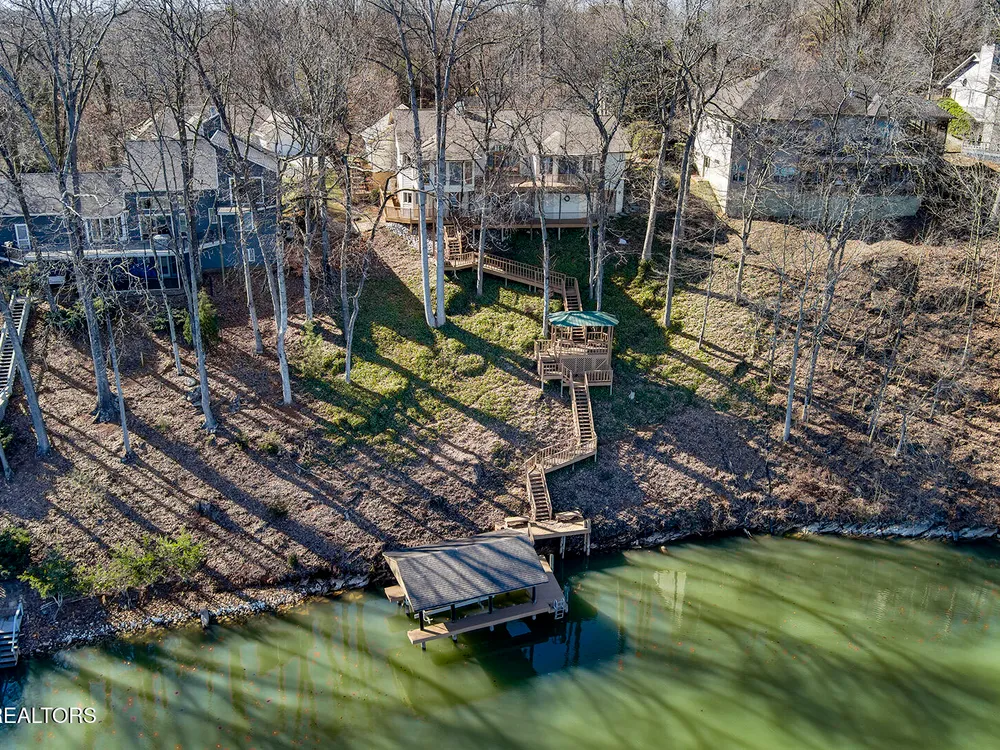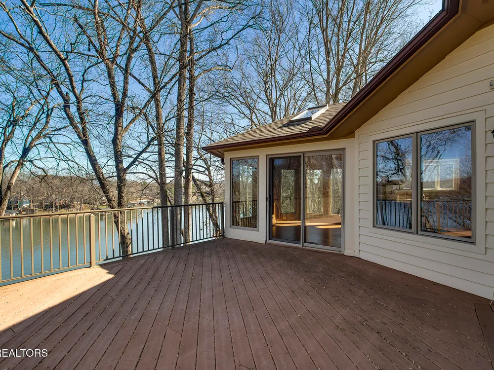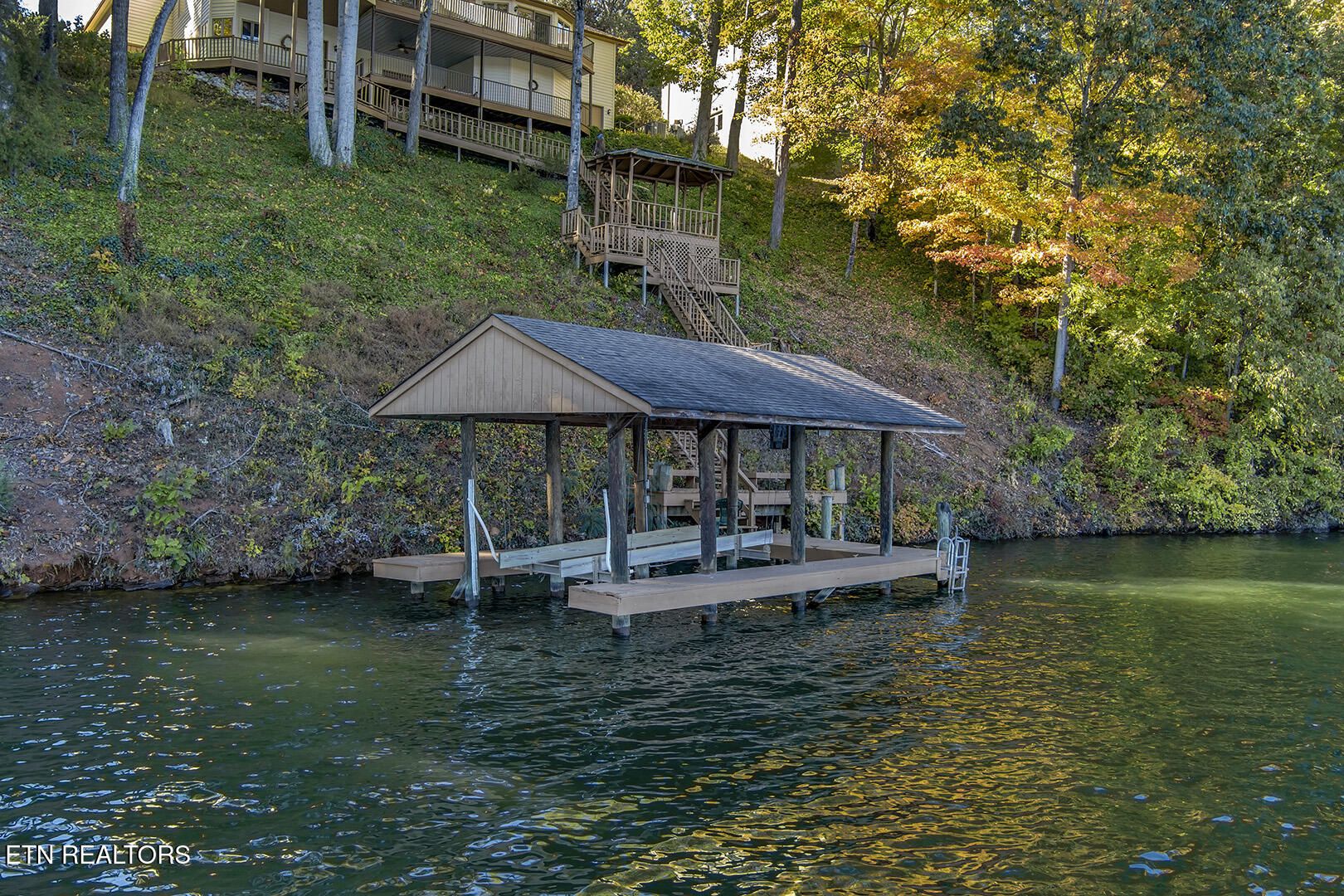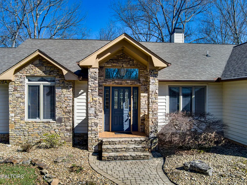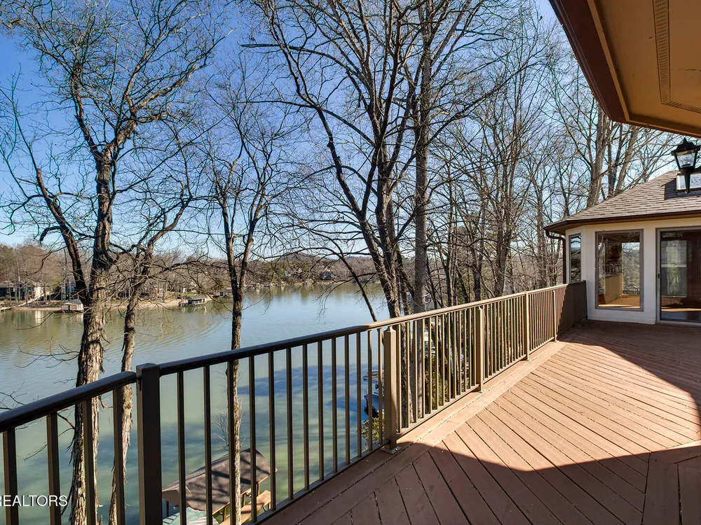 Discover a warm custom-built lake home in Tellico Village, boasting year-round deep water access, a lift, and a boat dock. The exterior features stack-stone and cedar siding, complemented by two levels of Trex decking and a picturesque stone walkway with steps leading to the entrance. Enjoy breathtaking sunrises from this east-facing residence. Inside, soaring cathedral ceilings grace the kitchen and living room, where a thoughtfully placed fireplace enhances the ambiance without obstructing the magnificent views. The kitchen offers scenic water vistas in multiple directions, granite countertops, and top-tier KitchenAid, Jet/Air, and Maytag appliances. The main level hosts a spacious master suite, a guest bedroom, and an office that can double as an additional bedroom. Hardwood floors flow through the kitchen, living room, dining room, entry, and hallway, while tray ceilings elevate the master bedroom's sophistication. The master bathroom features double sinks and a wheelchair-accessible shower, paired with a generous master closet. Step into the sunroom—a cozy haven heated by a gas stove and cooled by a fan—overlooking stunning views (note: this room is not included in the square footage). The oversized two-car garage provides ample storage. Downstairs, the lower level offers a spacious family room with a wet bar, a full bathroom, and a versatile all-purpose room previously used as a bedroom by the sellers. The home is equipped with an Aqua Clear water system, ensuring pristine water quality throughout. There is an irrigation system but it does not pull from the lake. A little TLC could make this your Forever Dream Lakefront home! Square Footage is approximate, buyers to verify.