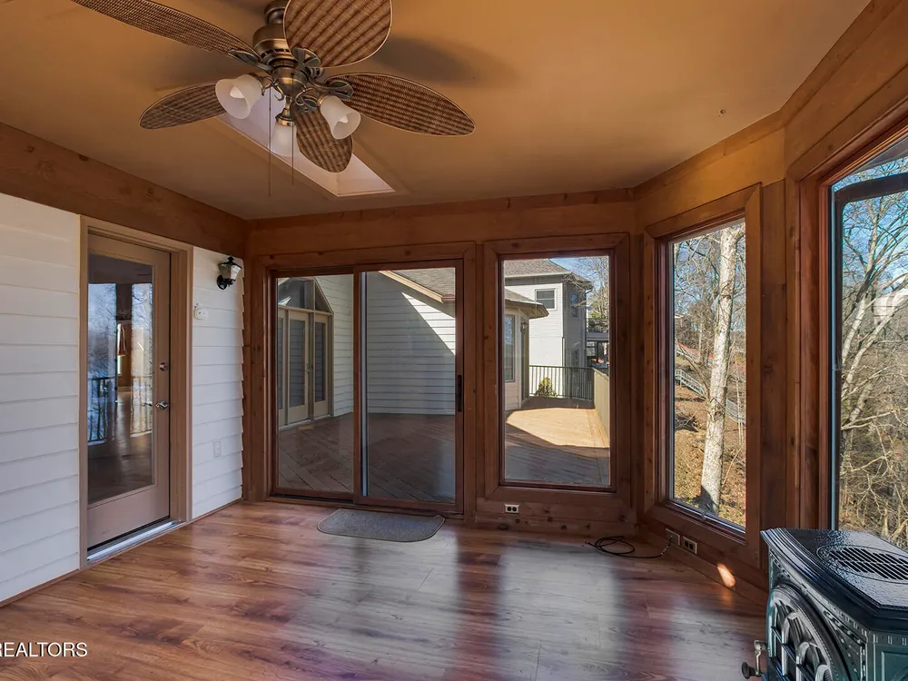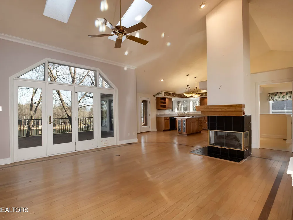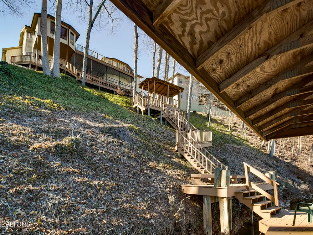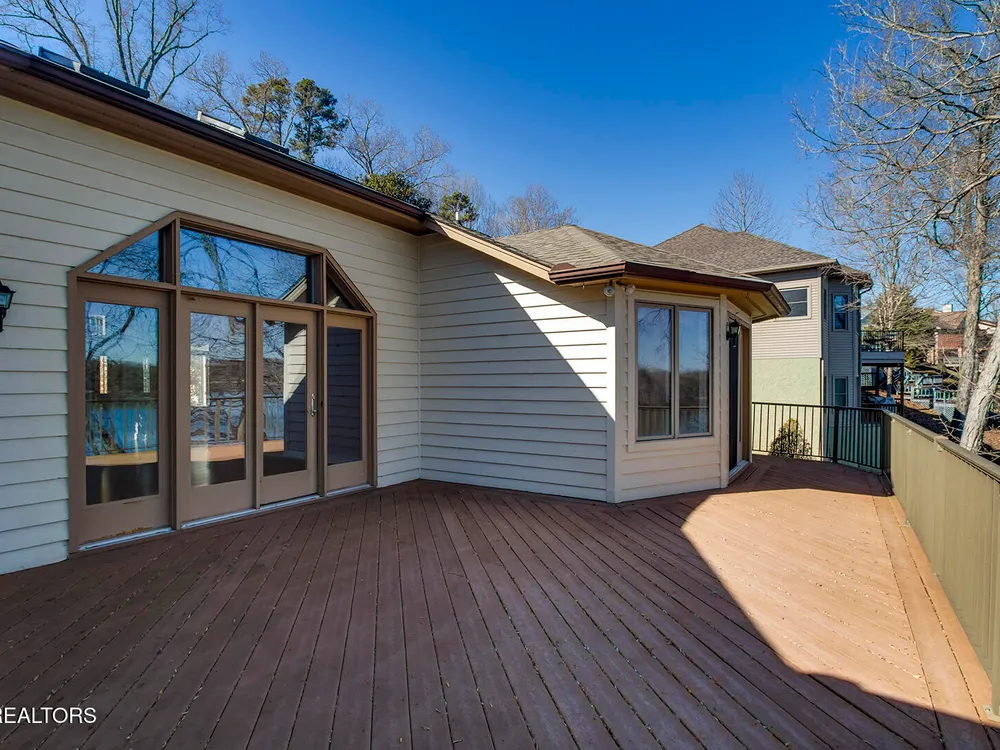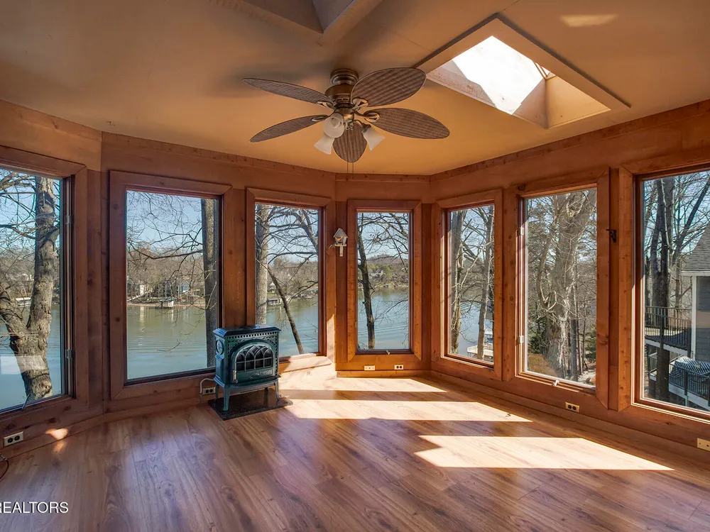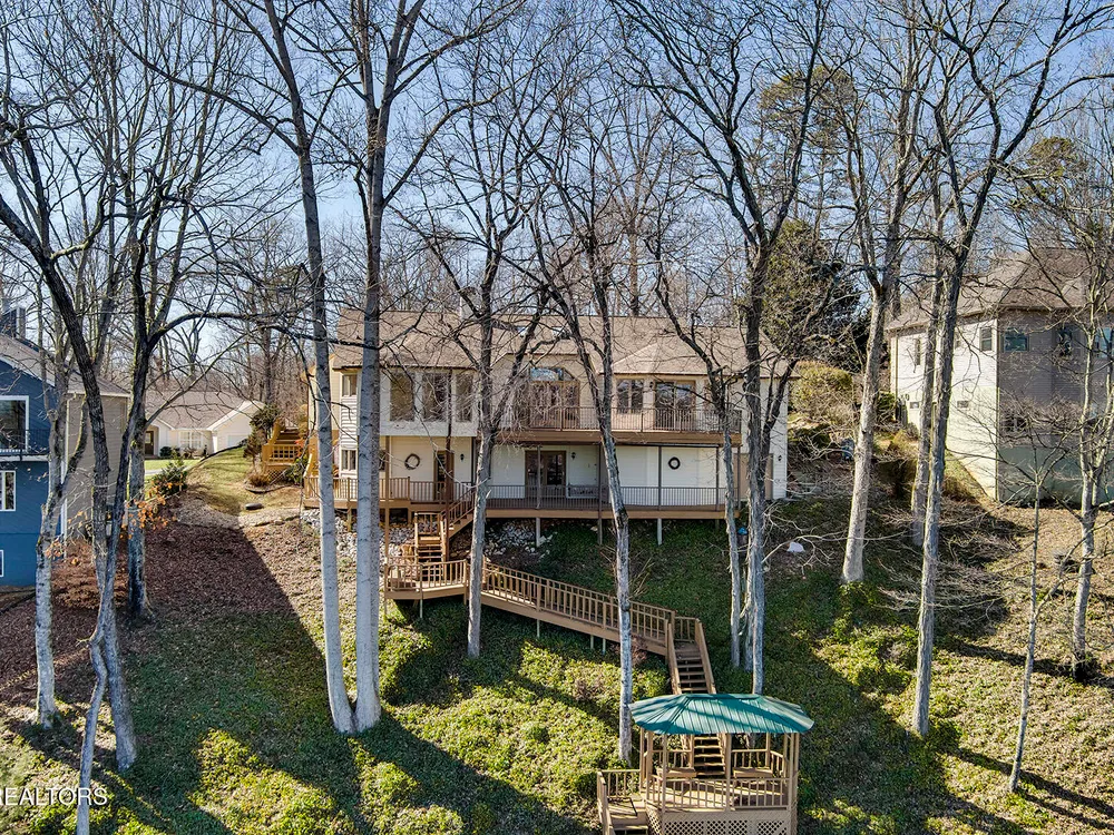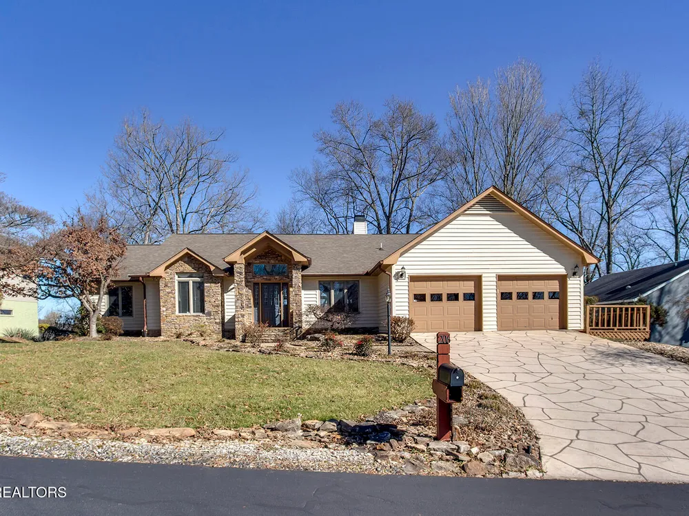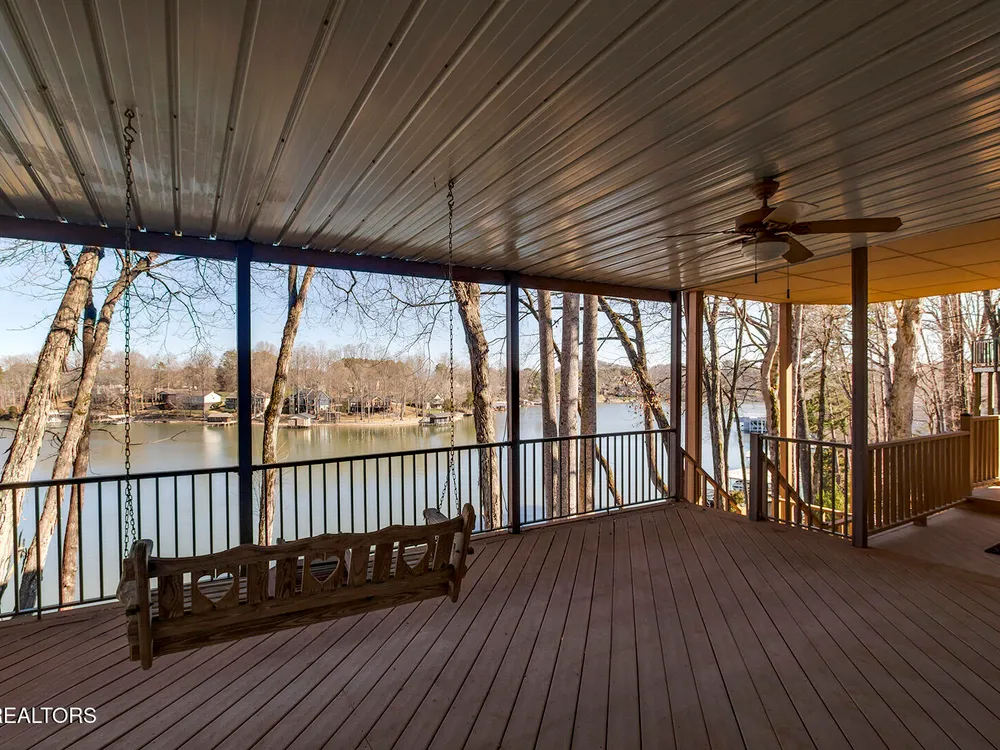 Discover a warm custom-built lake home in Tellico Village, boasting year-round deep water access, a lift, and a boat dock. The exterior features stack-stone and cedar siding, complemented by two levels of Trex decking and a picturesque stone walkway with steps leading to the entrance. Enjoy breathtaking sunrises from this east-facing residence. Inside, soaring cathedral ceilings grace the kitchen and living room, where a thoughtfully placed fireplace enhances the ambiance without obstructing the magnificent views. The kitchen offers scenic water vistas in multiple directions, granite countertops, and top-tier KitchenAid, Jet/Air, and Maytag appliances. The main level hosts a spacious master suite, a guest bedroom, and an office that can double as an additional bedroom. Hardwood floors flow through the kitchen, living room, dining room, entry, and hallway, while tray ceilings elevate the master bedroom's sophistication. The master bathroom features double sinks and a wheelchair-accessible shower, paired with a generous master closet. Step into the sunroom—a cozy haven heated by a gas stove and cooled by a fan—overlooking stunning views (note: this room is not included in the square footage). The oversized two-car garage provides ample storage. Downstairs, the lower level offers a spacious family room with a wet bar, a full bathroom, and a versatile all-purpose room previously used as a bedroom by the sellers. The home is equipped with an Aqua Clear water system, ensuring pristine water quality throughout. There is an irrigation system but it does not pull from the lake. A little TLC could make this your Forever Dream Lakefront home! Square Footage is approximate, buyers to verify.