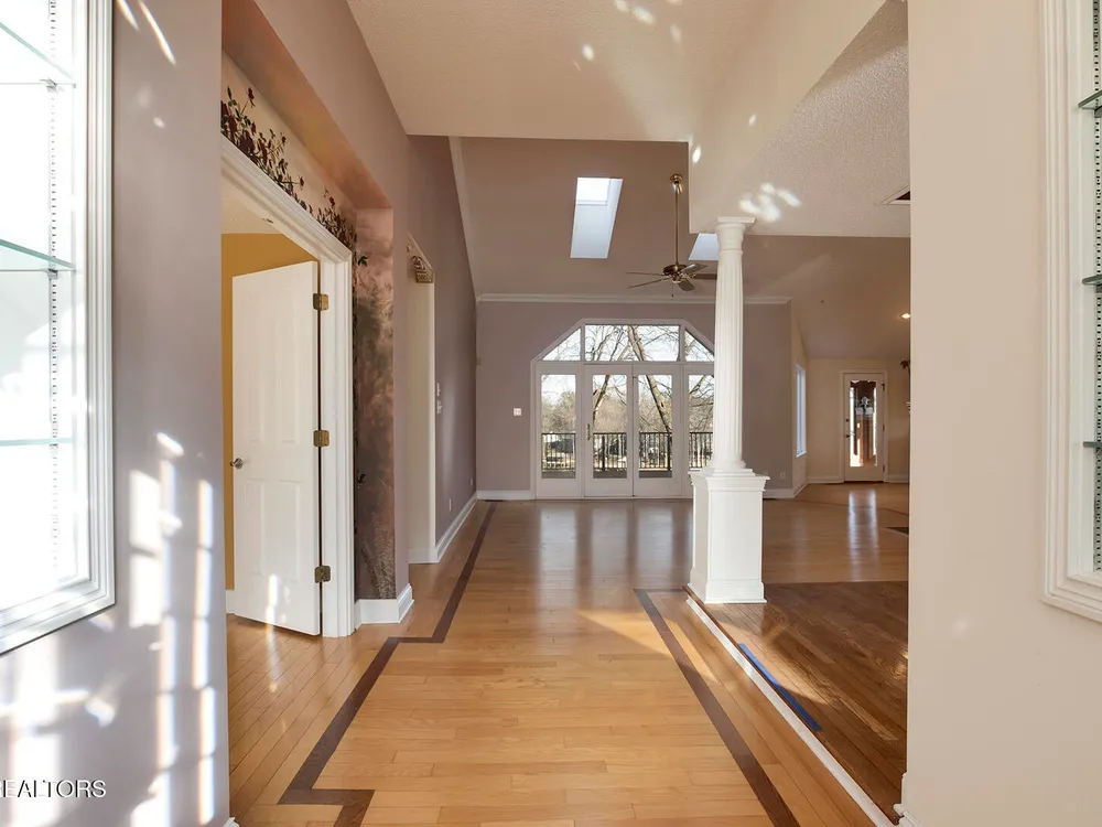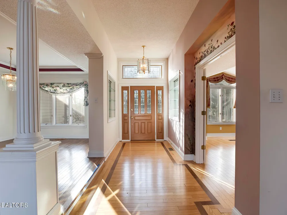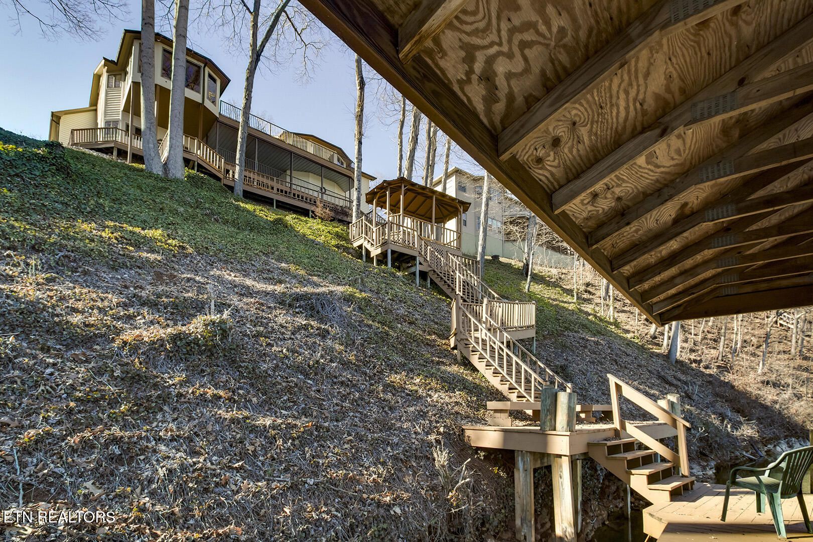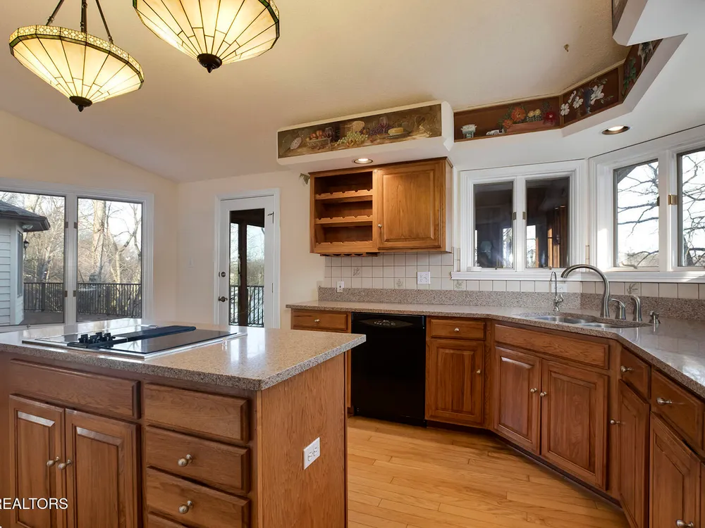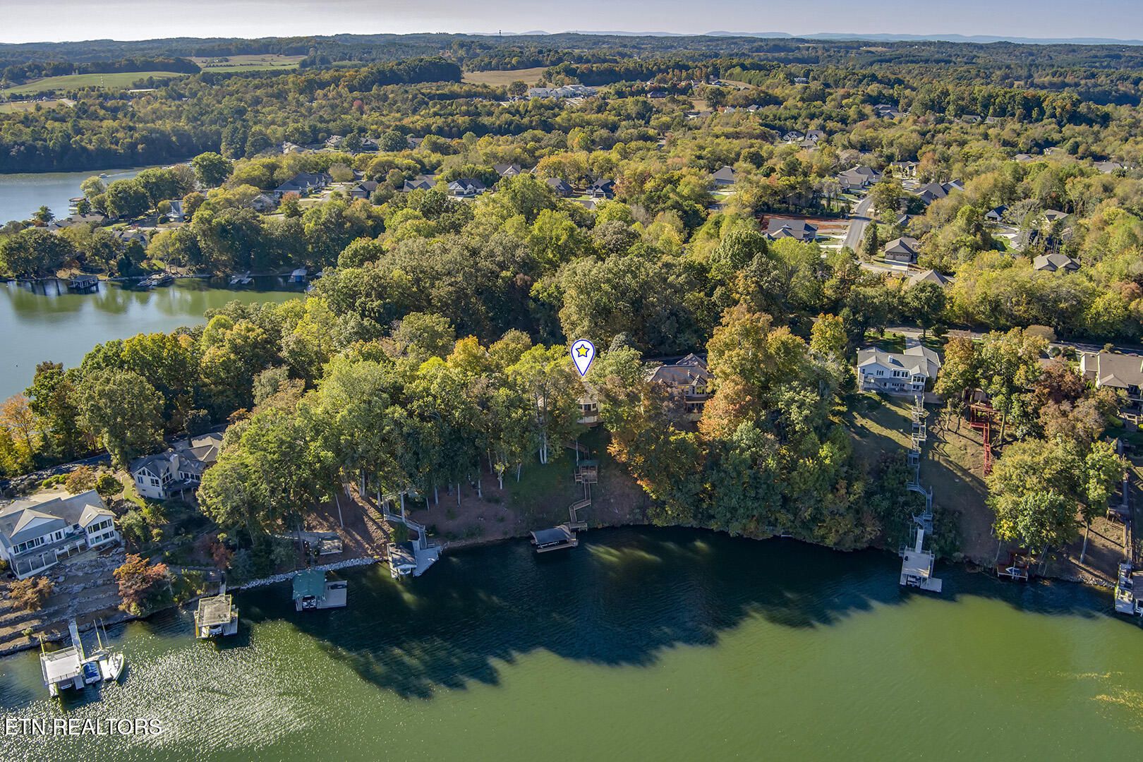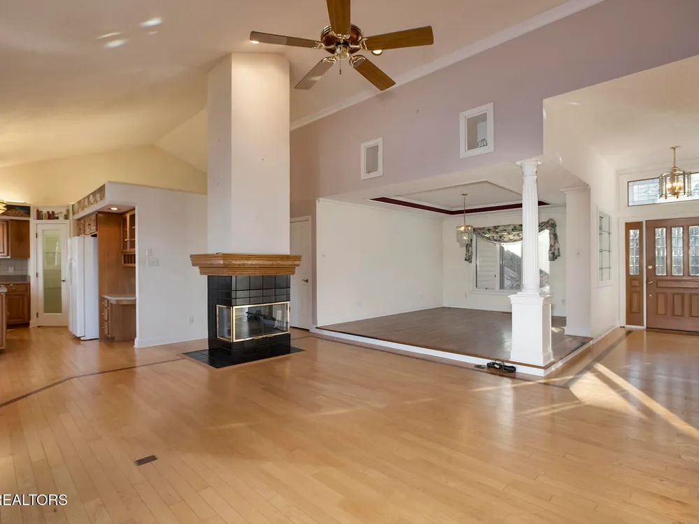 Discover a warm custom-built lake home in Tellico Village, boasting year-round deep water access, a lift, and a boat dock. The exterior features stack-stone and cedar siding, complemented by two levels of Trex decking and a picturesque stone walkway with steps leading to the entrance. Enjoy breathtaking sunrises from this east-facing residence. Inside, soaring cathedral ceilings grace the kitchen and living room, where a thoughtfully placed fireplace enhances the ambiance without obstructing the magnificent views. The kitchen offers scenic water vistas in multiple directions, granite countertops, and top-tier KitchenAid, Jet/Air, and Maytag appliances. The main level hosts a spacious master suite, a guest bedroom, and an office that can double as an additional bedroom. Hardwood floors flow through the kitchen, living room, dining room, entry, and hallway, while tray ceilings elevate the master bedroom's sophistication. The master bathroom features double sinks and a wheelchair-accessible shower, paired with a generous master closet. Step into the sunroom—a cozy haven heated by a gas stove and cooled by a fan—overlooking stunning views (note: this room is not included in the square footage). The oversized two-car garage provides ample storage. Downstairs, the lower level offers a spacious family room with a wet bar, a full bathroom, and a versatile all-purpose room previously used as a bedroom by the sellers. The home is equipped with an Aqua Clear water system, ensuring pristine water quality throughout. There is an irrigation system but it does not pull from the lake. A little TLC could make this your Forever Dream Lakefront home! Square Footage is approximate, buyers to verify.