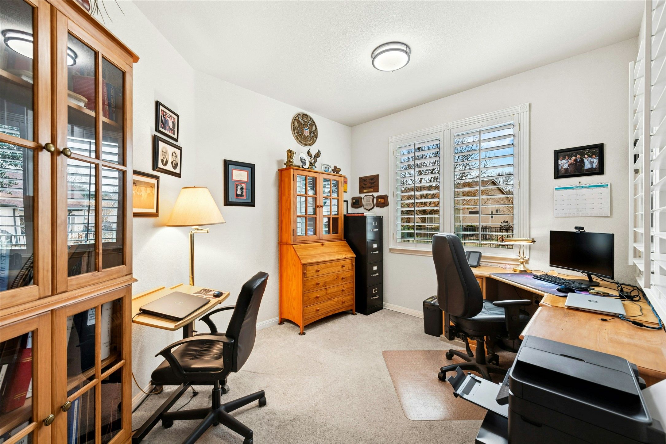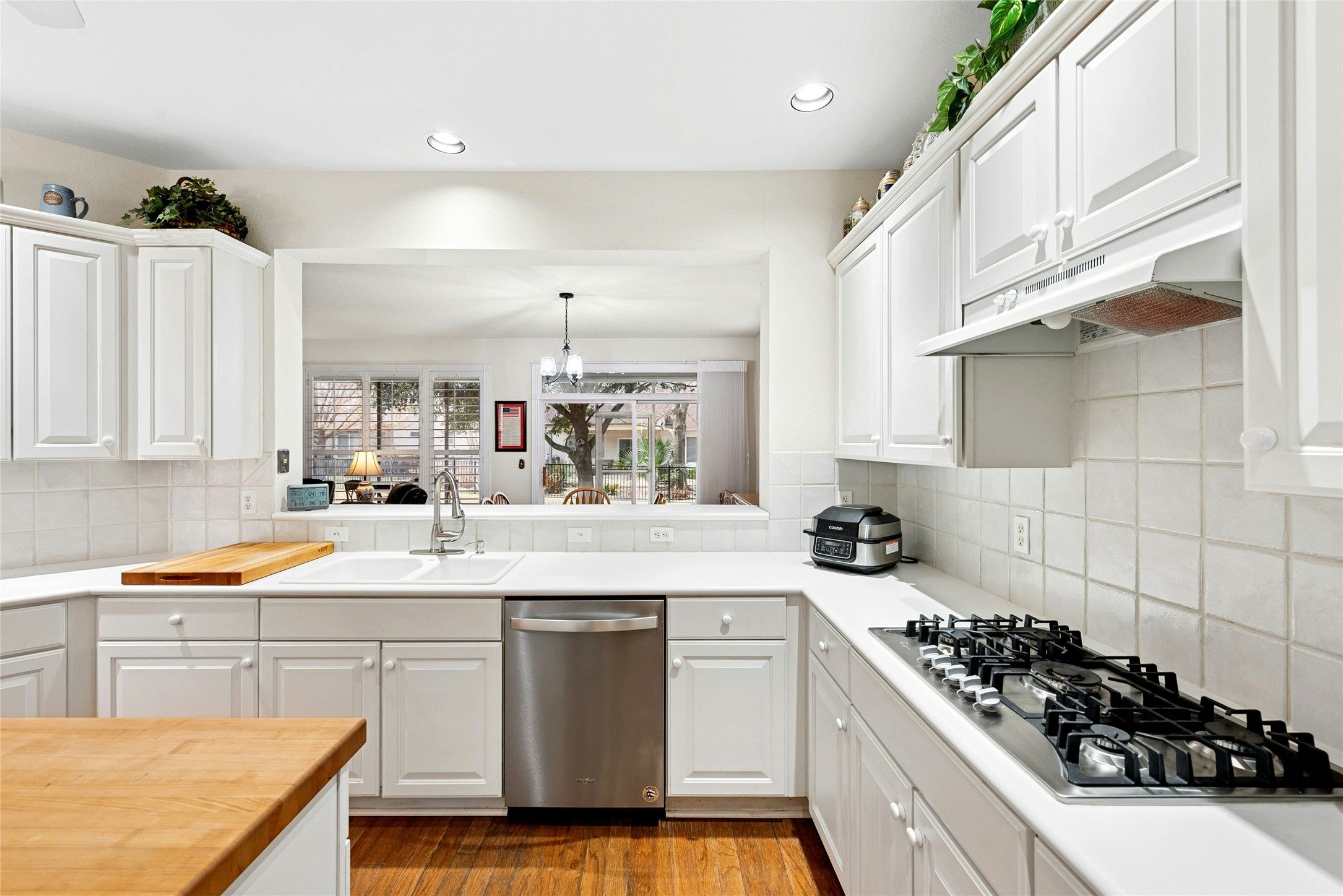 Ideally located in the heart of Sun City, this charming Del Webb Burnet floorplan offers a rare and desirable side-entry garage--an uncommon feature that sets this home apart. A generously sized driveway provides ample parking, making it easy to welcome family and friends. Inside, thoughtful touches shine, including custom built-in cabinetry in the laundry room that adds valuable and highly sought-after storage. With two comfortable bedrooms and a versatile flex room, the layout adapts beautifully to your lifestyle--whether you need a home office, a hobby space, or a quiet retreat. The kitchen is both functional and inviting, featuring a gas cooktop, built-in oven and microwave, a lovely island with butcher block countertop, and a bright breakfast area perfect for everyday living. Step outside to the screened-in rear patio, an ideal spot to unwind after a full day or savor a peaceful morning coffee. Just a short stroll from the Texas Drive Amenities and Social Center, this home places you moments from the vibrant hub of Sun City living--offering fitness, hobbies, entertainment, and relaxation at your doorstep. Key details: custom plantation shutters, custom cabinetry in the garage and laundry room, under-cabinet pull-outs, water heater-2 years, HVAC 3 years, new garage door opener, screened in patio 3-4 months, washer/dryer/fridge convey.