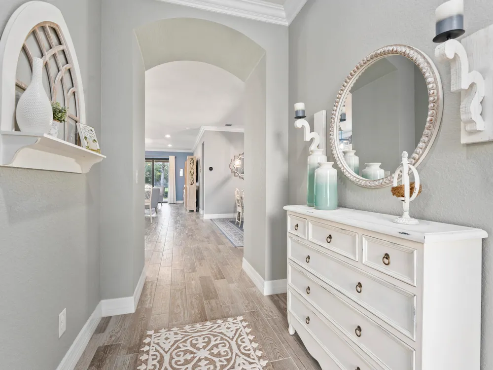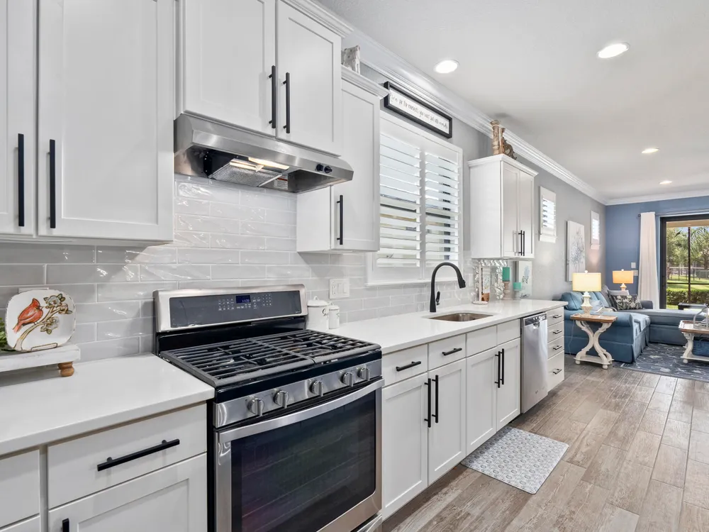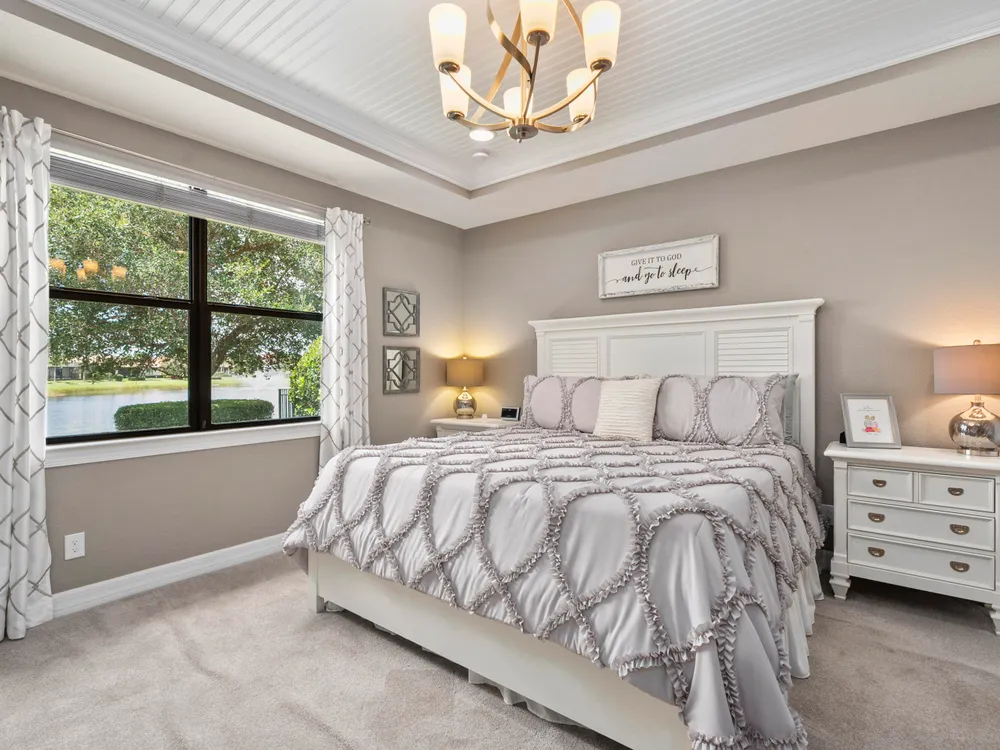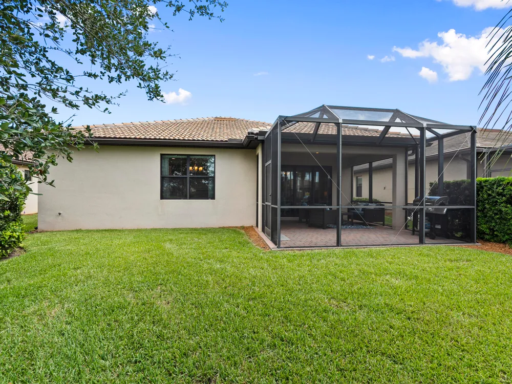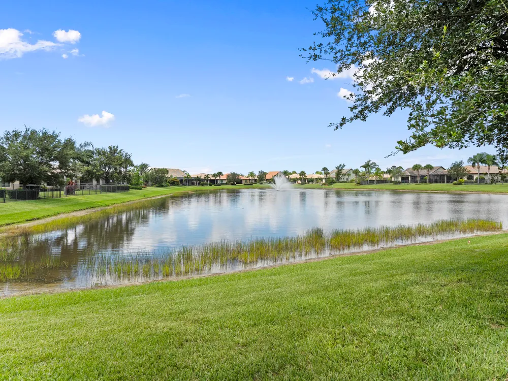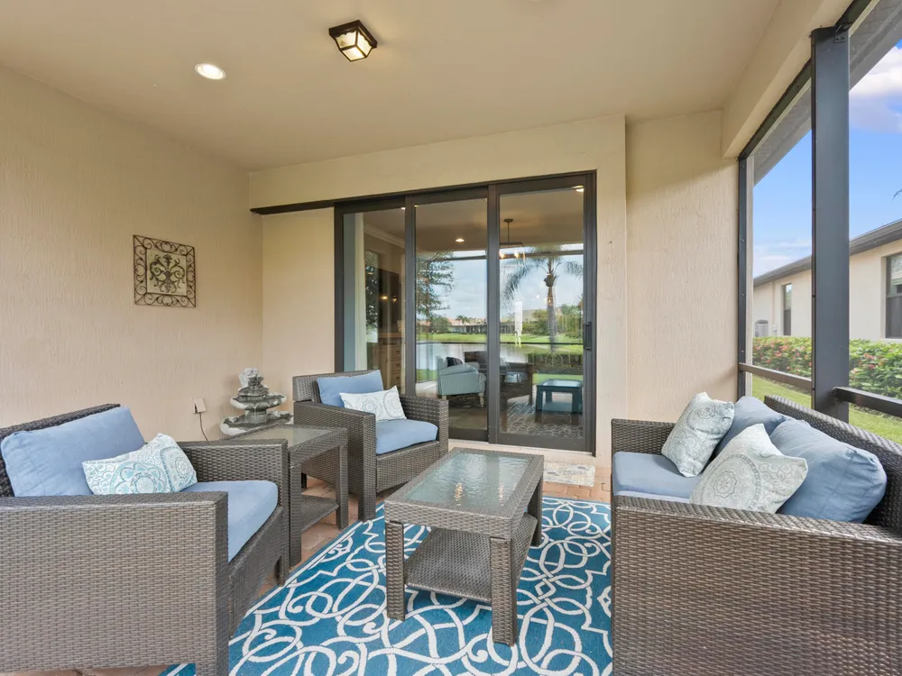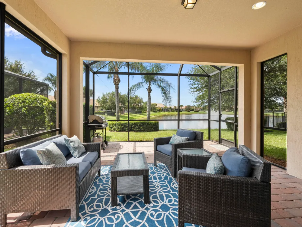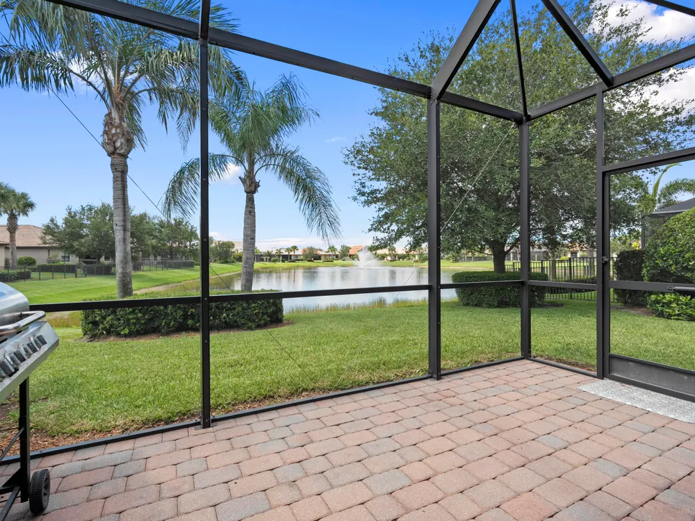 Lakefront CBS 3Bed +office 2Bath 2Car Extended Garage in Veranda Gardens. Impact Glass windows & Doors lead to extended screen porch. Shaker Kitchen cabinets with Quartz counters, spacious island breakfast bar, SS appliances w/gas range. Interior options include 8' Glass front door, 9' High ceilings, crown molding, ceramic Tile Floors & carpet in bedrooms, raised panel doors, high hat & pendant lighting. Master Suite with tray ceiling featuring beadboard & crown molding, large walk-in closet w/built in cabinets. Master bath has Quartz counters with dual sinks, glass enclosed shower. Clubhouse amenities include Heated resort style pool, Hot Tub, Gym, tennis, playground, community room, catering kitchen, indoor & outdoor bar, fire pit, BBQ grill, bocce ball & dog park. youtu.be/dVmLKPAy72Q