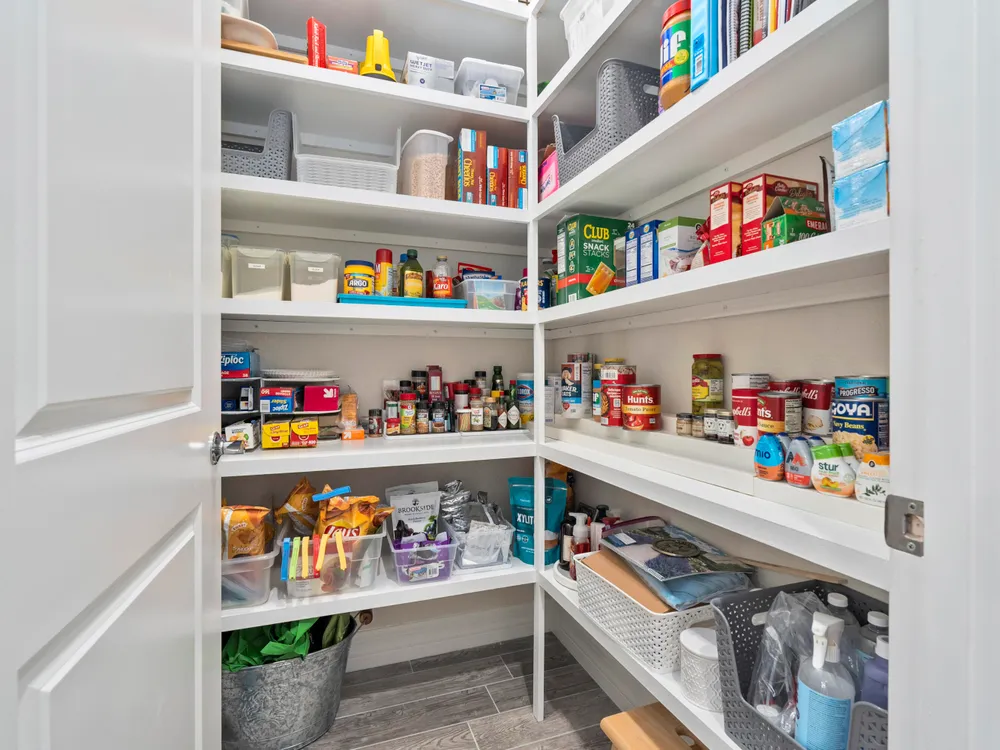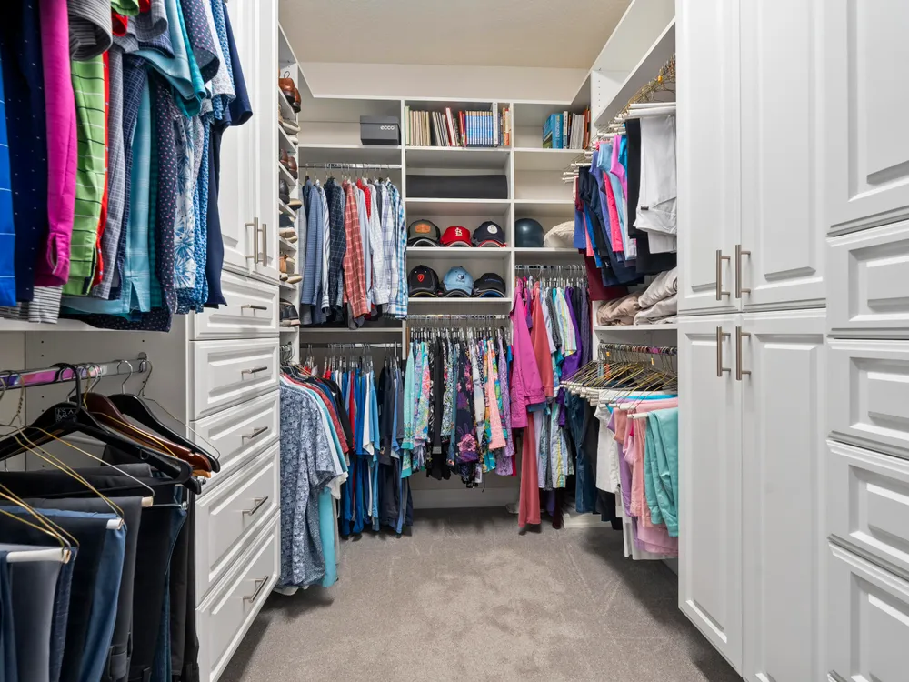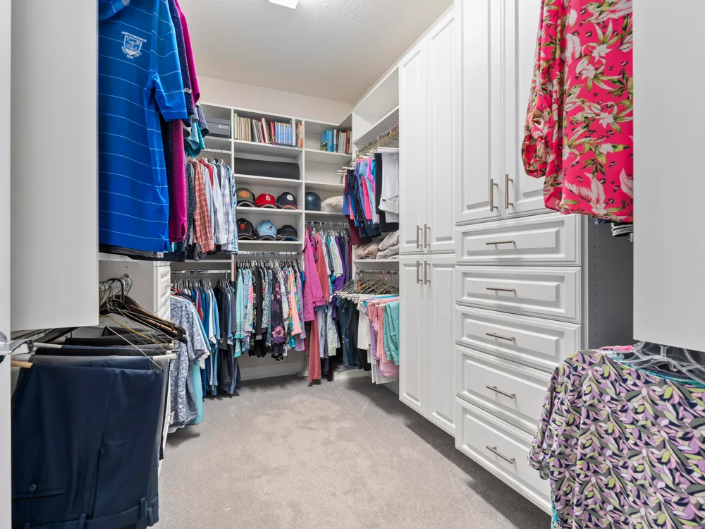 - Built-in Shelving, Closet Cabinetry, Cathedral Ceiling(s), Entry Level Living Area, Entrance Foyer, Kitchen Island, Pantry, High Ceilings, Walk-In Closet(s), Attic, Converted Bedroom, Home Office, Great Room, Dual Sinks, Primary Downstairs, Separate Shower