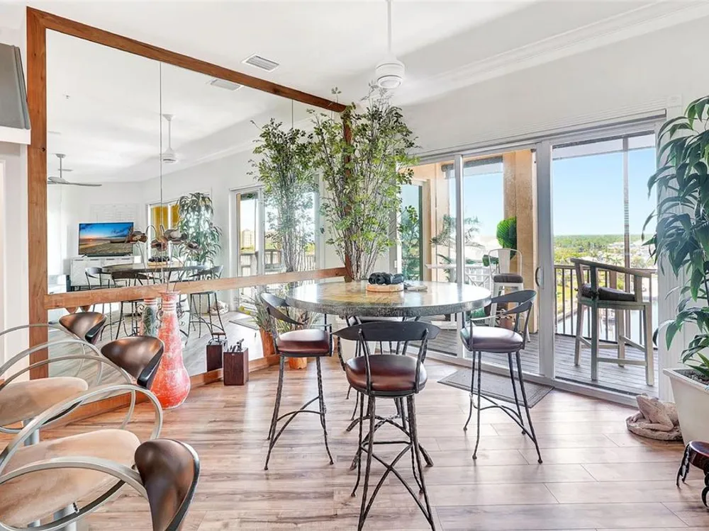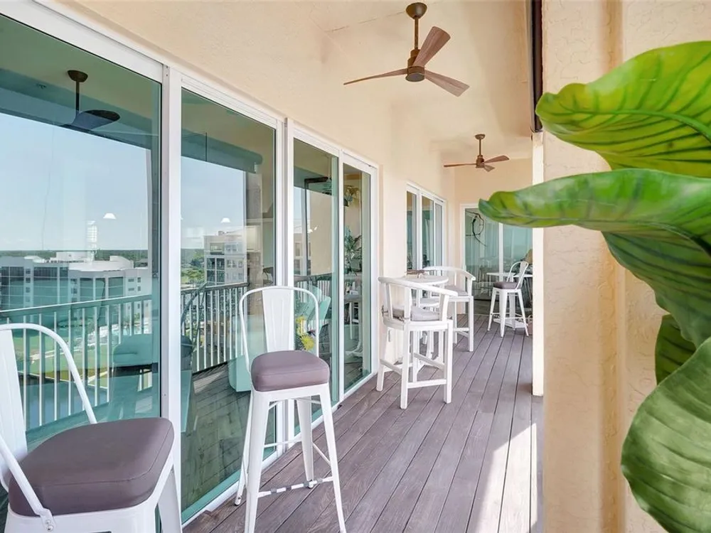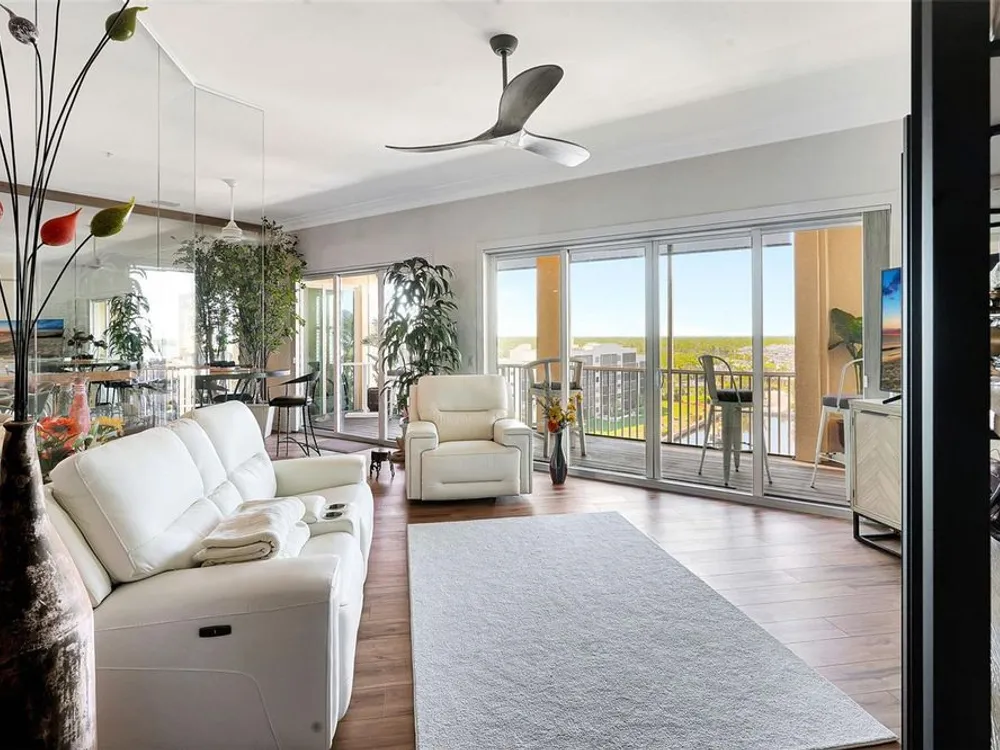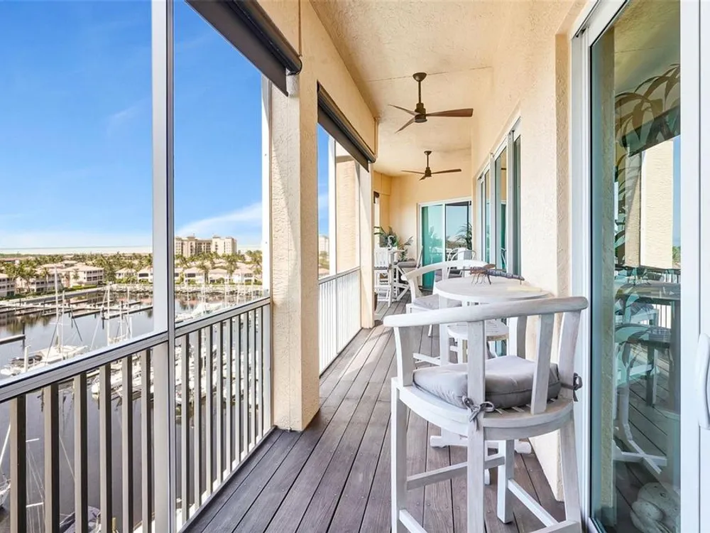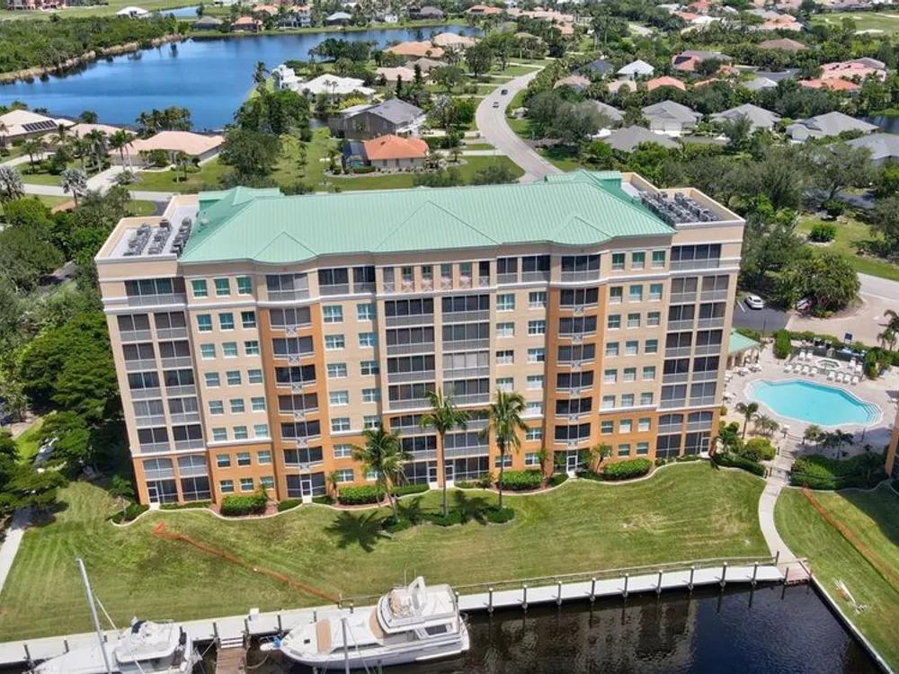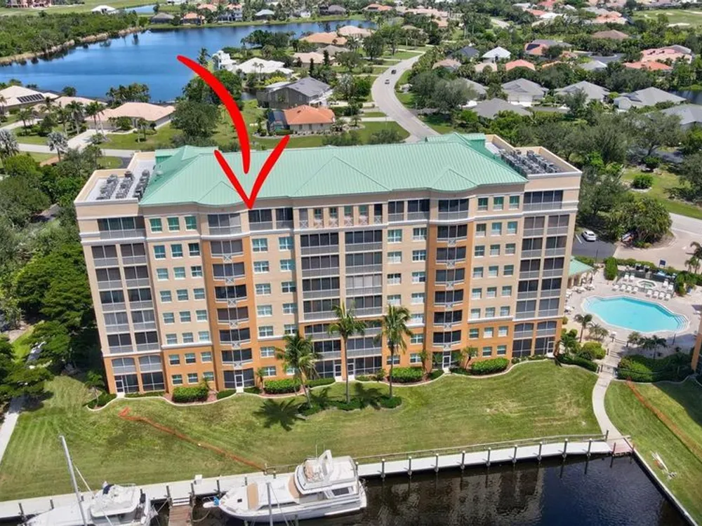 Indulge in the ultimate coastal lifestyle with this exquisite penthouse residence in Harbor Towers at Burnt Store Marina. Perfectly perched on the top floor, this rare gem offers over 2,000 sq. ft. of elegantly reimagined living space, featuring 3 bedrooms, 2 baths, and two covered parking spaces. Every inch of this home has been thoughtfully renovated, showcasing custom finishes, spa-inspired bathrooms, designer lighting, and California Closets for effortless organization. Walls of windows and a private screened lanai, with Brazilian Hardwood flooring, frame the sweeping million-dollar views of Charlotte Harbor and the marina, creating a breathtaking backdrop for everyday living and entertaining. The open-concept design highlights a chef’s kitchen with stone countertops and stylish cabinetry, seamlessly flowing into the spacious dining and living areas. The primary suite is a serene retreat with a luxurious en-suite bath, dual vanities, oversized walk-in shower, and custom closet systems that combine beauty and function. Set within the exclusive gated Burnt Store Marina community, residents enjoy world-class amenities including deep-water boating, a 27-hole golf course, tennis, fitness, waterfront dining, and a vibrant social scene. This is truly a must-see penthouse that captures the essence of luxury waterfront living—where every detail is elevated.