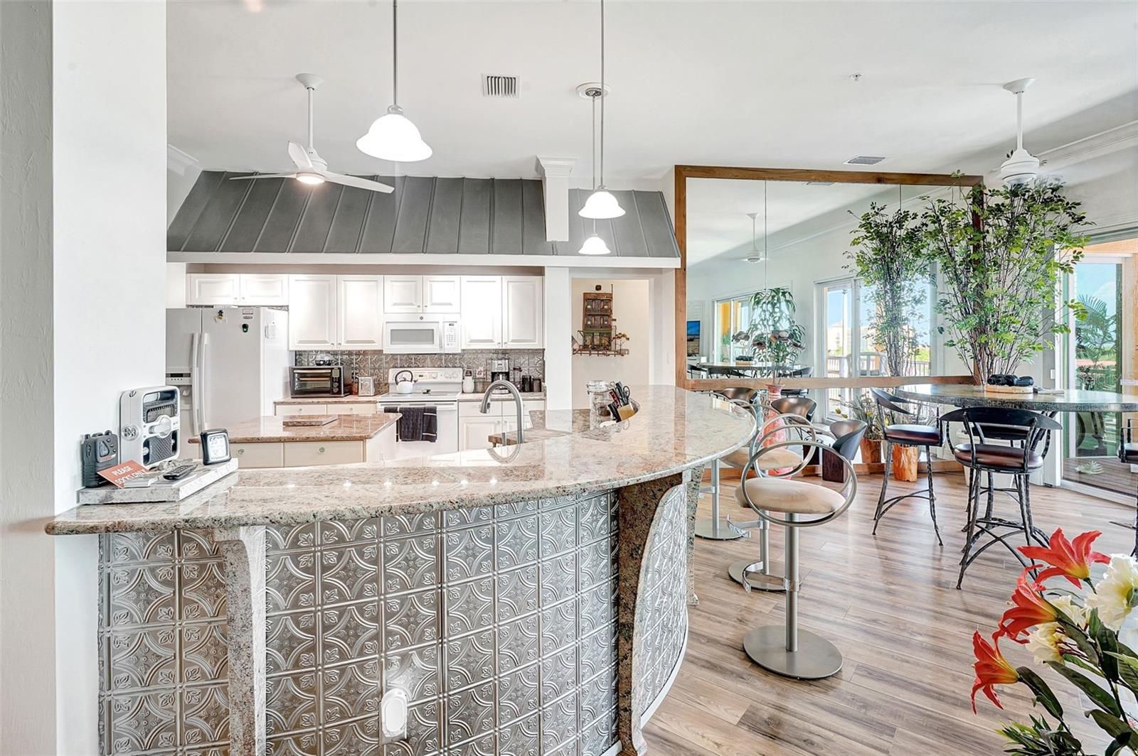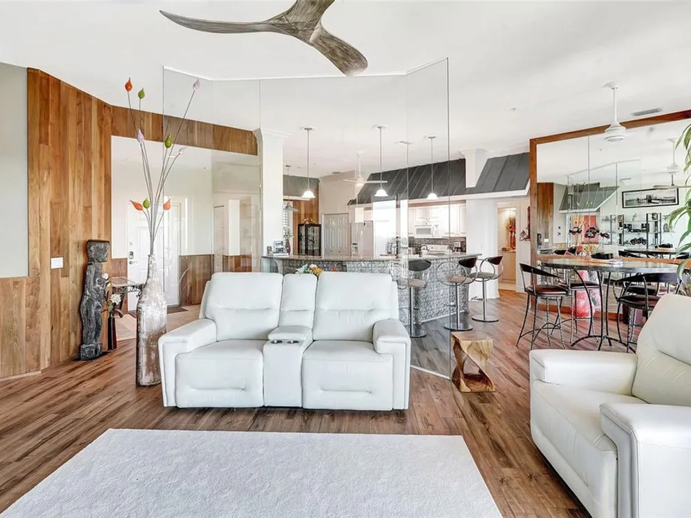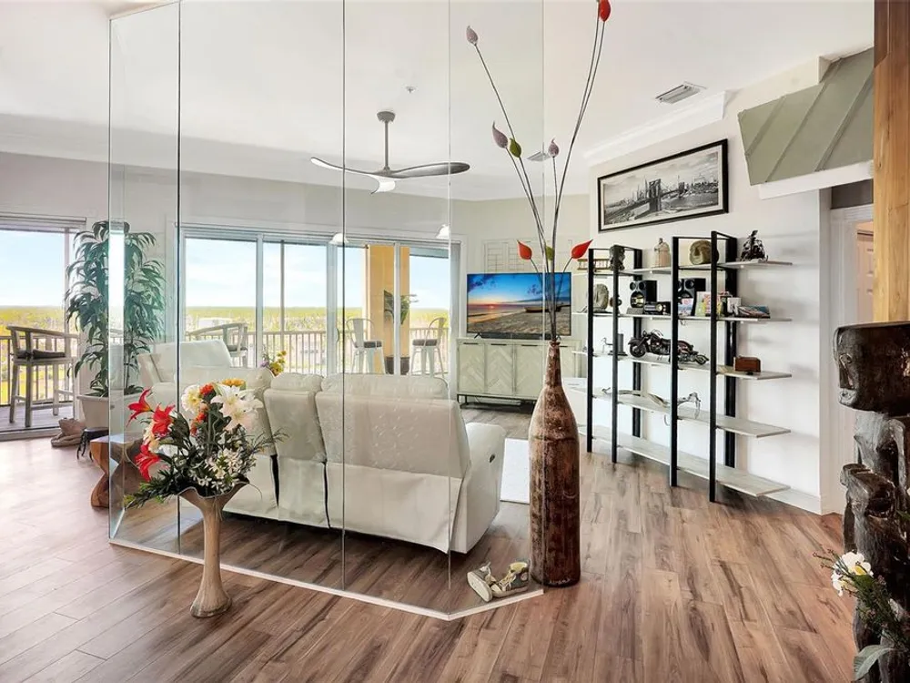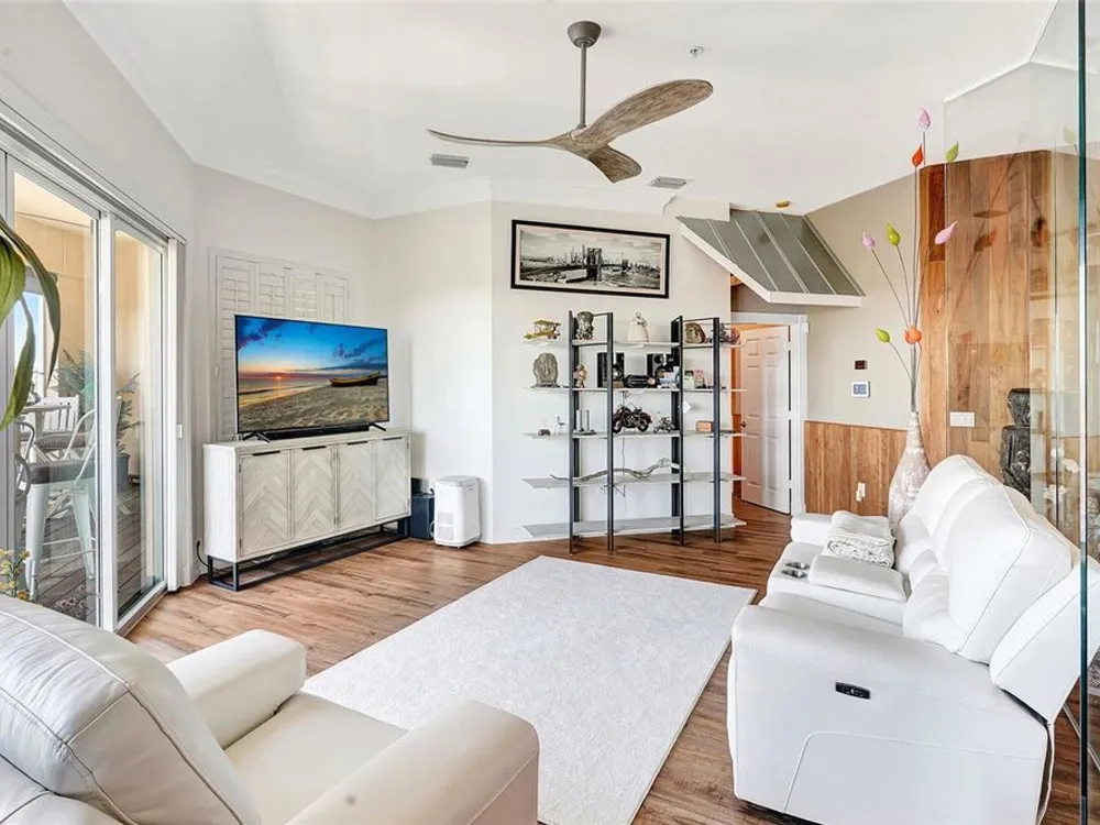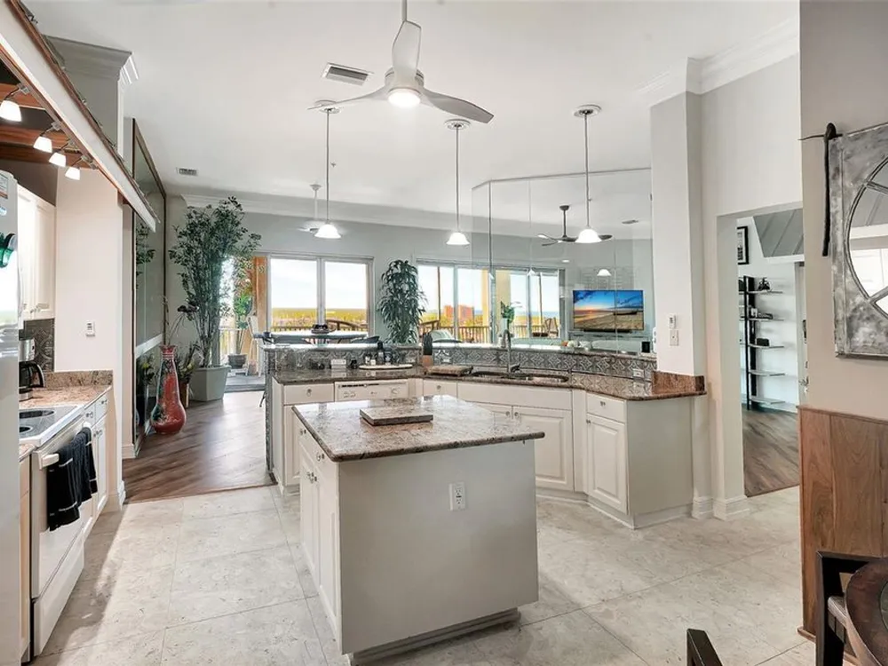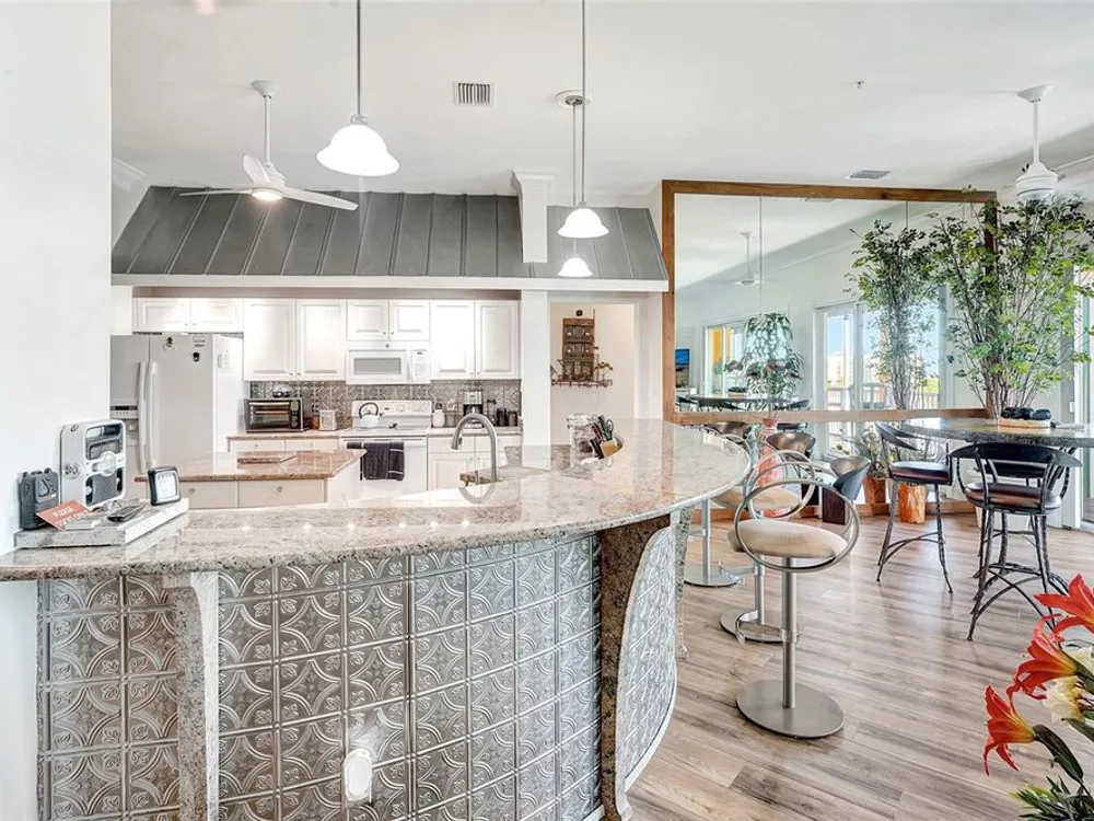 Indulge in the ultimate coastal lifestyle with this exquisite penthouse residence in Harbor Towers at Burnt Store Marina. Perfectly perched on the top floor, this rare gem offers over 2,000 sq. ft. of elegantly reimagined living space, featuring 3 bedrooms, 2 baths, and two covered parking spaces. Every inch of this home has been thoughtfully renovated, showcasing custom finishes, spa-inspired bathrooms, designer lighting, and California Closets for effortless organization. Walls of windows and a private screened lanai, with Brazilian Hardwood flooring, frame the sweeping million-dollar views of Charlotte Harbor and the marina, creating a breathtaking backdrop for everyday living and entertaining. The open-concept design highlights a chef’s kitchen with stone countertops and stylish cabinetry, seamlessly flowing into the spacious dining and living areas. The primary suite is a serene retreat with a luxurious en-suite bath, dual vanities, oversized walk-in shower, and custom closet systems that combine beauty and function. Set within the exclusive gated Burnt Store Marina community, residents enjoy world-class amenities including deep-water boating, a 27-hole golf course, tennis, fitness, waterfront dining, and a vibrant social scene. This is truly a must-see penthouse that captures the essence of luxury waterfront living—where every detail is elevated.
