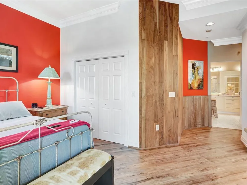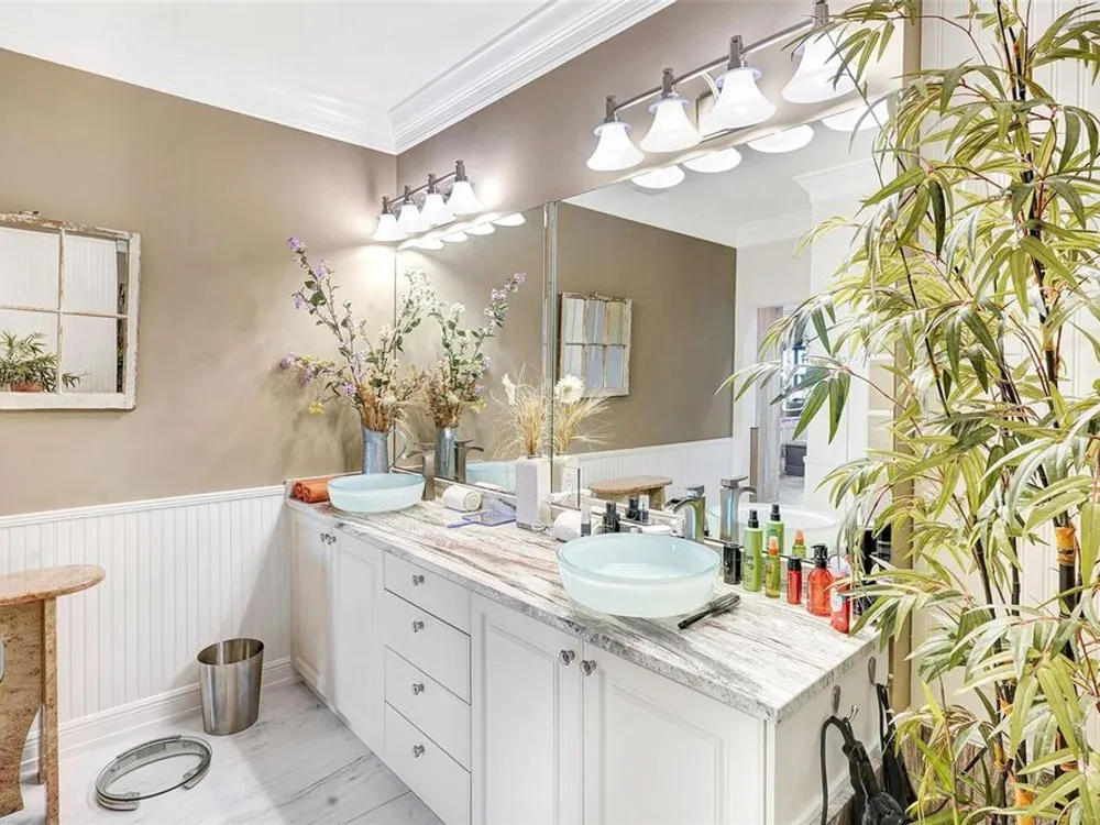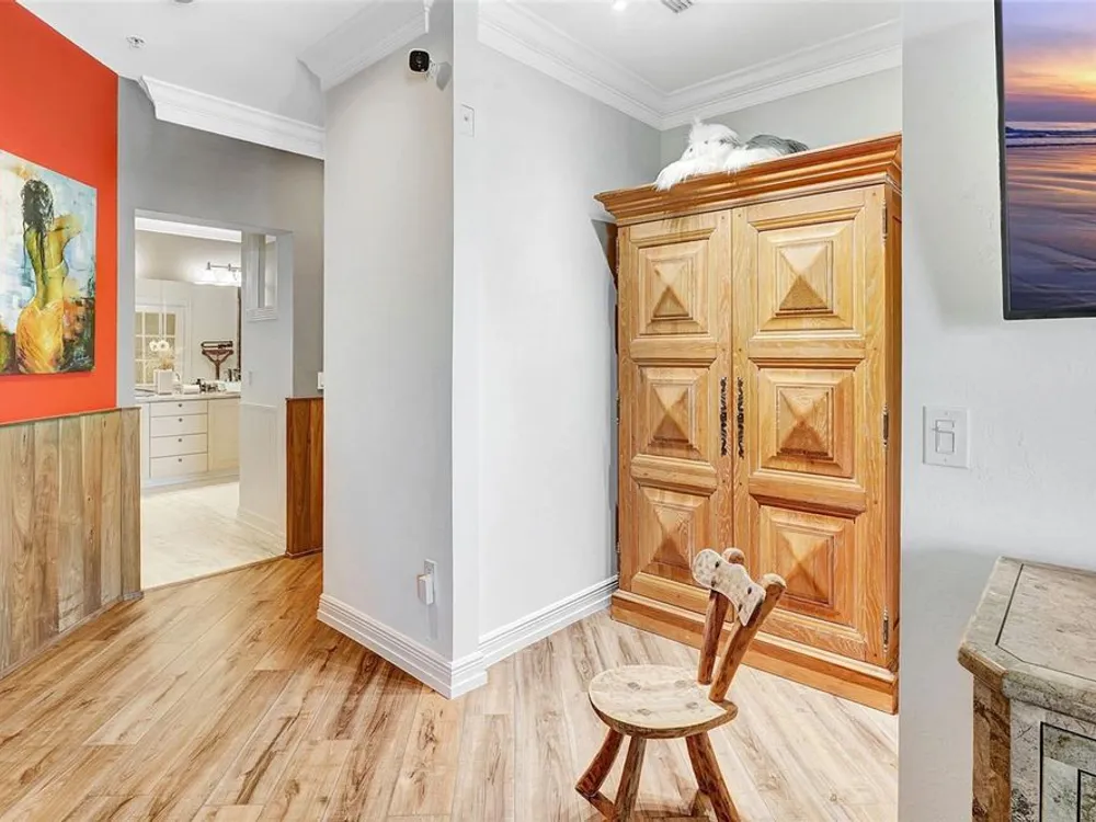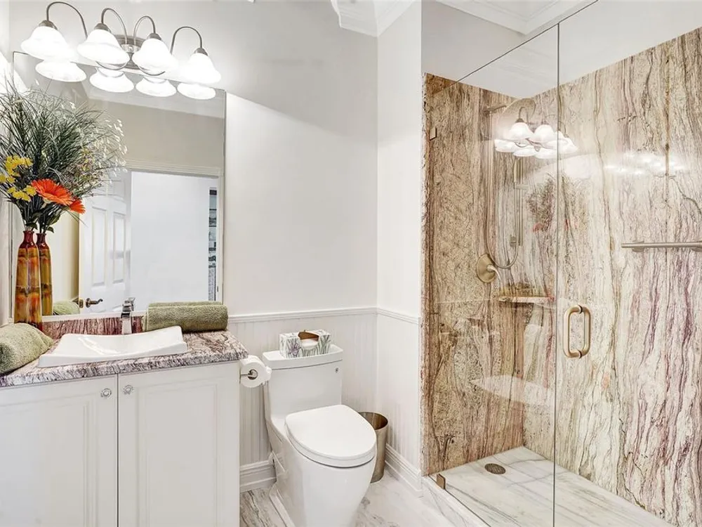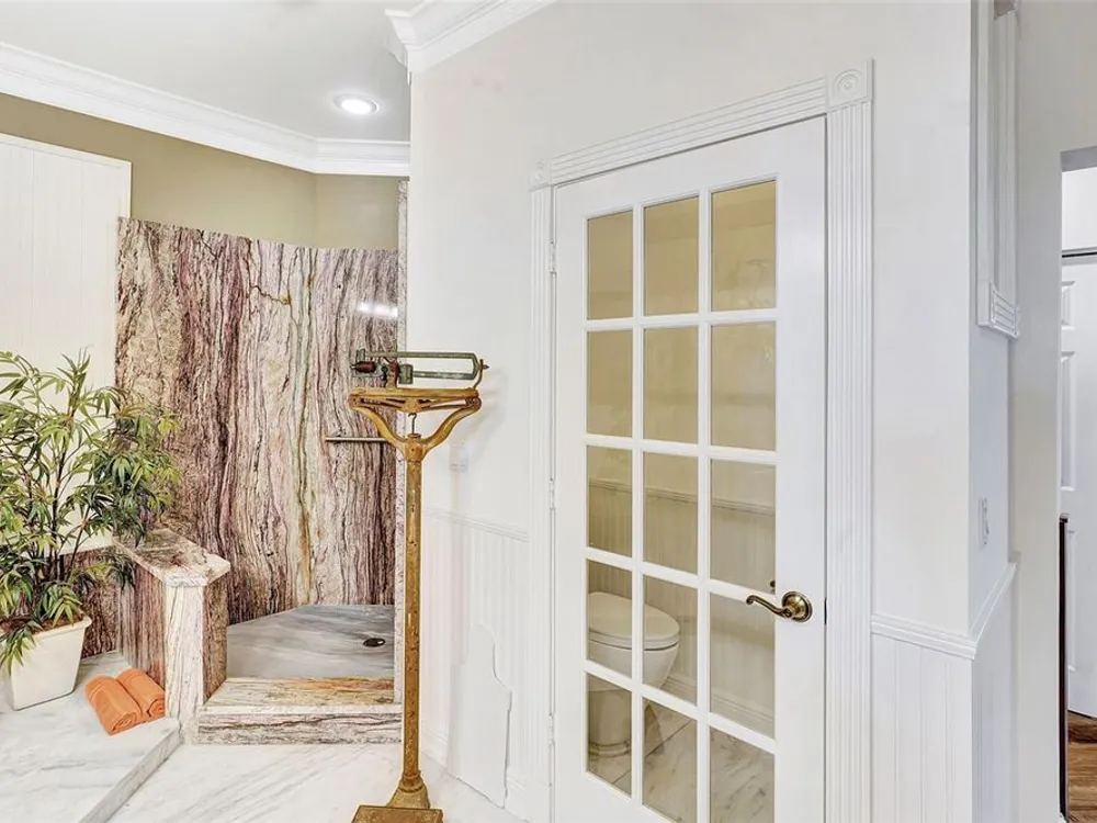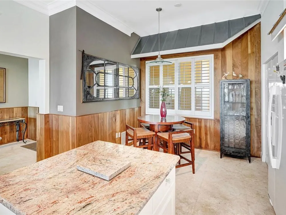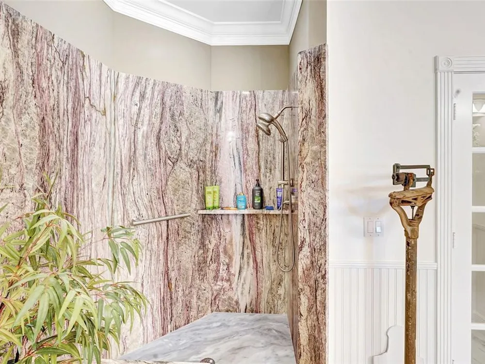 - Built-in Features, Ceiling Fan(s), Crown Molding, Eat-in Kitchen, High Ceilings, Open Floorplan, Main Level Primary, Split Bedrooms, Stone Counters, Walk-In Closet(s)