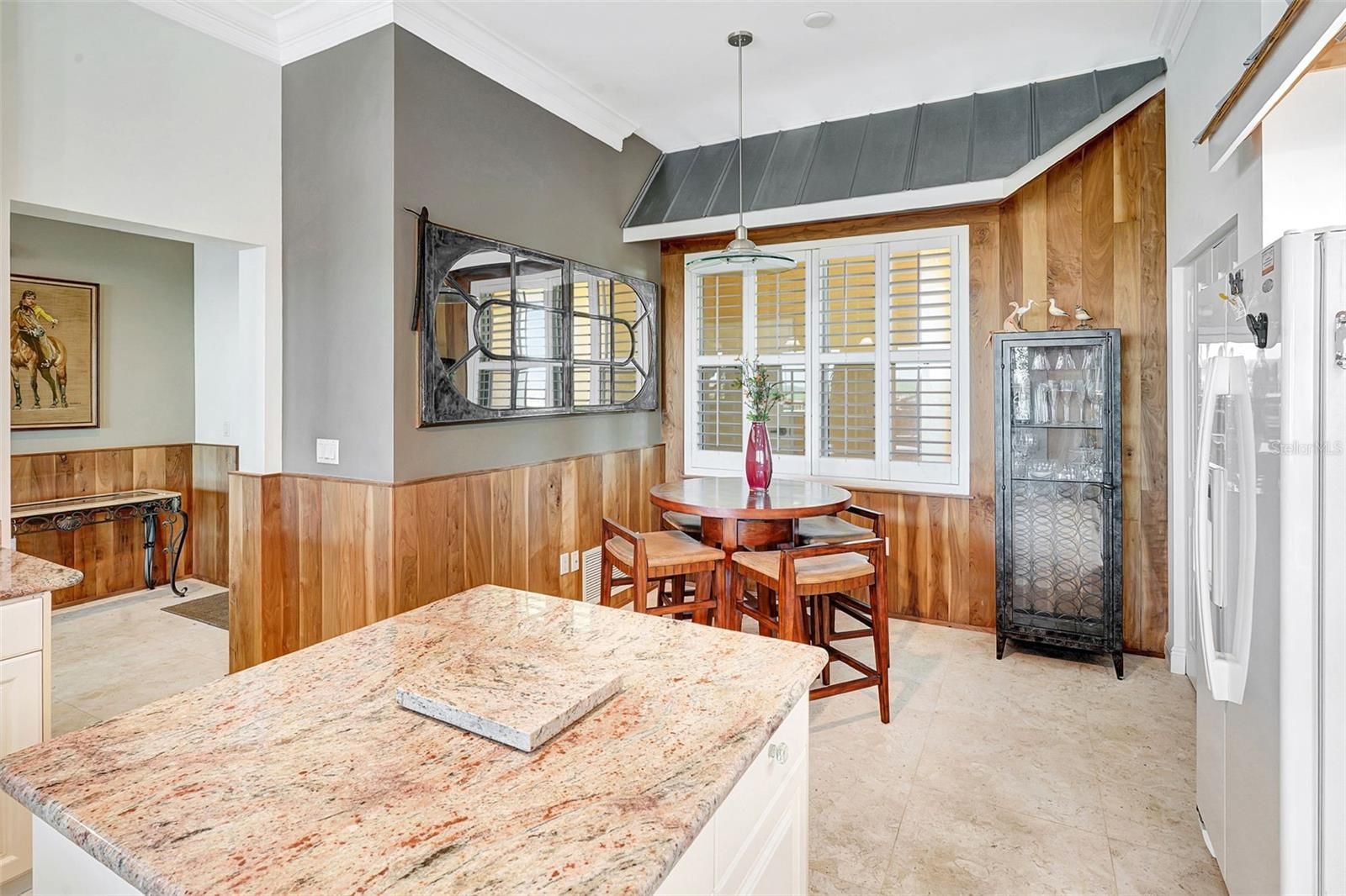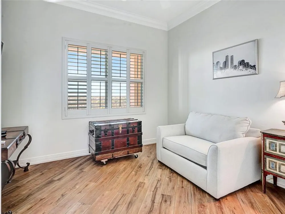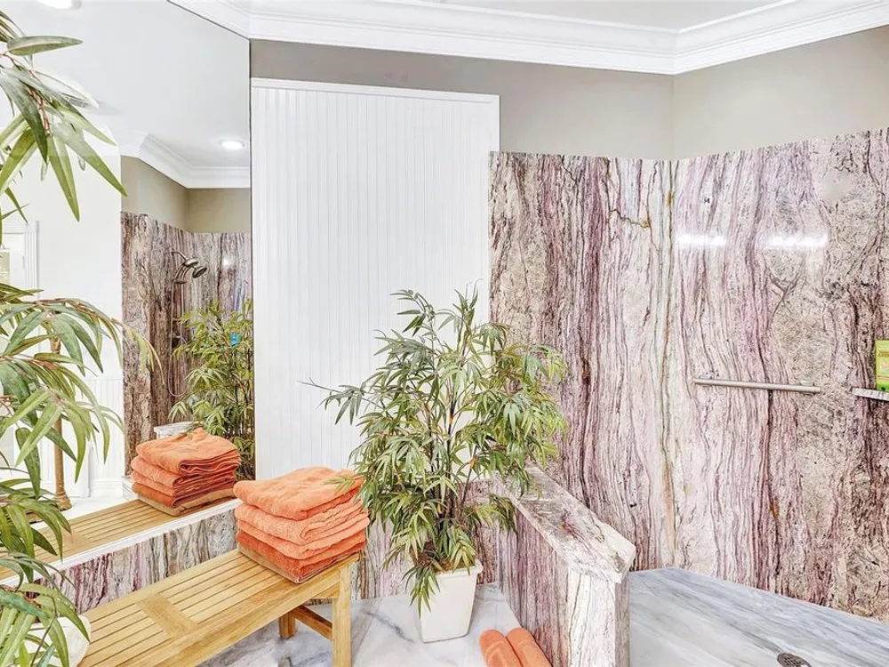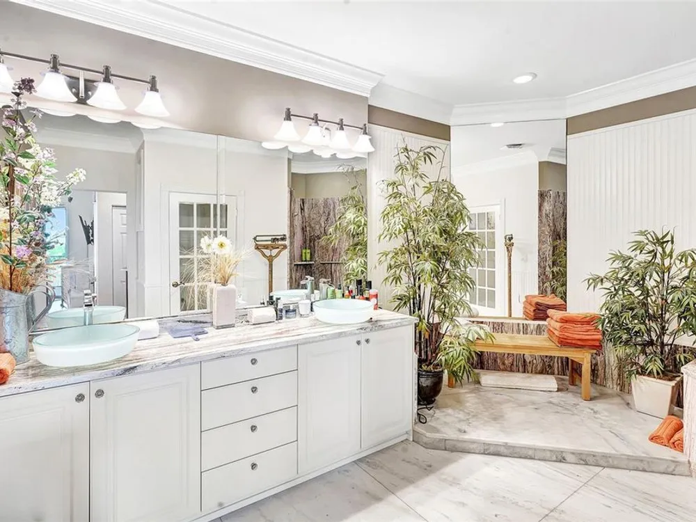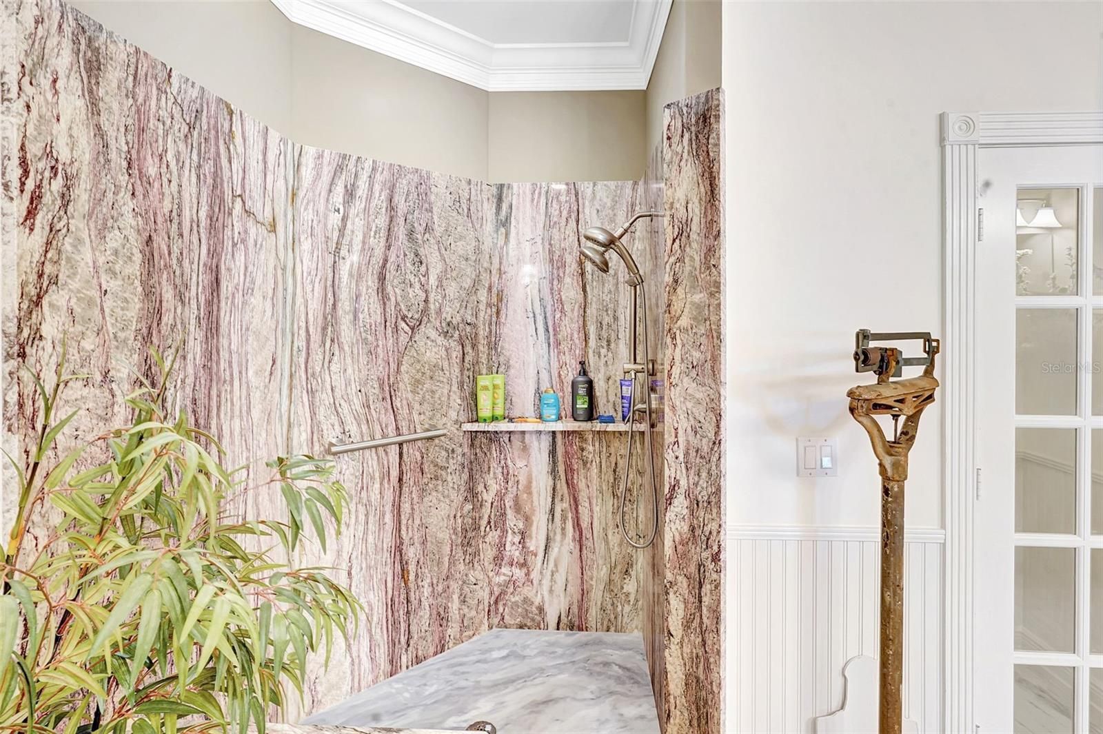 - Built-in Features, Ceiling Fan(s), Crown Molding, Eat-in Kitchen, High Ceilings, Open Floorplan, Main Level Primary, Split Bedrooms, Stone Counters, Walk-In Closet(s)