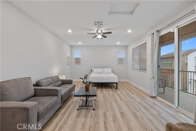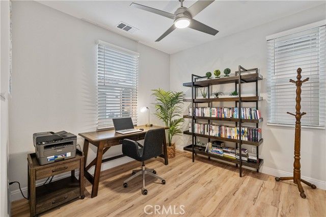 Designed for comfortable, low-maintenance living, this beautifully upgraded 2021-built home is nestled in a quiet, gated 55+ community with true SINGLE-LEVEL LIVING where it matters most. This TURN-KEY 1,987 sq ft DETACHED RESIDENCE features an OPEN FLOOR PLAN with NO STAIRS in the main living area and TWO SPACIOUS BEDROOMS on the main floor. Upstairs, a large LOFT with FULL BATHROOM works perfectly as a 3rd bedroom, office, or guest suite—complete with refrigerator, storage & PRIVATE BALCONY WITH MOUNTAIN VIEWS. Home includes 2.5 bathrooms, abundant natural light, quality finishes throughout & OWNED SOLAR for predictable energy costs. SMALL, SAFE COMMUNITY offers resort-style amenities: POOL & SPA, recreation room & beautifully maintained grounds. LOW HOA, NO MELLO-ROOS, FHA & VA APPROVED. Perfect for buyers seeking modern convenience with exceptional value. Easy to see — call today!