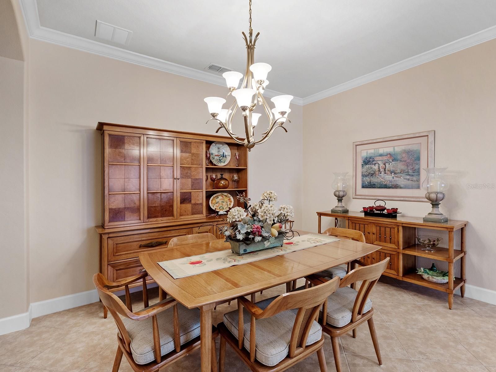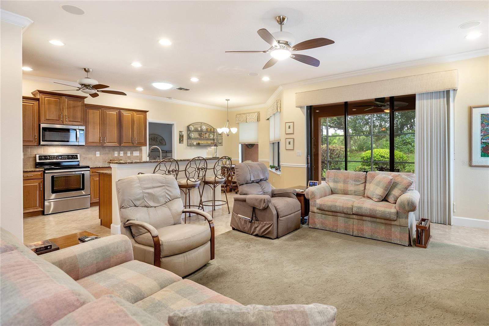 Welcome to Venetian Falls -A Premier 55+ Gated Community with Resort -Style Living! This beautifully maintained 3-bedroom, 2-bathroom home, plus a versatile den is ideally located just three doors down from the clubhouse and recreational area. The den includes a custom added closet, making it perfect as an additional bedroom. Step inside and find elegant crown molding throughout, a chef's kitchen featuring granite countertops, tall solid cherry wood cabinets, and stainless appliances. The spacious family room showcases custom built-ins, crafted with exceptional attention to detail. Enjoy abundant light from three skylights, and rest easy knowing all windows and doors are equipped with hurricane shutters. The private lanai is perfect for entertaining, complete with a privacy wall and windows that creates a cozy atmosphere. The clubhouse has a spacious pool, and resistance pool for low impact exercise, as well as a full time activities director, live entertainment, a state-of-art fitness center, bocce courts, putting green, internet cafe, library, billiard room, and craft center. HOA fees include, Xfinity TV, high speed internet, ground maintenance, pressure washing of roofs, and escrow reserve fund. Best of all the management company is on site to ensure a smooth operation. AND NO CDD FEES.