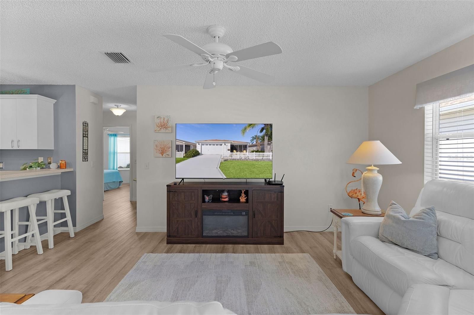 ~PRICE REDUCTION~ ~NO BOND~ ~2025 HVAC~ ~ LUXURY VINYL PLANK FLOORING THROUGHOUT~ ~INSIDE LAUNDRY CLOSET~ This 2/2 COLONY Patio Villa in the Village of BONNYBROOK, BROYHILL VILLAS with its PAINTED CONCRETE, provides a beautifully maintained setting. Enjoy your GLASS-ENCLOSED FRONT LANAI complete with more painted floors, ceiling fan, under HEAT AND AIR—perfect for relaxing year-round. Inside, you’ll find NEW LUXURY VINYL PLANK FLOORING throughout, giving the home a modern, seamless look. The kitchen features UPGRADED LIGHTING, laminate countertops, a SOLAR TUBE for natural light, a closet pantry, and ALL NEW STAINLESS-STEEL APPLIRANCES. The primary bedroom includes a ceiling fan, an OVERSIZED WALK-IN CLOSET, and an ensuite bath with a NEW VANITY, LIGHTING, and MIRROR with QUARTZ COUNTERTOPS. The guest bedroom offers a ceiling fan and built-in closet, while the guest bath features a linen closet, UPGRADED CABINETRY with a MARBLE COUNTERTOP and NEW LIGHTING. The INDOOR LAUNDRY area includes WHIRLPOOL appliances and shelving, adding to the home’s efficient layout and thoughtful design. The 1½-car garage features a laundry tub, built-in cabinets, and painted flooring for added convenience and storage. The Roof is 2013 and the Rheem Hot Water Heater is 2014. Minutes from restaurants and shopping in Southern Trace Shopping Center on CR 466. Close to numerous Rec centers including Pimlico Family Pool & Rec Center and Churchill Street Rec Center and many golf courses. This well-maintained villa combines comfort, upgrades, and an unbeatable location—ready for you to enjoy The Villages lifestyle today!