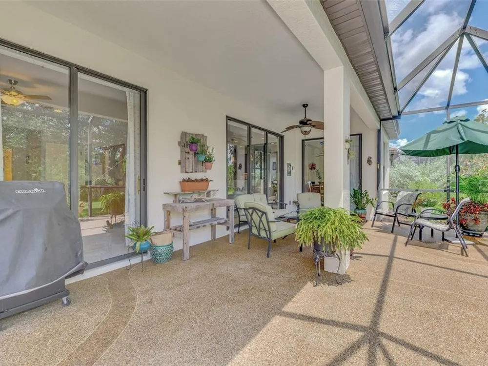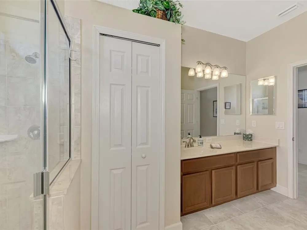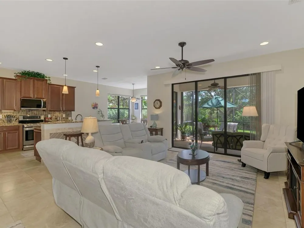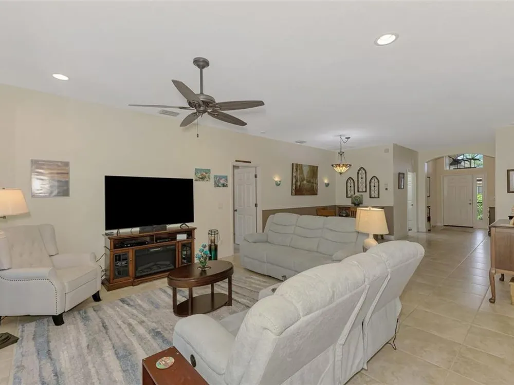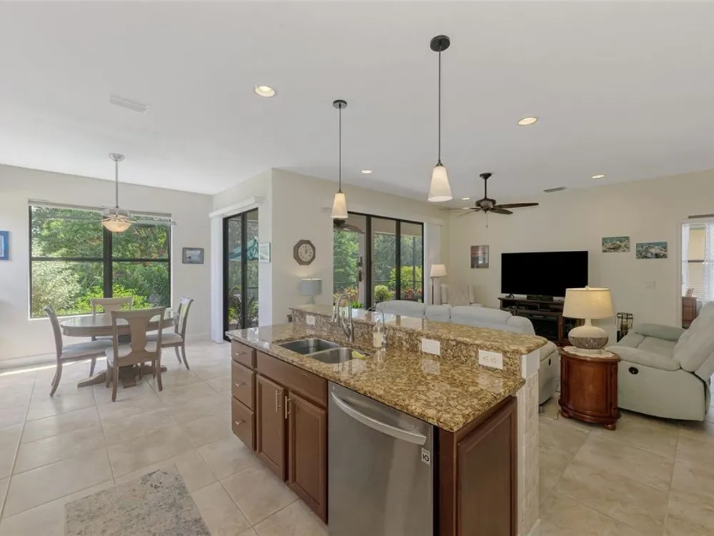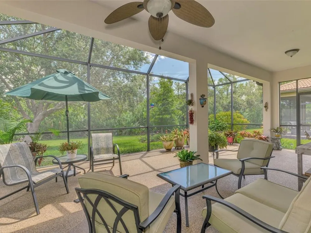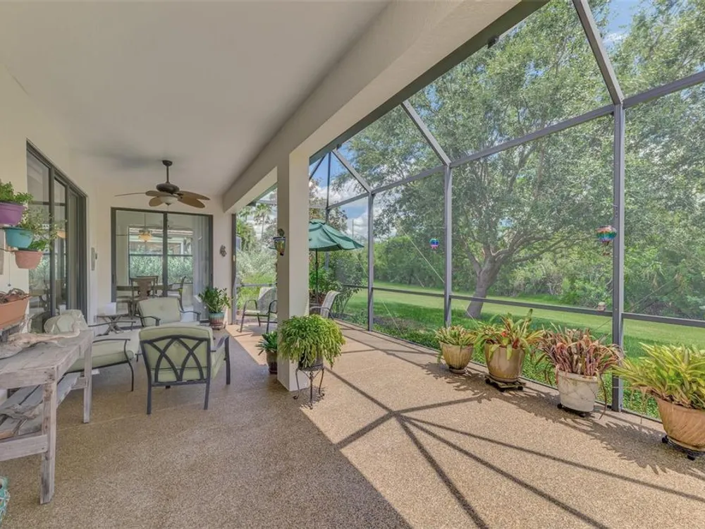 Venetian Falls THE ONLY “55 Retirement Community” in Venice Florida, with NO CDD Fees, Welcome to the Florence model, 1916 Sq ft, this lovely 2/2 with Den has been freshly painted inside and out. Notice the cement outside flooring before entering the home, the lovely “Rose” Inside the grand foyer, leads into the family, dining and kitchen rooms all great for entertaining, due to its Open Floor Plan. The kitchen features granite countertops, 42’ cabinets with pullouts, under the cabinet lighting. Stainless Steel appliances. A breakfast nook area for seating as well as extra countertop seating. Owner has also installed a Reverse Osmosis water filter system. No need to purchase bottled water. The most desirable feature of the Florence model is the two ensuites, both for the Master and your Guest, each having their own private bathroom with showers. Both have walk-in closets and wall to wall closets. No shortage here fitting all your clothes and shoes!! The Master bathroom has an extra-large size Roman shower. Dual sinks with granite counter tops, and a private toilet room. Wall to floor glass double doors lead to the Den which already includes a desk and shelf, perfect for paying your bills or taking care of business. Included in the laundry room are Kenmore front load, Washer/Dryer with extra top cabinetry for storge. The 2-car garage has epoxy/polyurea flooring and extra cabinets for storage. Pull down attic with flooring to store all your holiday decorations. Owner has also installed UV light surge protector. AC is 3 yrs old. Saving the best for last. The 16x30 extra-large size screened in Lanai with pebble tec flooring and a parklike view, imagine peaceful mornings drinking a cup of mojo looking out over the preserves, watching all the different color butterflies, the various types of birds and wildlife. Let’s not forget drinking wine in the evening while seeing the gorgeous sunsets!!! Venetian Fall, Community has a 1600 sq ft clubhouse with a heated swimming pool and a resistance pool. A state-of-the-art fitness center, arts & crafts room, pool/card rooms, internet café and bocci courts. The list of activities is endless. You will not be bored living here. The community is perfectly located, 7 miles to the beach, 1.6 miles from the interstate for quick easy travel. Centrally located between two downtown areas, the New Wellen Park and Venice, where you will enjoy lots of restaurants, shopping and outside entertainment. Even take in a game at the Atlanta Braves spring training stadium. What more could you ask for? Be sure you don’t delay, make this home number one on your list to see!!