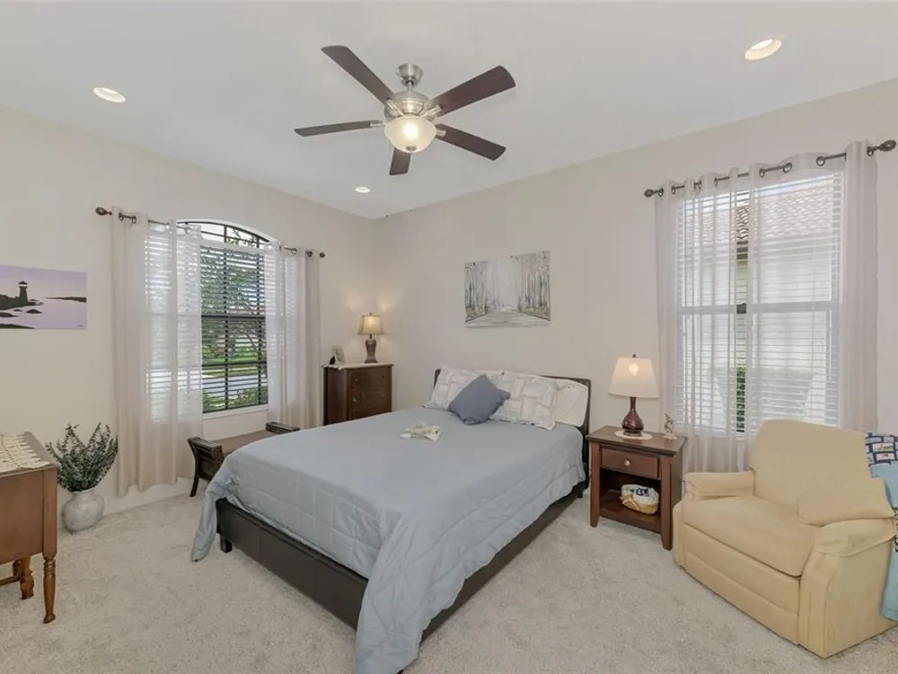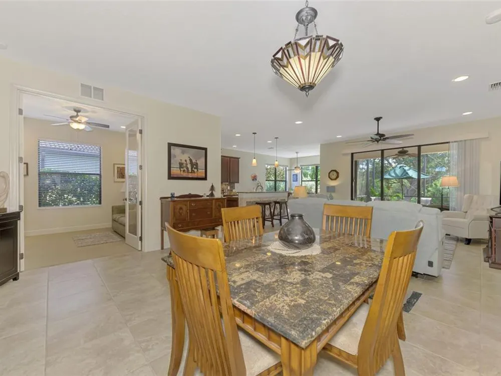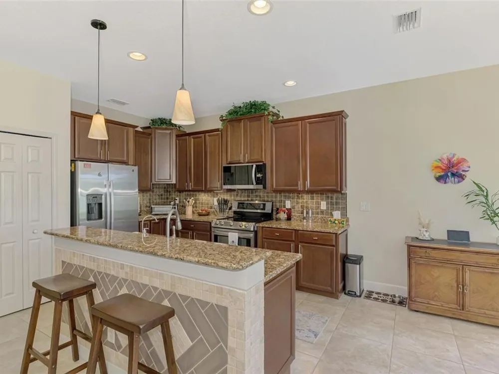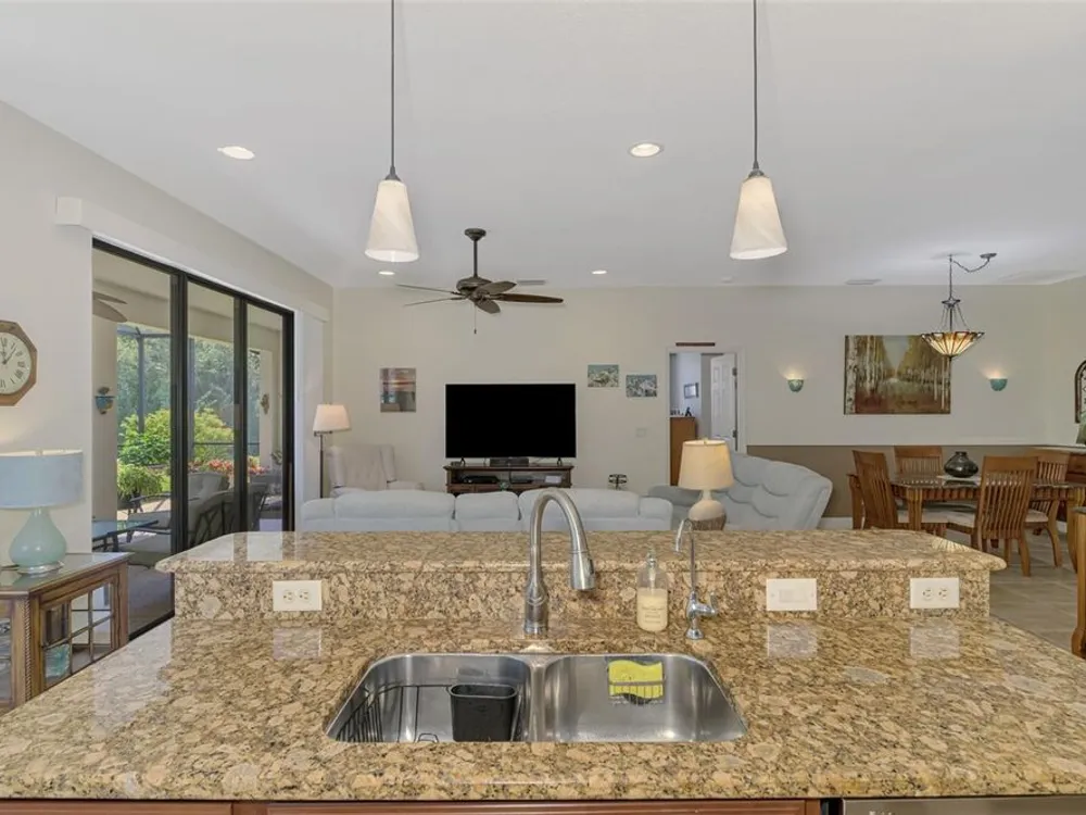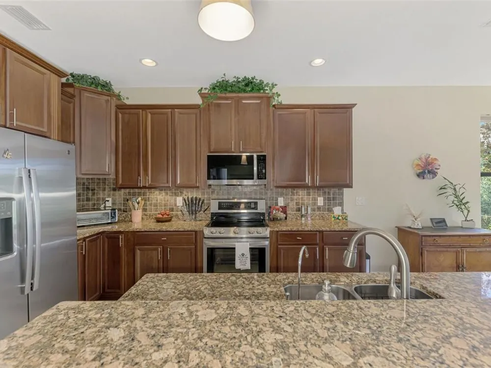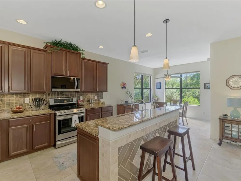 Venetian Falls THE ONLY “55 Retirement Community” in Venice Florida, with NO CDD Fees, Welcome to the Florence model, 1916 Sq ft, this lovely 2/2 with Den has been freshly painted inside and out. Notice the cement outside flooring before entering the home, the lovely “Rose” Inside the grand foyer, leads into the family, dining and kitchen rooms all great for entertaining, due to its Open Floor Plan. The kitchen features granite countertops, 42’ cabinets with pullouts, under the cabinet lighting. Stainless Steel appliances. A breakfast nook area for seating as well as extra countertop seating. Owner has also installed a Reverse Osmosis water filter system. No need to purchase bottled water. The most desirable feature of the Florence model is the two ensuites, both for the Master and your Guest, each having their own private bathroom with showers. Both have walk-in closets and wall to wall closets. No shortage here fitting all your clothes and shoes!! The Master bathroom has an extra-large size Roman shower. Dual sinks with granite counter tops, and a private toilet room. Wall to floor glass double doors lead to the Den which already includes a desk and shelf, perfect for paying your bills or taking care of business. Included in the laundry room are Kenmore front load, Washer/Dryer with extra top cabinetry for storge. The 2-car garage has epoxy/polyurea flooring and extra cabinets for storage. Pull down attic with flooring to store all your holiday decorations. Owner has also installed UV light surge protector. AC is 3 yrs old. Saving the best for last. The 16x30 extra-large size screened in Lanai with pebble tec flooring and a parklike view, imagine peaceful mornings drinking a cup of mojo looking out over the preserves, watching all the different color butterflies, the various types of birds and wildlife. Let’s not forget drinking wine in the evening while seeing the gorgeous sunsets!!! Venetian Fall, Community has a 1600 sq ft clubhouse with a heated swimming pool and a resistance pool. A state-of-the-art fitness center, arts & crafts room, pool/card rooms, internet café and bocci courts. The list of activities is endless. You will not be bored living here. The community is perfectly located, 7 miles to the beach, 1.6 miles from the interstate for quick easy travel. Centrally located between two downtown areas, the New Wellen Park and Venice, where you will enjoy lots of restaurants, shopping and outside entertainment. Even take in a game at the Atlanta Braves spring training stadium. What more could you ask for? Be sure you don’t delay, make this home number one on your list to see!!
