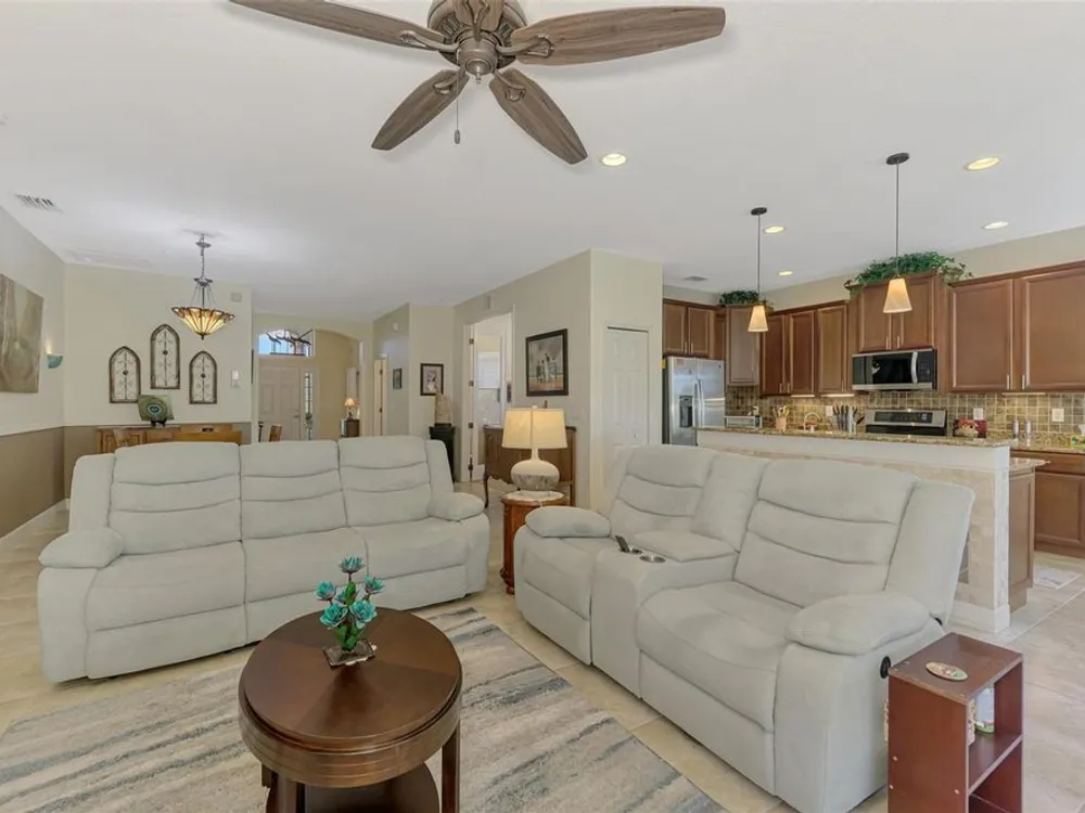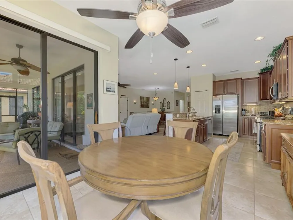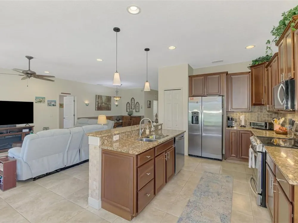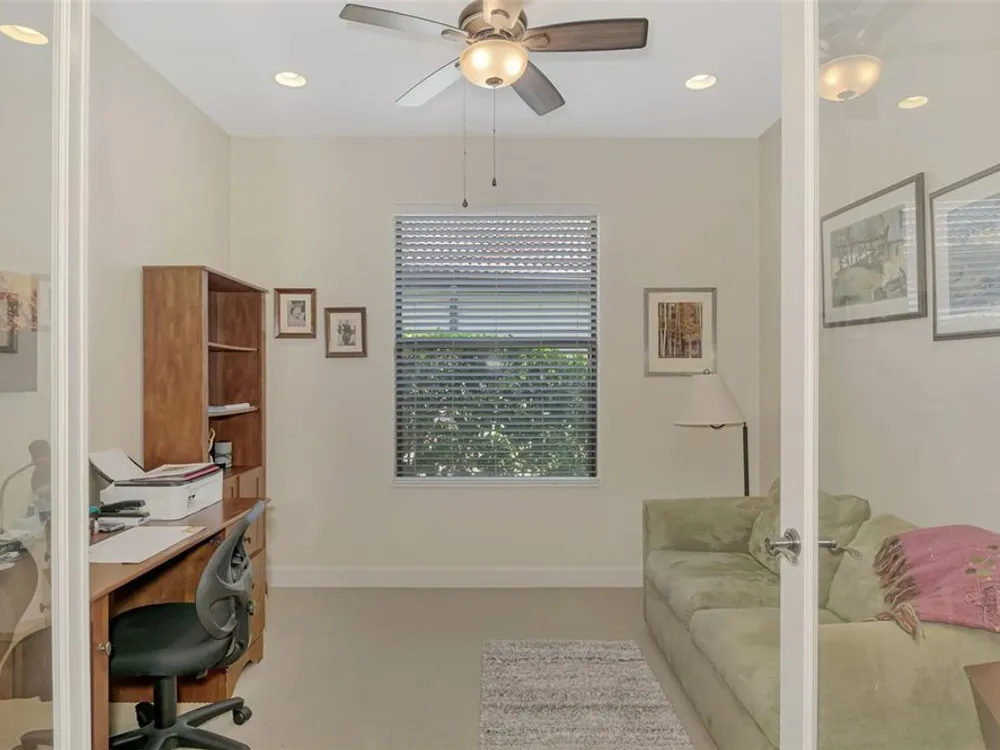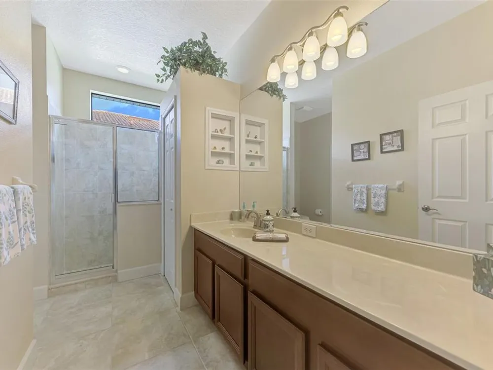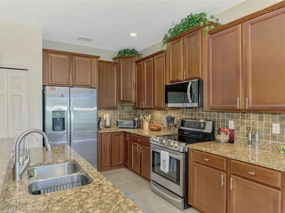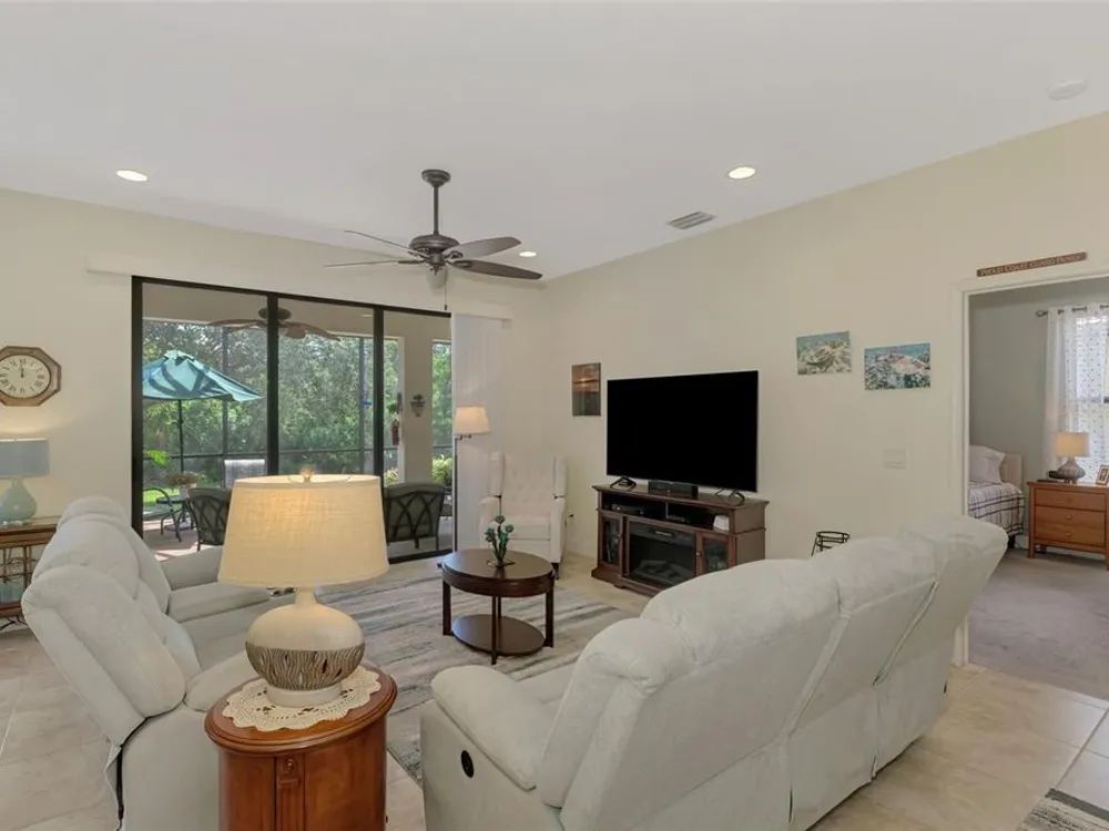 Venetian Falls THE ONLY “55 Retirement Community” in Venice Florida, with NO CDD Fees, Welcome to the Florence model, 1916 Sq ft, this lovely 2/2 with Den has been freshly painted inside and out. Notice the cement outside flooring before entering the home, the lovely “Rose” Inside the grand foyer, leads into the family, dining and kitchen rooms all great for entertaining, due to its Open Floor Plan. The kitchen features granite countertops, 42’ cabinets with pullouts, under the cabinet lighting. Stainless Steel appliances. A breakfast nook area for seating as well as extra countertop seating. Owner has also installed a Reverse Osmosis water filter system. No need to purchase bottled water. The most desirable feature of the Florence model is the two ensuites, both for the Master and your Guest, each having their own private bathroom with showers. Both have walk-in closets and wall to wall closets. No shortage here fitting all your clothes and shoes!! The Master bathroom has an extra-large size Roman shower. Dual sinks with granite counter tops, and a private toilet room. Wall to floor glass double doors lead to the Den which already includes a desk and shelf, perfect for paying your bills or taking care of business. Included in the laundry room are Kenmore front load, Washer/Dryer with extra top cabinetry for storge. The 2-car garage has epoxy/polyurea flooring and extra cabinets for storage. Pull down attic with flooring to store all your holiday decorations. Owner has also installed UV light surge protector. AC is 3 yrs old. Saving the best for last. The 16x30 extra-large size screened in Lanai with pebble tec flooring and a parklike view, imagine peaceful mornings drinking a cup of mojo looking out over the preserves, watching all the different color butterflies, the various types of birds and wildlife. Let’s not forget drinking wine in the evening while seeing the gorgeous sunsets!!! Venetian Fall, Community has a 1600 sq ft clubhouse with a heated swimming pool and a resistance pool. A state-of-the-art fitness center, arts & crafts room, pool/card rooms, internet café and bocci courts. The list of activities is endless. You will not be bored living here. The community is perfectly located, 7 miles to the beach, 1.6 miles from the interstate for quick easy travel. Centrally located between two downtown areas, the New Wellen Park and Venice, where you will enjoy lots of restaurants, shopping and outside entertainment. Even take in a game at the Atlanta Braves spring training stadium. What more could you ask for? Be sure you don’t delay, make this home number one on your list to see!!