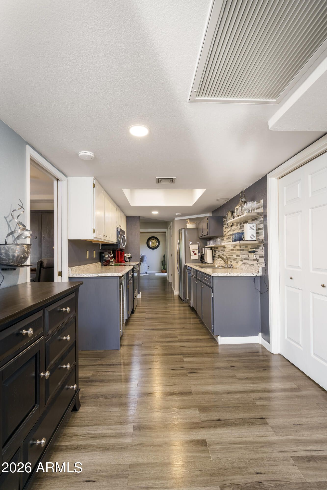 Start living the Adult (55+) Lifestyle in this wonderfully updated Condo!! A Move-In Ready 2 bedroom, 2 bath unit located in Sunland Village East. Updates include vinyl plank flooring, refinished cabinetry, interior paint, redesigned kitchen layout and primary bedroom access, conversion of AZ room to fully integrated living space, HVAC (2022) - so much more. This End Unit Condo has a front living room (with dining area), back family room (currently used as Formal Dining), additional sitting/TV room leading to brick paved back patio, single car attached garage, inside laundry. Community offers Golf, Tennis, Swimming Pools, Fitness Centers, Pickleball + more. Buyers required to pay $3000 SVE Capital Fund Fee. Sorry, No Pets Allowed. Some Furniture Available-Negotiable Separately.