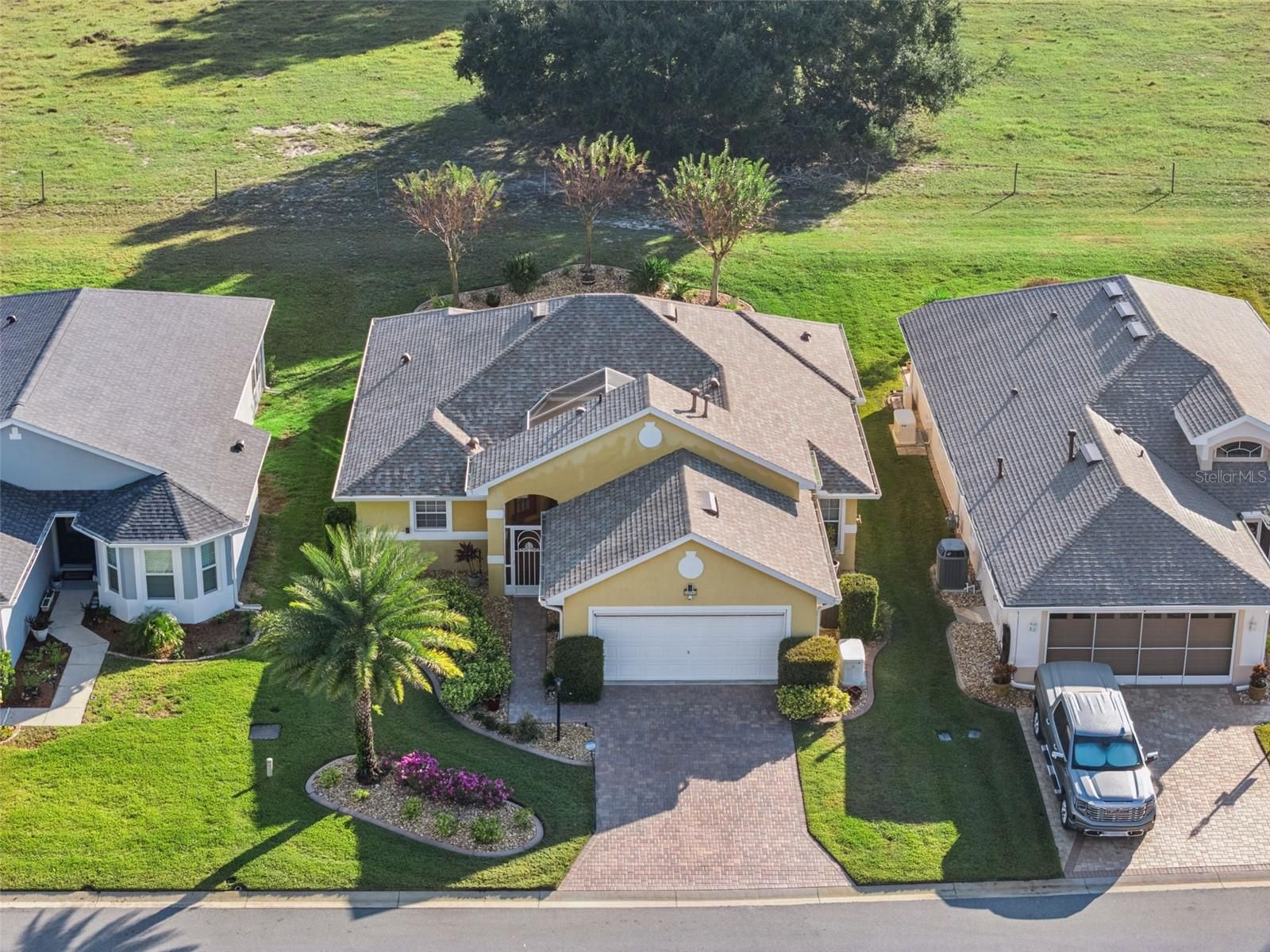 One or more photo(s) has been virtually staged. Looking for a DOUBLE MASTER or an IN-LAW SPACE with PRIVACY & CONVENIENCE? DOUBLE THE PLEASURE with two refrigerators, two microwaves w/convection, two dishwashers, two garbage disposals and nearly 1600 square feet of under heat & air living! How does this fancy you? A home with updated appliances, sinks, faucets, automatic roll-up garage screen, Plantation Shutters, Generac, Water Softener, 2021 ROOF, 2022 HVAC, and 2021 Water Heater! All the details have been taken care of for YOU! The Kitchens have granite counters, Stainless Steel appliances, pantry, 1 with a gas range with additional electric hook-ups, as well as eating & prep space. The other Kitchen is all electric. The primary bath has granite counters, new glassed shower, grout & tile floor, dual vanity, and an updated shower head. 2nd bath has tub with shower, single sink & granite counter. Additionally, the home has a screened lanai with views of the pastureland, pavers, lovely landscaping, an open patio, irrigation, and rain gutters. Want more? Ok! Ring cameras, two TV's, washer & dryer - ALL CONVEY! You'll love this unique home, situated on a quiet culdesac in the soughtafter 55+ gated, golf community of Royal Highlands. Centrally located in Lake County, near MCO, Disney, historic districts, shopping, restaurants, medical facilities and entertainment. The low monthly HOA includes Xfinity cable and highspeed internet! Two pools, courts, clubs, driving range, billiards, and crafts available for all Royal Highlands residents. This home and it's community have so much to offer YOU including an on-campus restaurant, softball field, Great Hall with theater stage & dance floor, fitness center, and library! Don't delay! Call for your tour today!